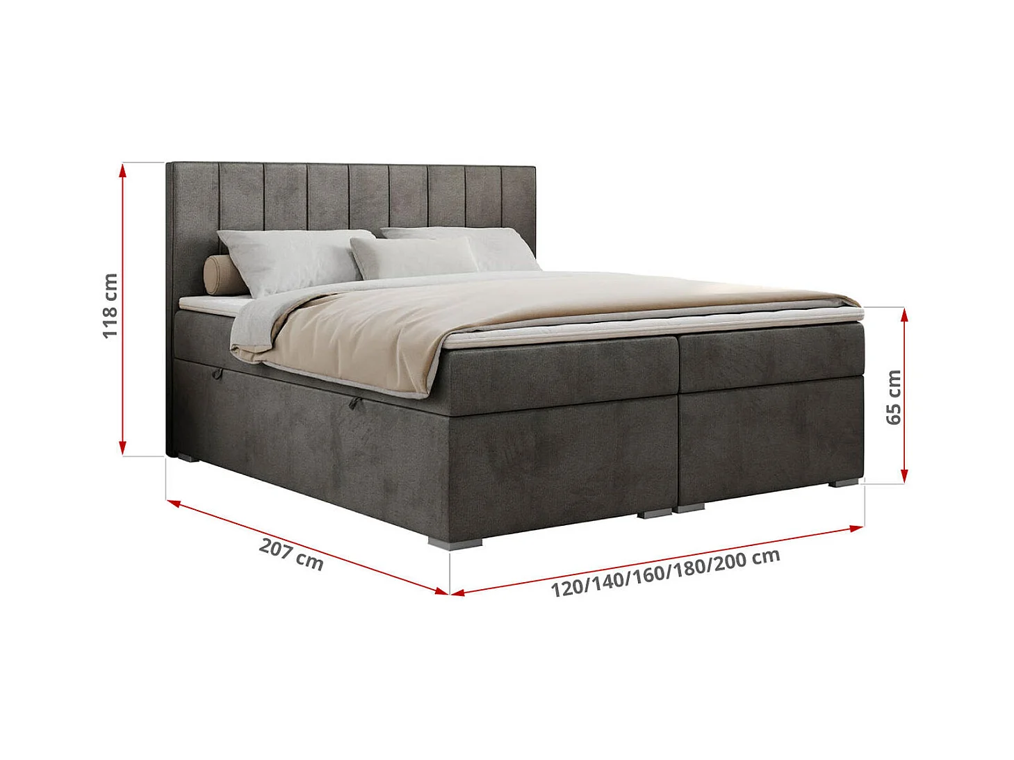 Boxspringbett ALLY - gestreiftes, genähtes Kopfteil, zwei Bettkästen, Multipocket-Matratzen, Praktisch Polsterbett - 120x200 cm - H4 - Dunkelgrau Velvet