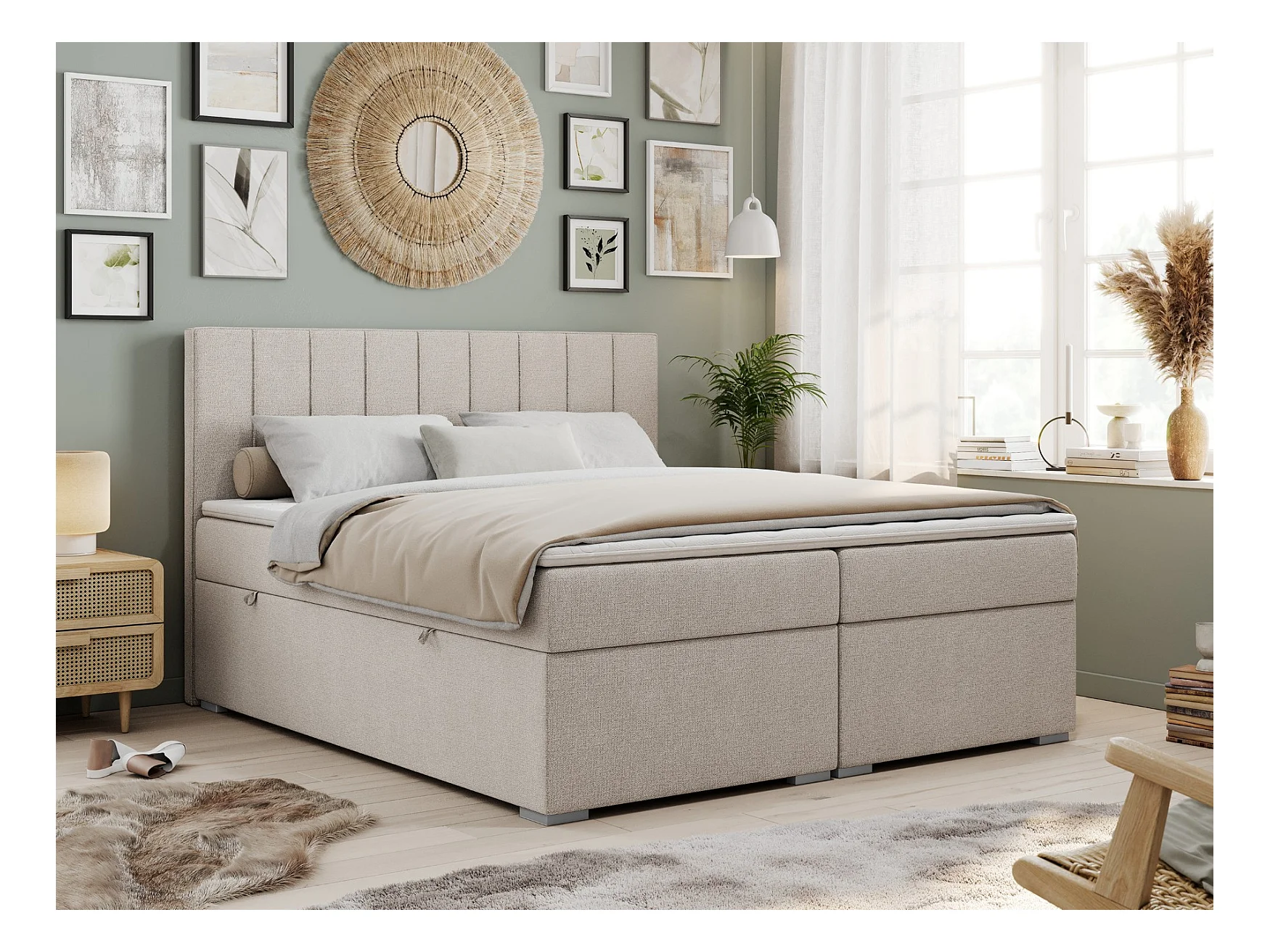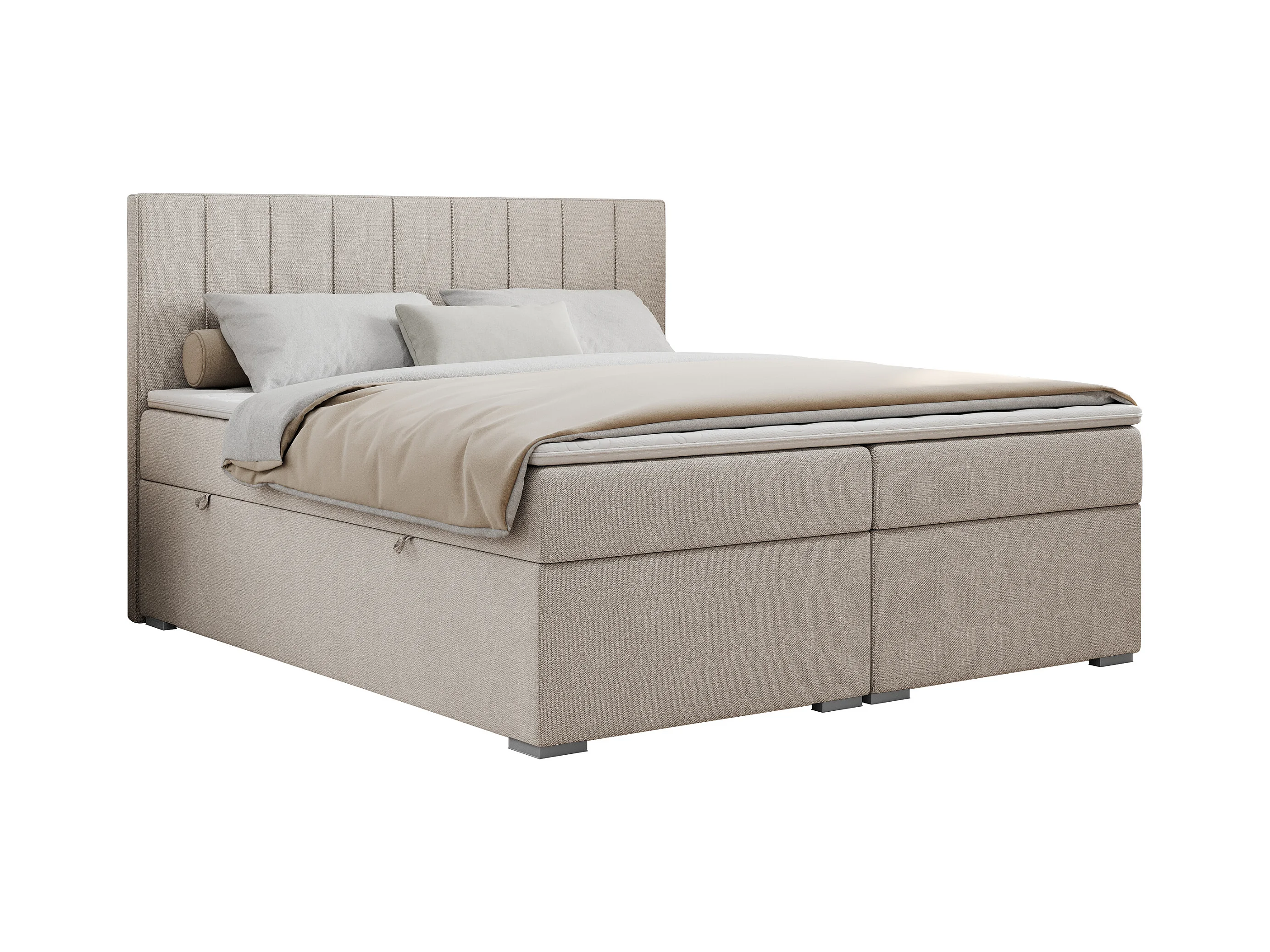 Boxspringbett ALLY - gestreiftes, genähtes Kopfteil, zwei Bettkästen, Multipocket-Matratzen, Praktisch Polsterbett - 140x200 cm - H3 - Beige Strukture