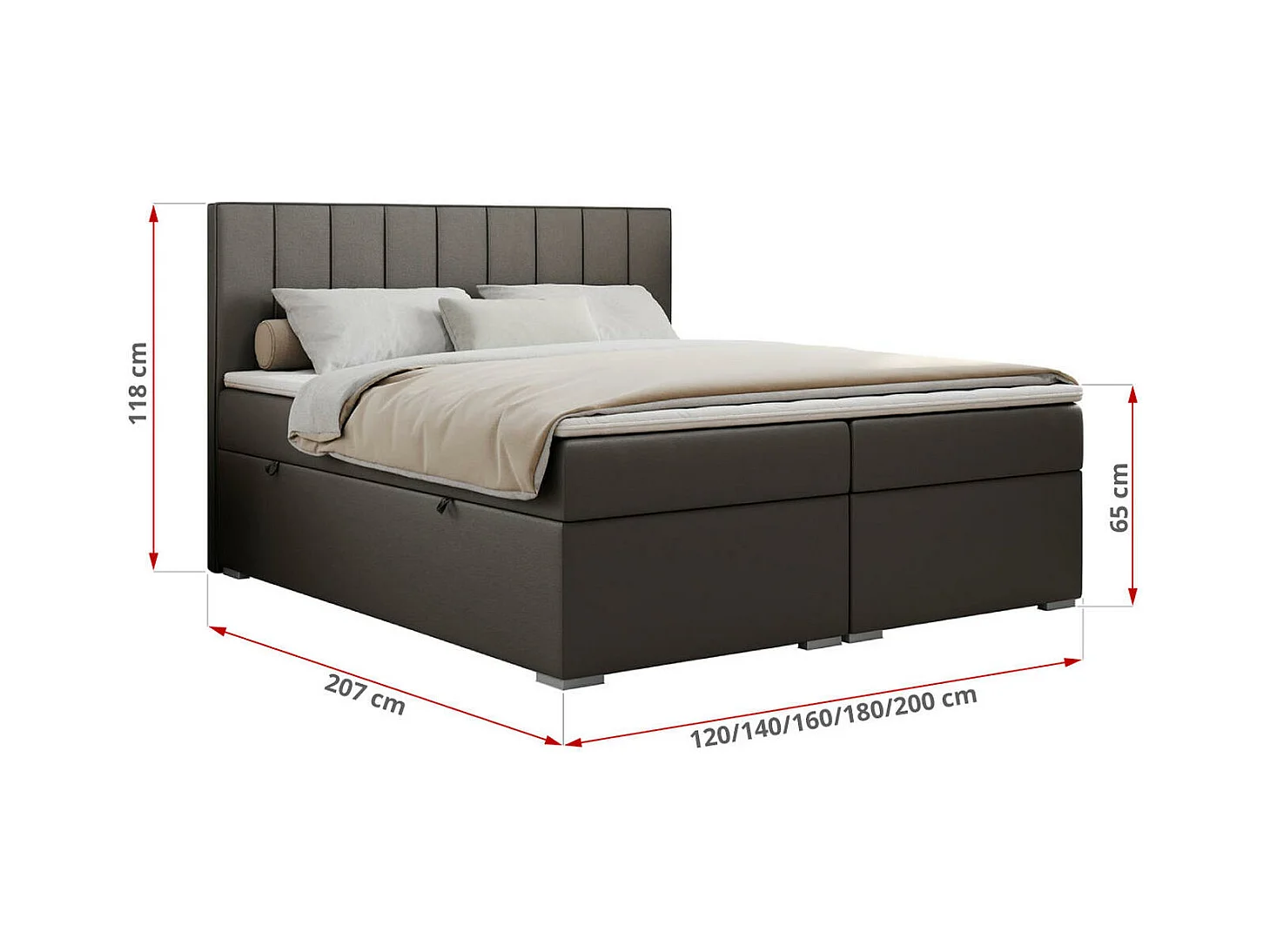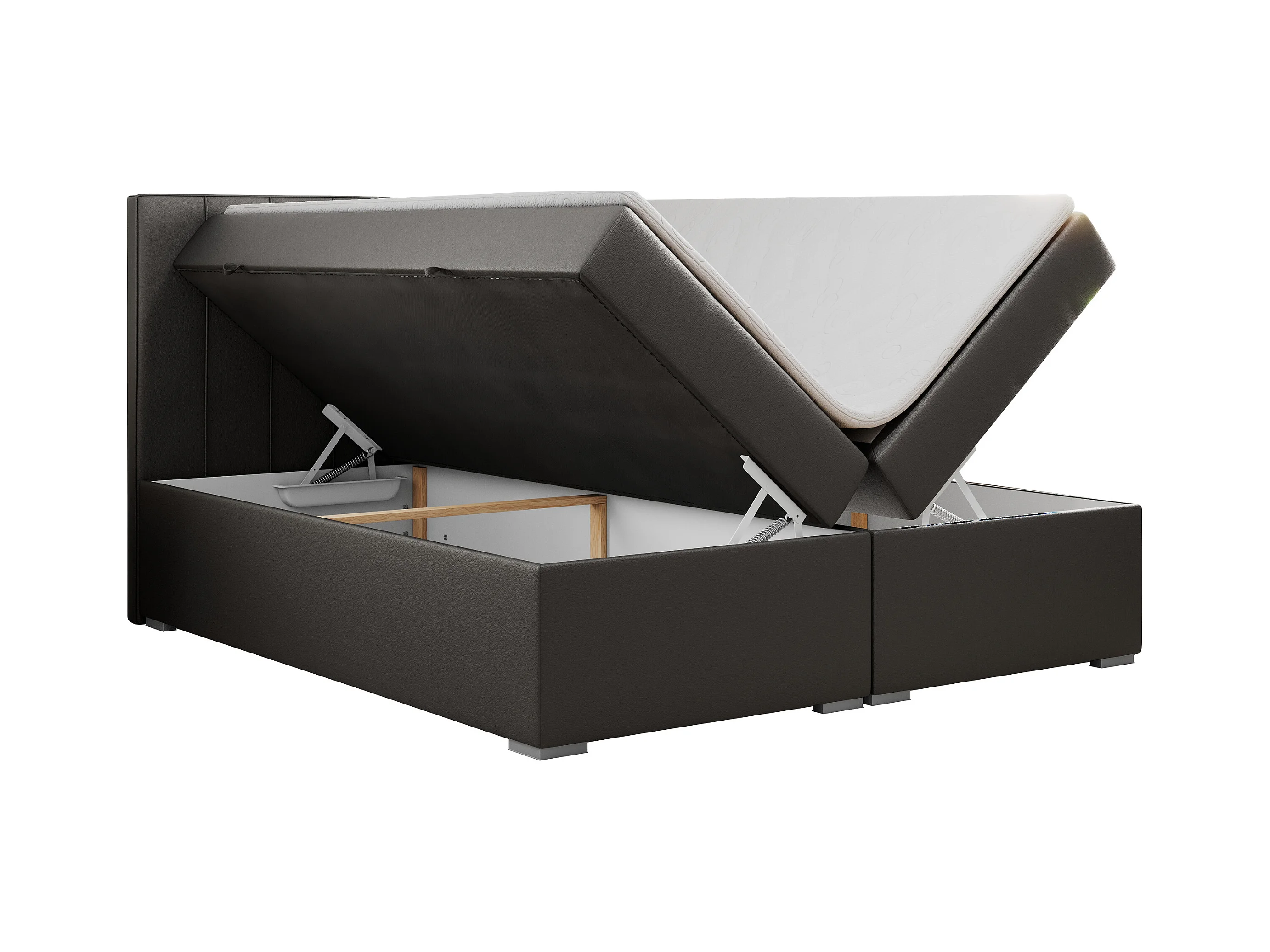 Boxspringbett ALLY - gestreiftes, genähtes Kopfteil, zwei Bettkästen, Multipocket-Matratzen, Praktisch Polsterbett - 160x200 cm - H3 - Dunkelgrau Kunstleder