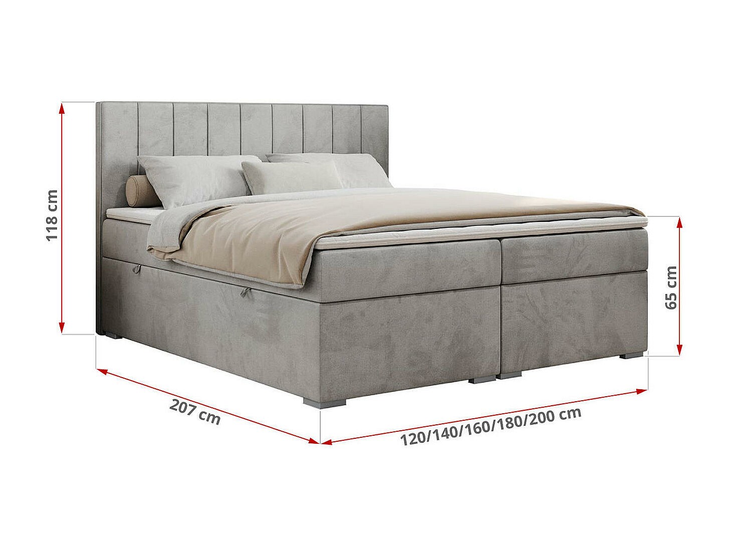 Boxspringbett ALLY - gestreiftes, genähtes Kopfteil, zwei Bettkästen, Multipocket-Matratzen, Praktisch Polsterbett - 160x200 cm - H3 - Hellgrau Velvet