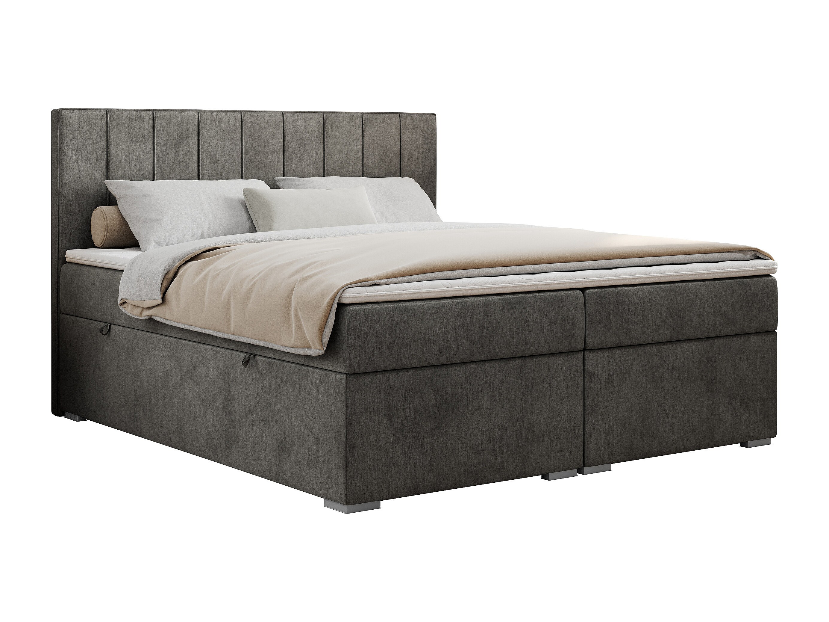 Boxspringbett ALLY - gestreiftes, genähtes Kopfteil, zwei Bettkästen, Multipocket-Matratzen, Praktisch Polsterbett - 160x200 cm - H4 - Dunkelgrau Velvet