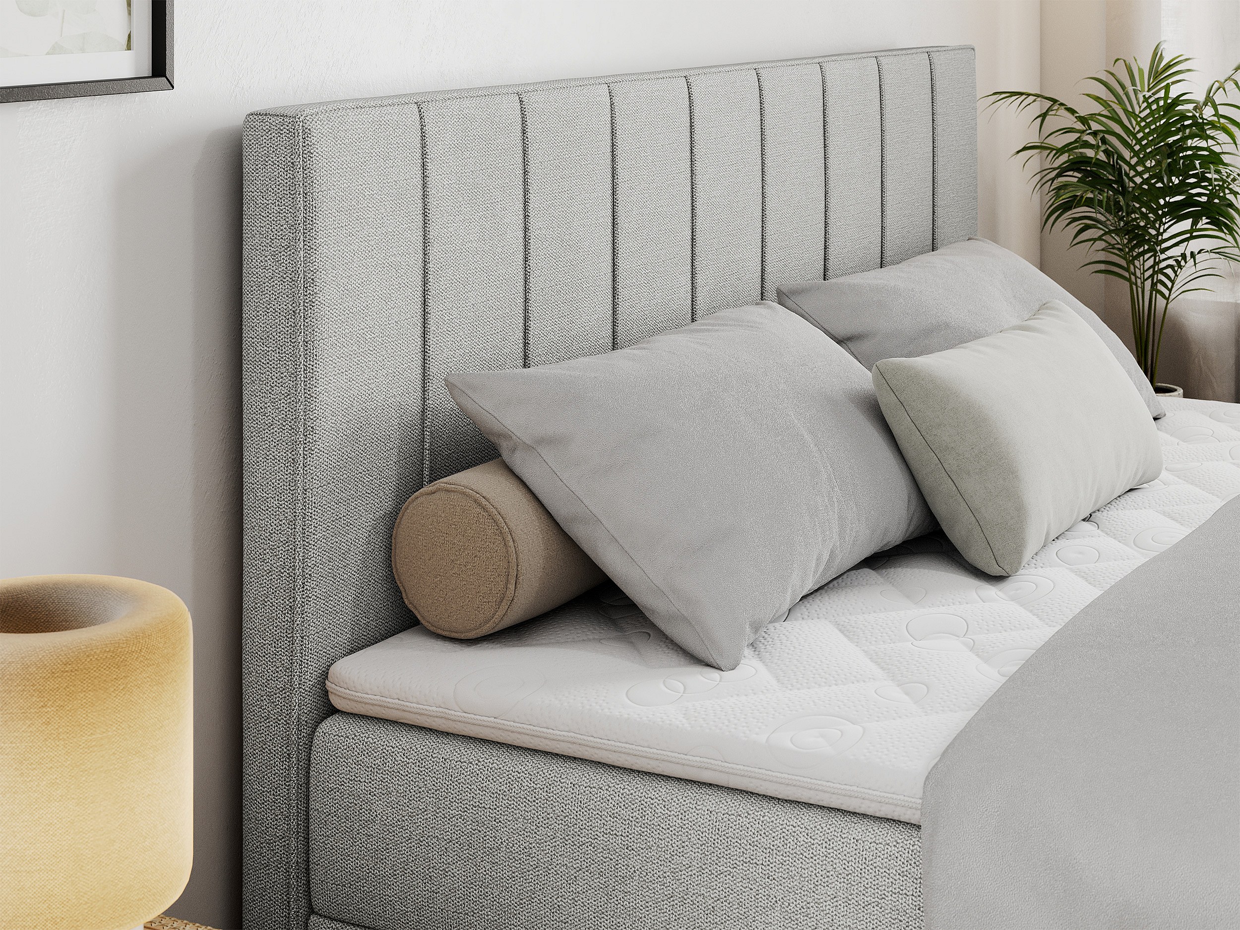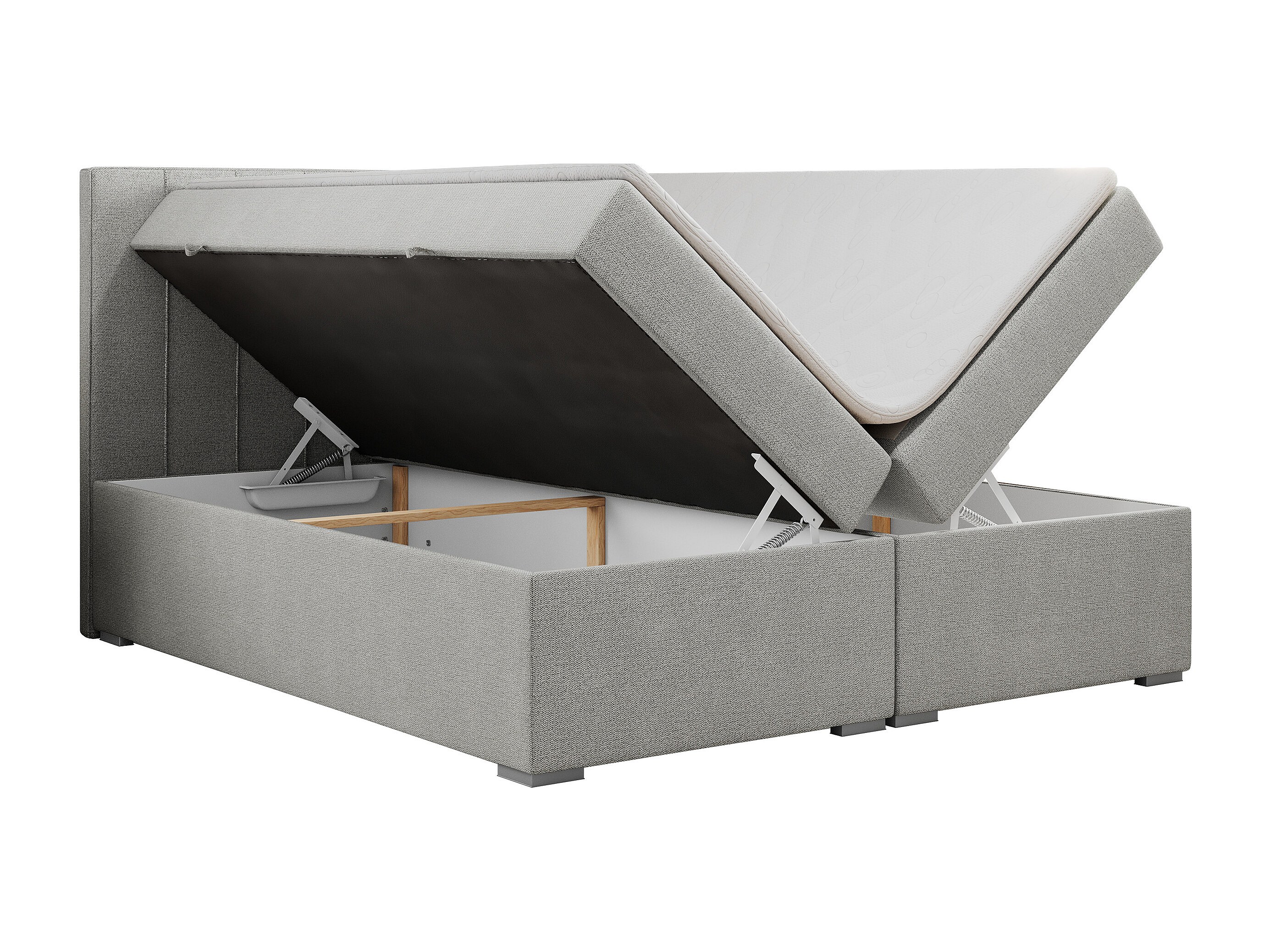 Boxspringbett ALLY - gestreiftes, genähtes Kopfteil, zwei Bettkästen, Multipocket-Matratzen, Praktisch Polsterbett - 160x200 cm - H4 - Hellgrau Strukture