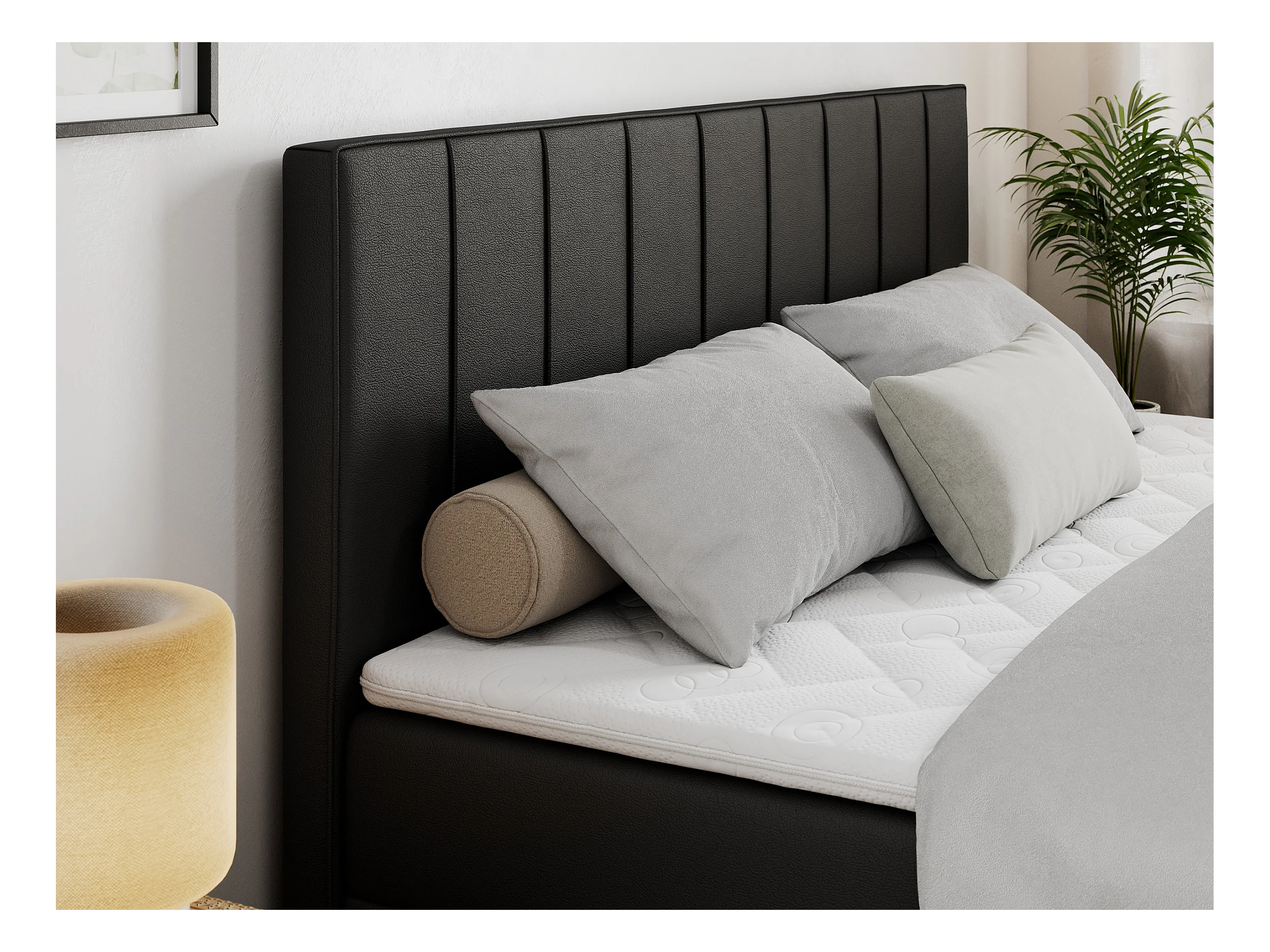 Boxspringbett ALLY - gestreiftes, genähtes Kopfteil, zwei Bettkästen, Multipocket-Matratzen, Praktisch Polsterbett - 180x200 cm - H4 - Schwarz Kunstleder