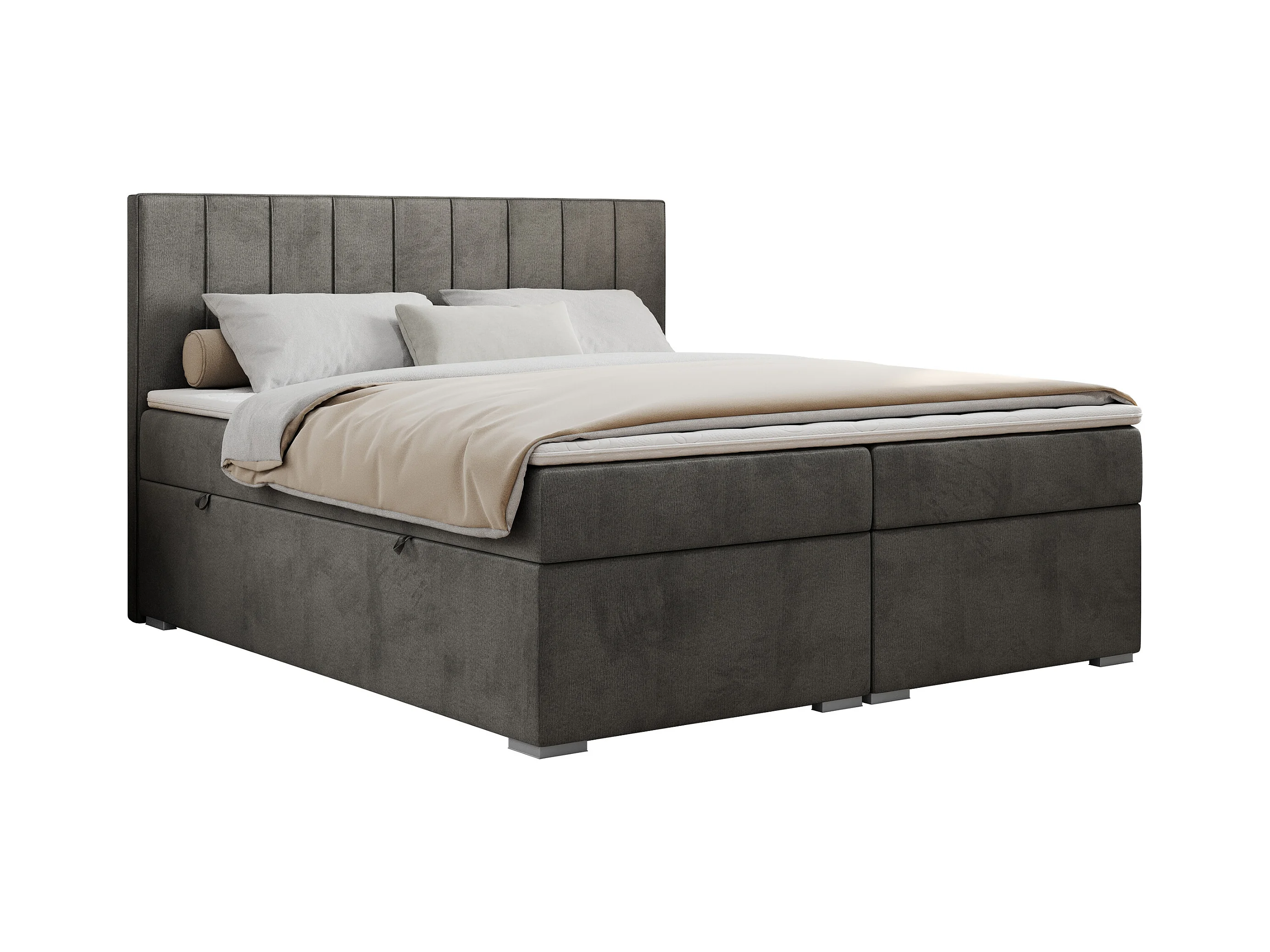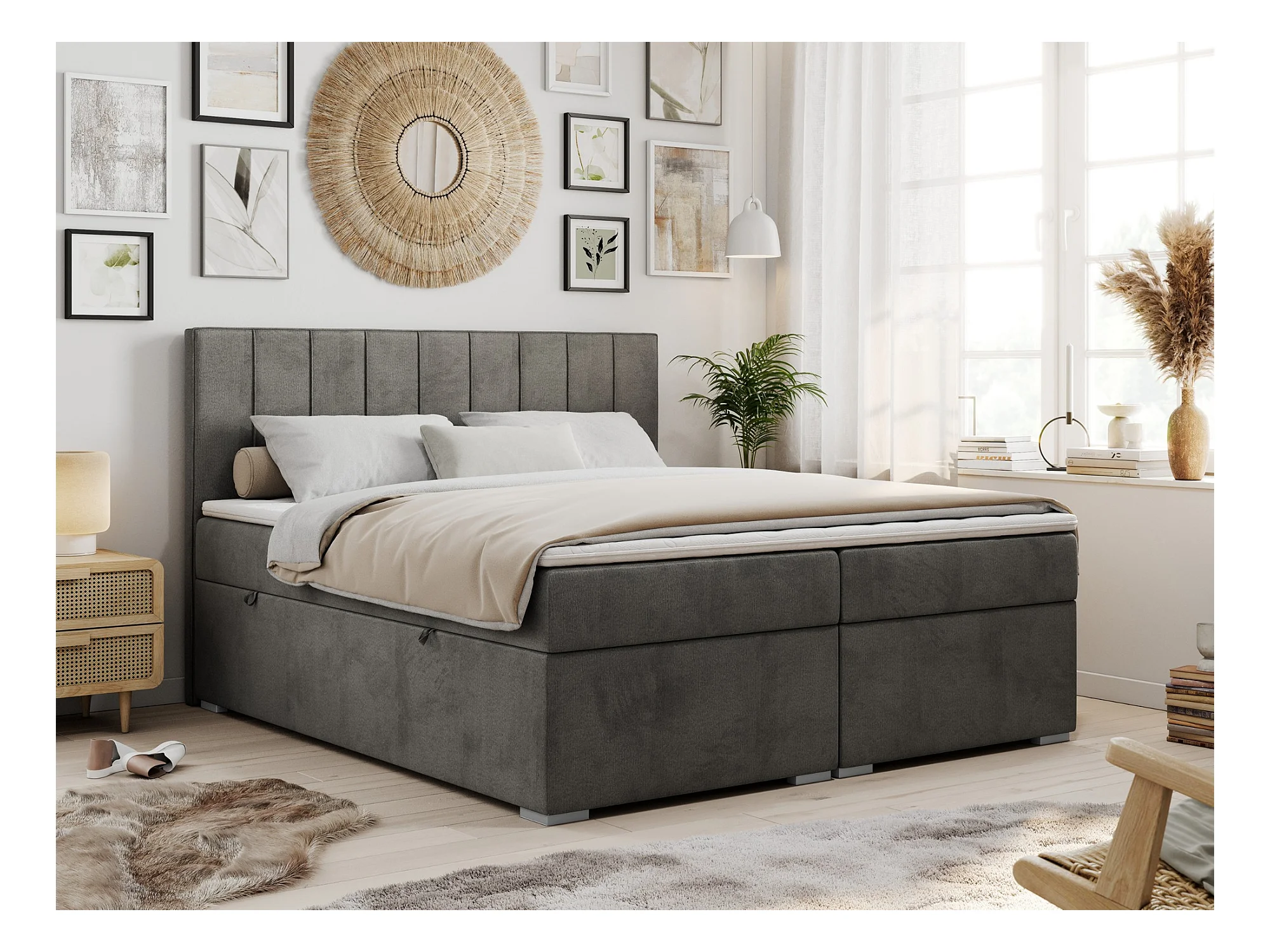 Boxspringbett ALLY - gestreiftes, genähtes Kopfteil, zwei Bettkästen, Multipocket-Matratzen, Praktisch Polsterbett - 200x200 cm - H3 - Dunkelgrau Velvet