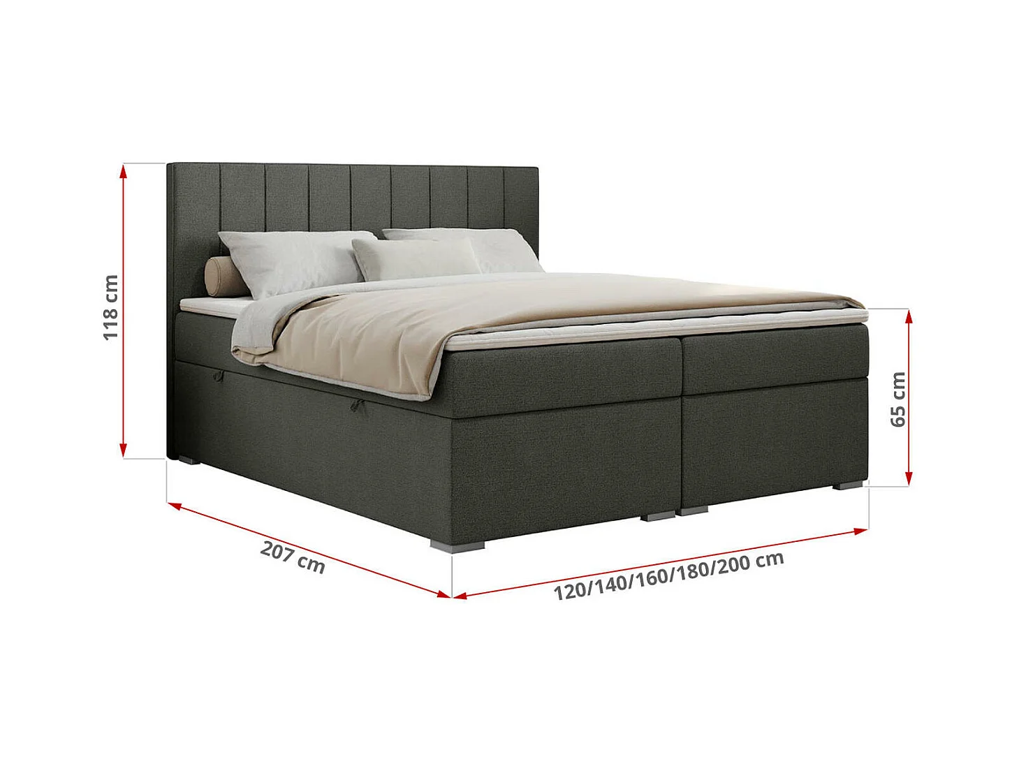 Boxspringbett ALLY - gestreiftes, genähtes Kopfteil, zwei Bettkästen, Multipocket-Matratzen, Praktisch Polsterbett - 200x200 cm - H4 - Dunkelgrau Strukture