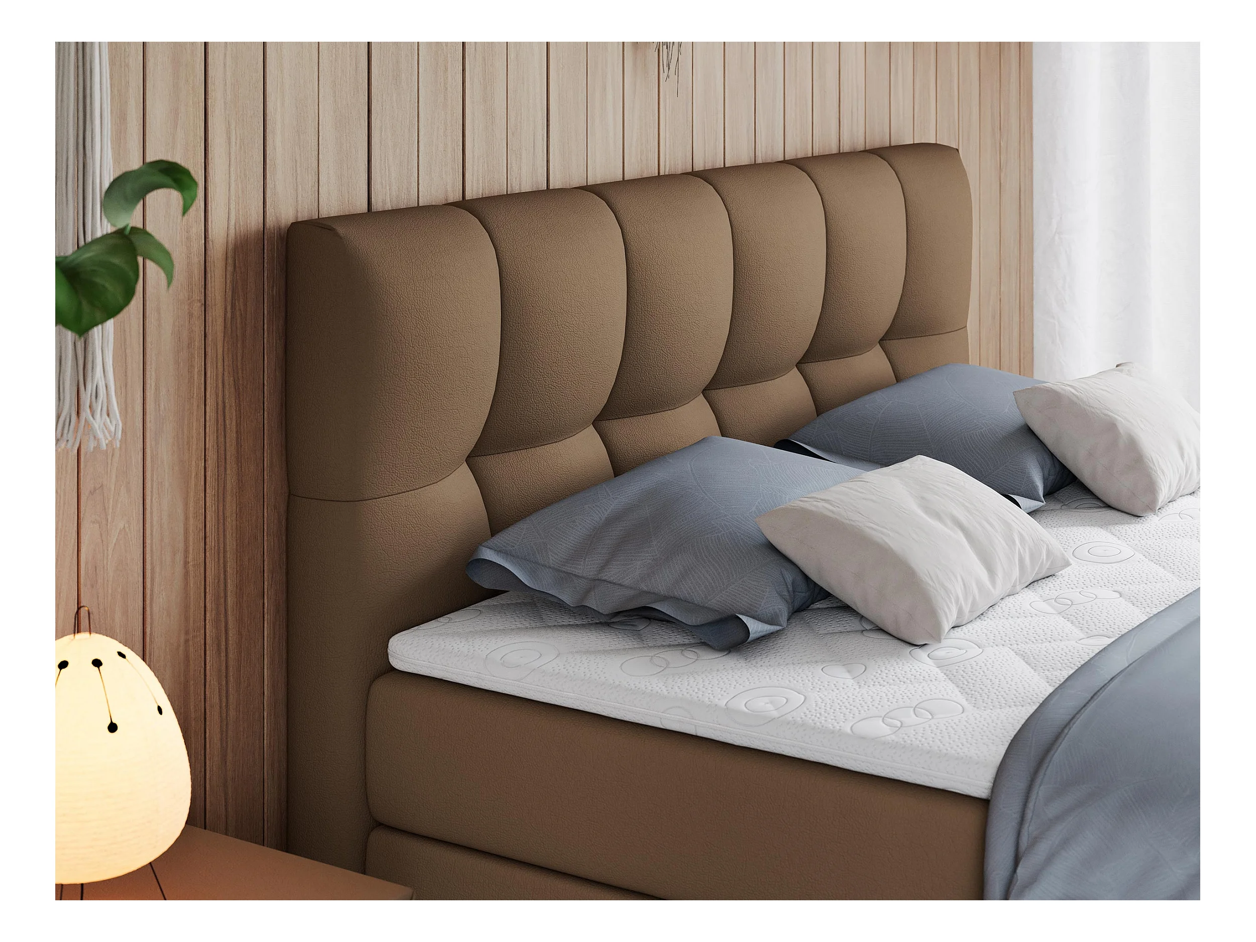 Boxspringbett ALVIN KING, mit zwei Multipocket-Matratzen, Bettkästen, genähtes Kopfteil - 120x200 cm - H3 - Braun Kunstleder