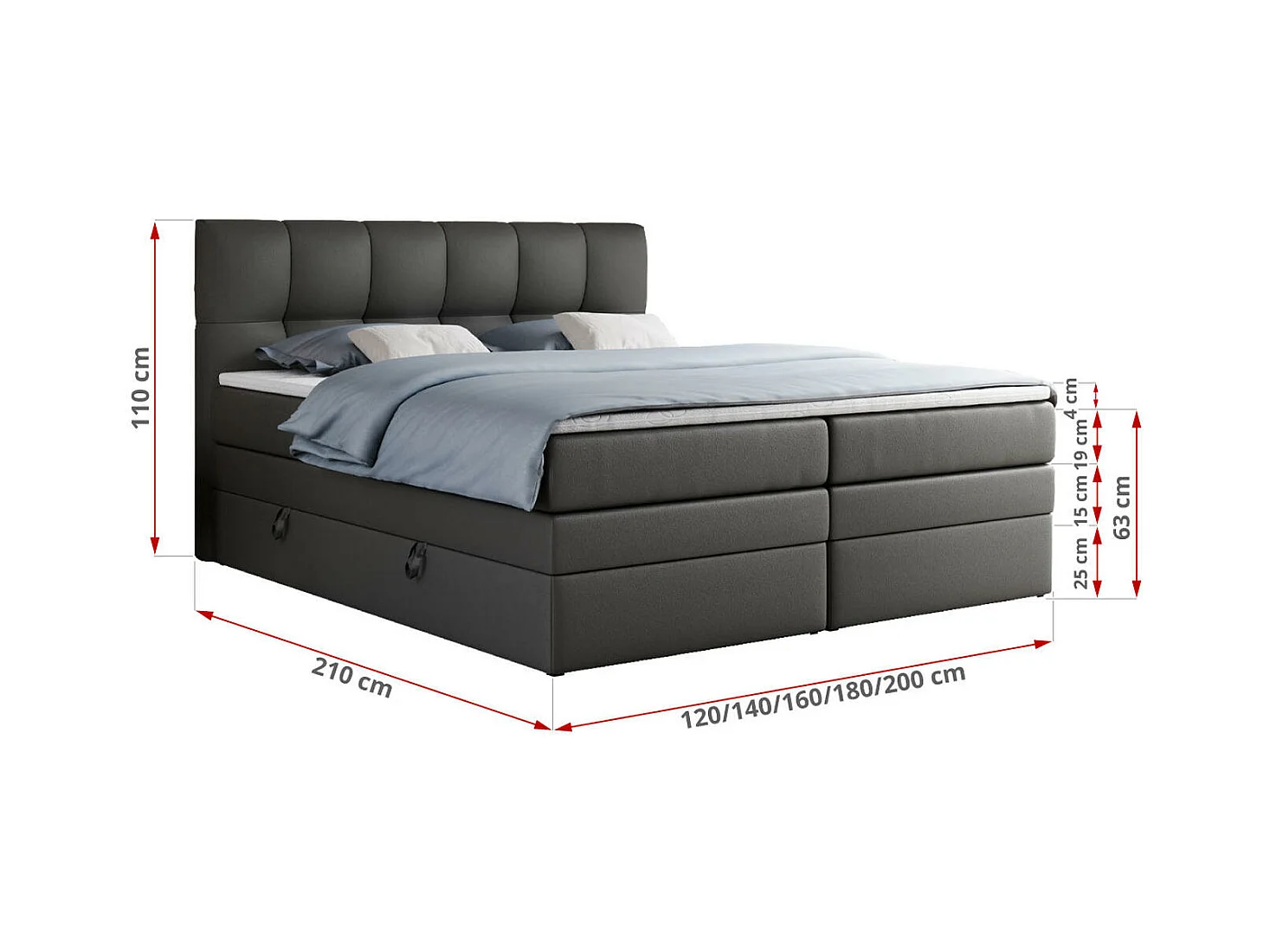 Boxspringbett ALVIN KING, mit zwei Multipocket-Matratzen, Bettkästen, genähtes Kopfteil - 120x200 cm - H3 - Dunkelgrau Kunstleder