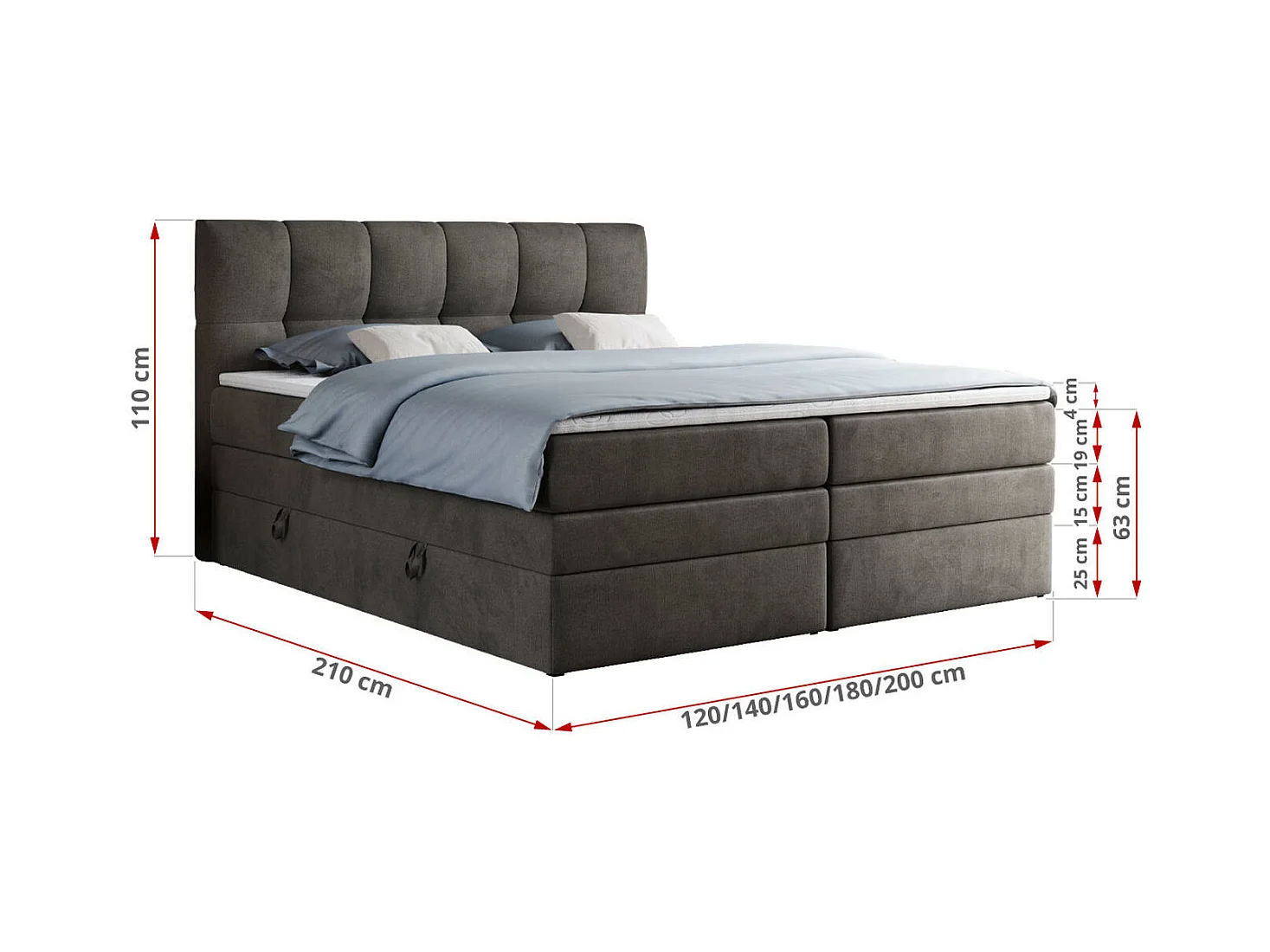 Boxspringbett ALVIN KING, mit zwei Multipocket-Matratzen, Bettkästen, genähtes Kopfteil - 120x200 cm - H3 - Dunkelgrau Velvet