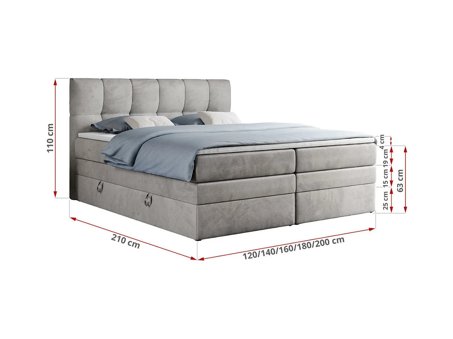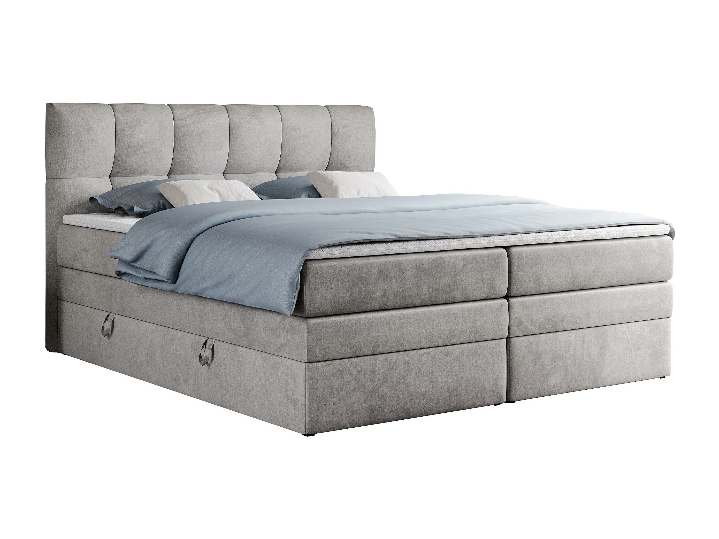 Boxspringbett ALVIN KING, mit zwei Multipocket-Matratzen, Bettkästen, genähtes Kopfteil - 120x200 cm - H4 - Hellgrau Velvet