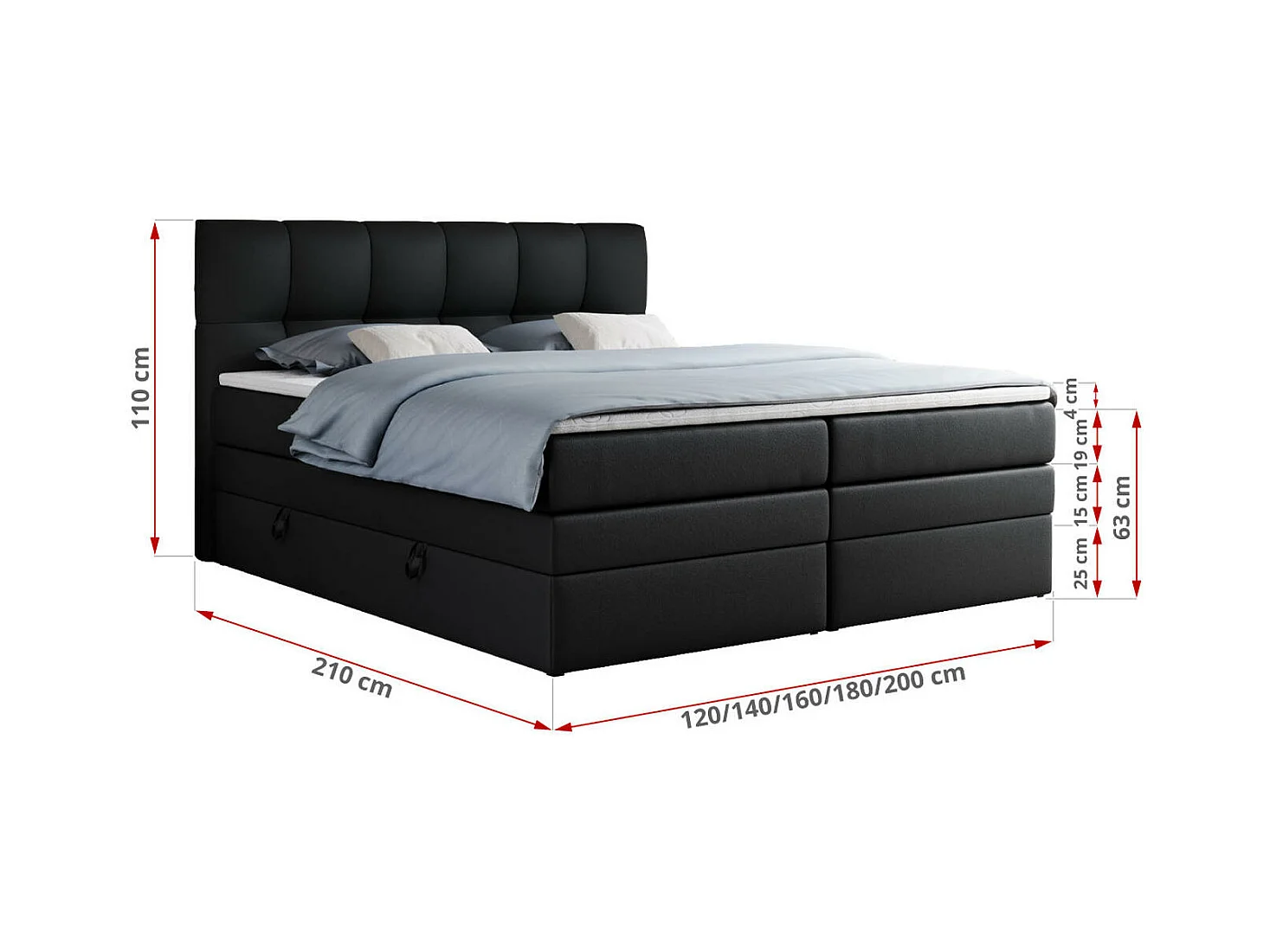 Boxspringbett ALVIN KING, mit zwei Multipocket-Matratzen, Bettkästen, genähtes Kopfteil - 120x200 cm - H4 - Schwarz Kunstleder