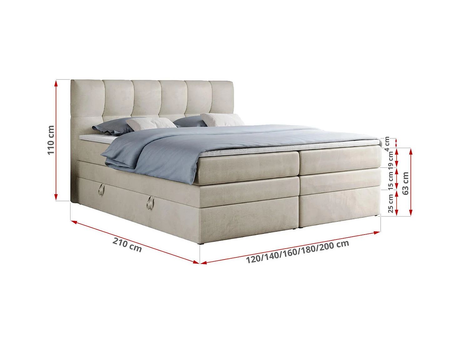 Boxspringbett ALVIN KING, mit zwei Multipocket-Matratzen, Bettkästen, genähtes Kopfteil - 160x200 cm - H3 - Beige Velvet