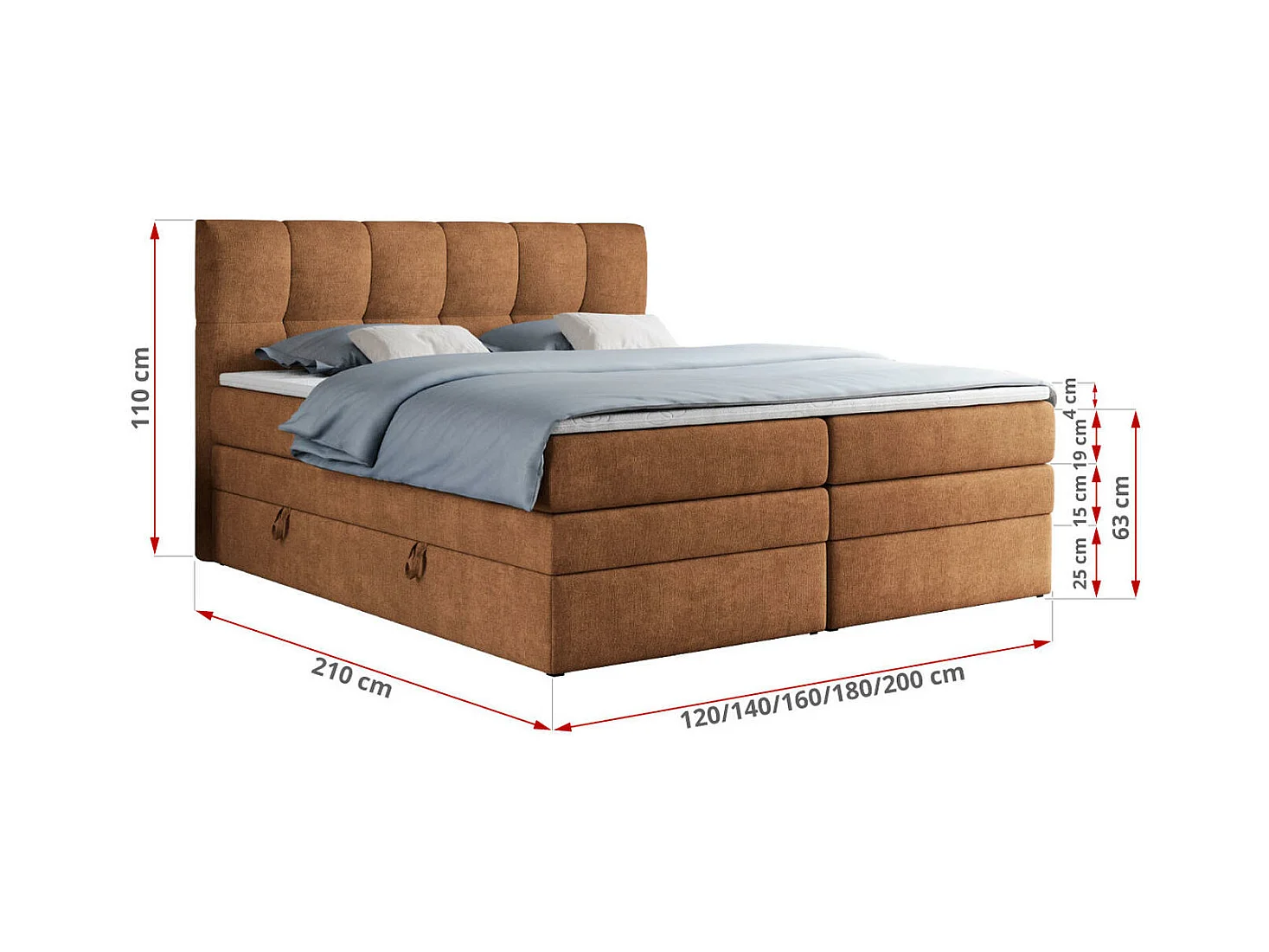Boxspringbett ALVIN KING, mit zwei Multipocket-Matratzen, Bettkästen, genähtes Kopfteil - 180x200 cm - H4 - Orange Strukture