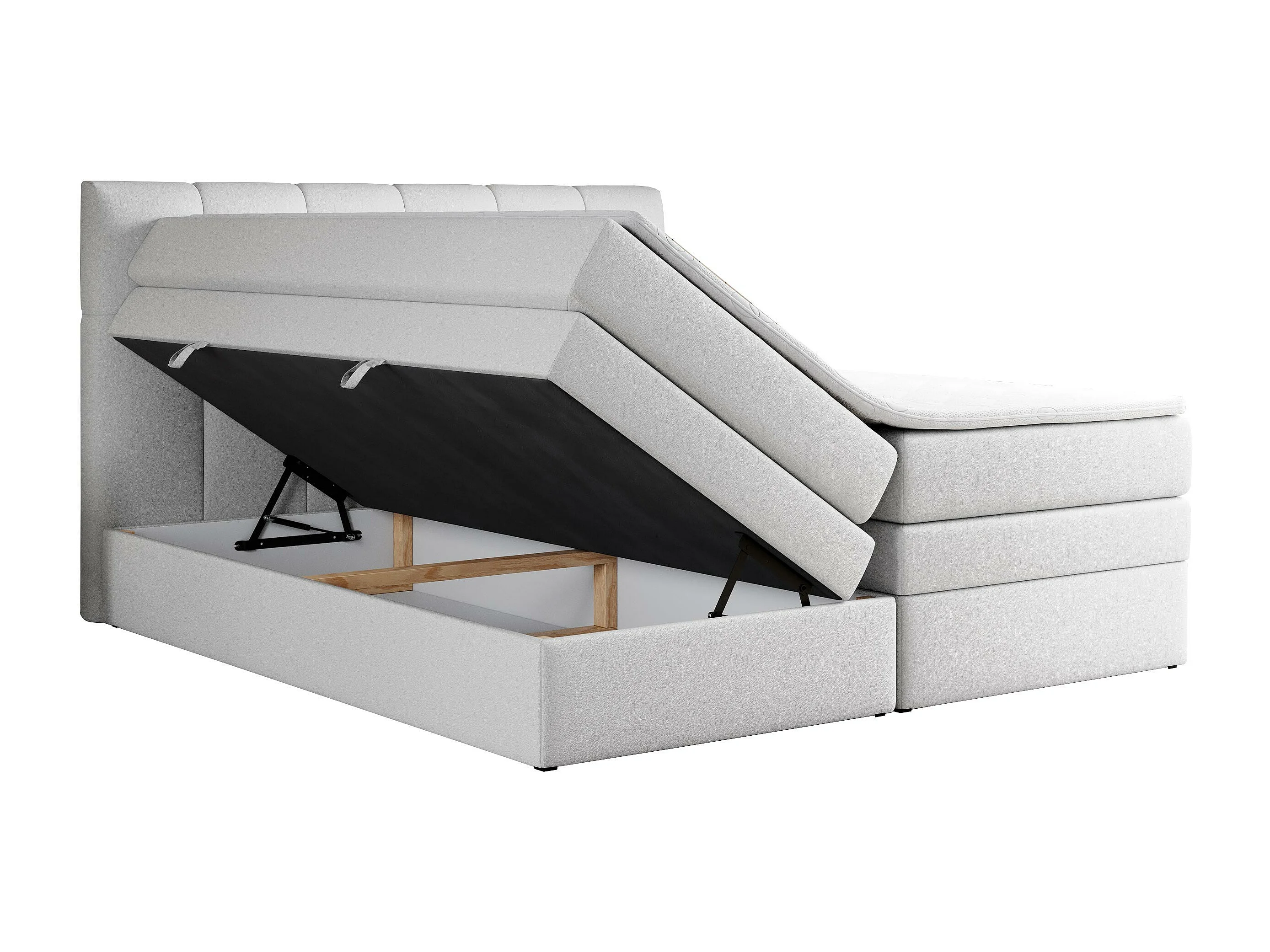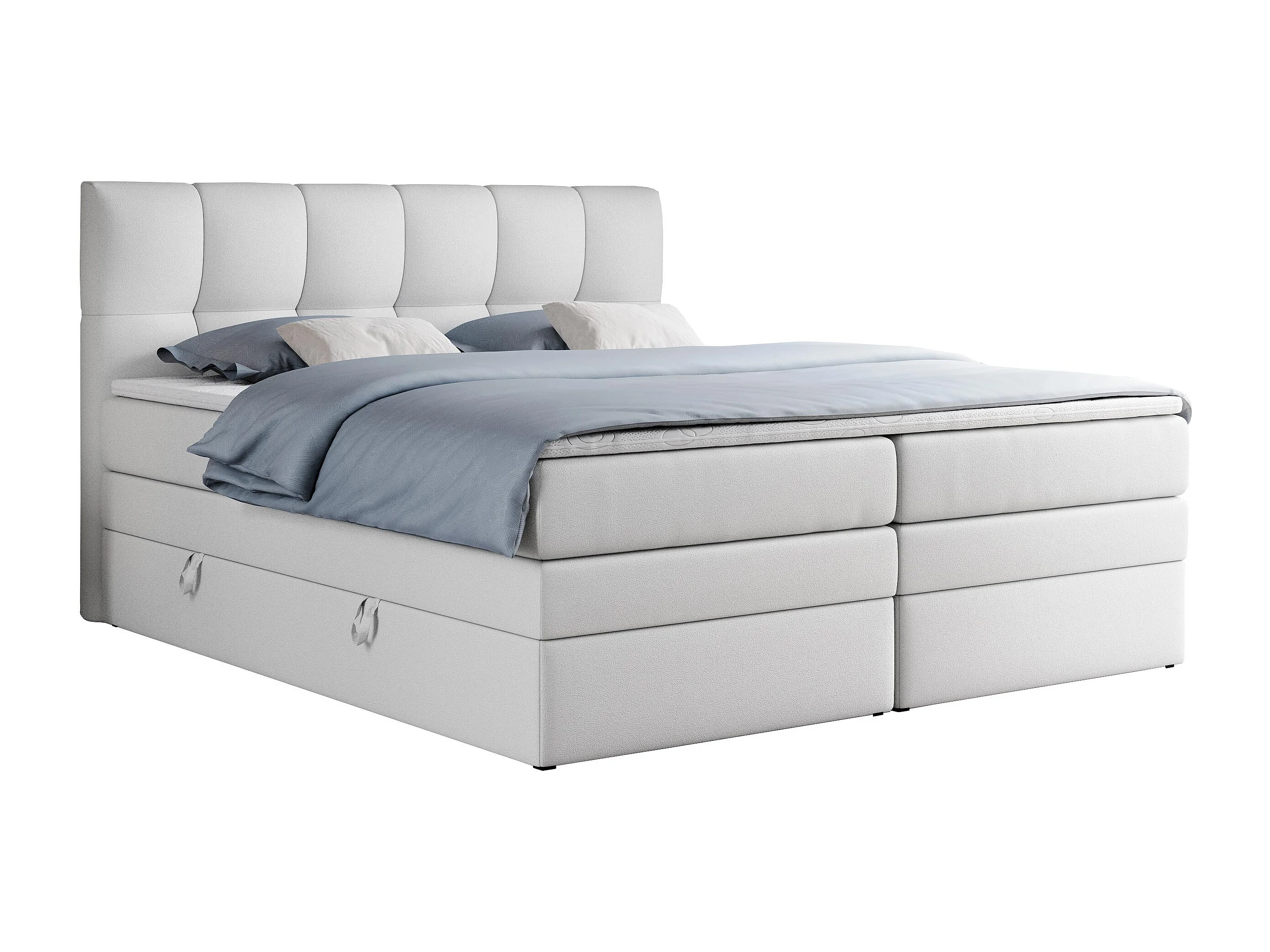 Boxspringbett ALVIN KING, mit zwei Multipocket-Matratzen, Bettkästen, genähtes Kopfteil - 180x200 cm - H4 - Weiß Kunstleder