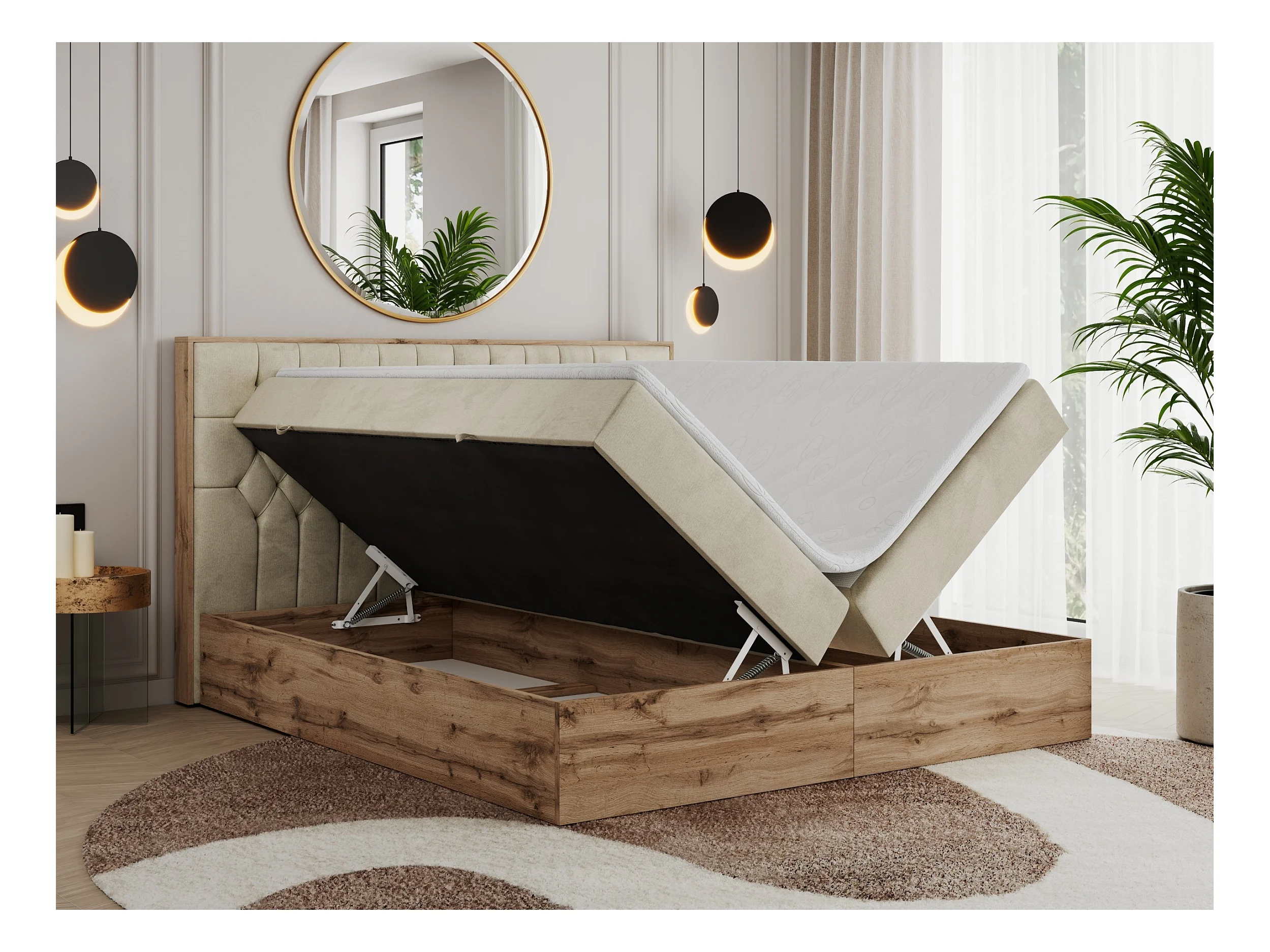 Boxspringbett AMORE - Bett mit Multipocket-Matratze, gesteppte Kopfstütze, Doppelbett für Schlafzimmer - 140x200 cm - H4 - Beige Velvet