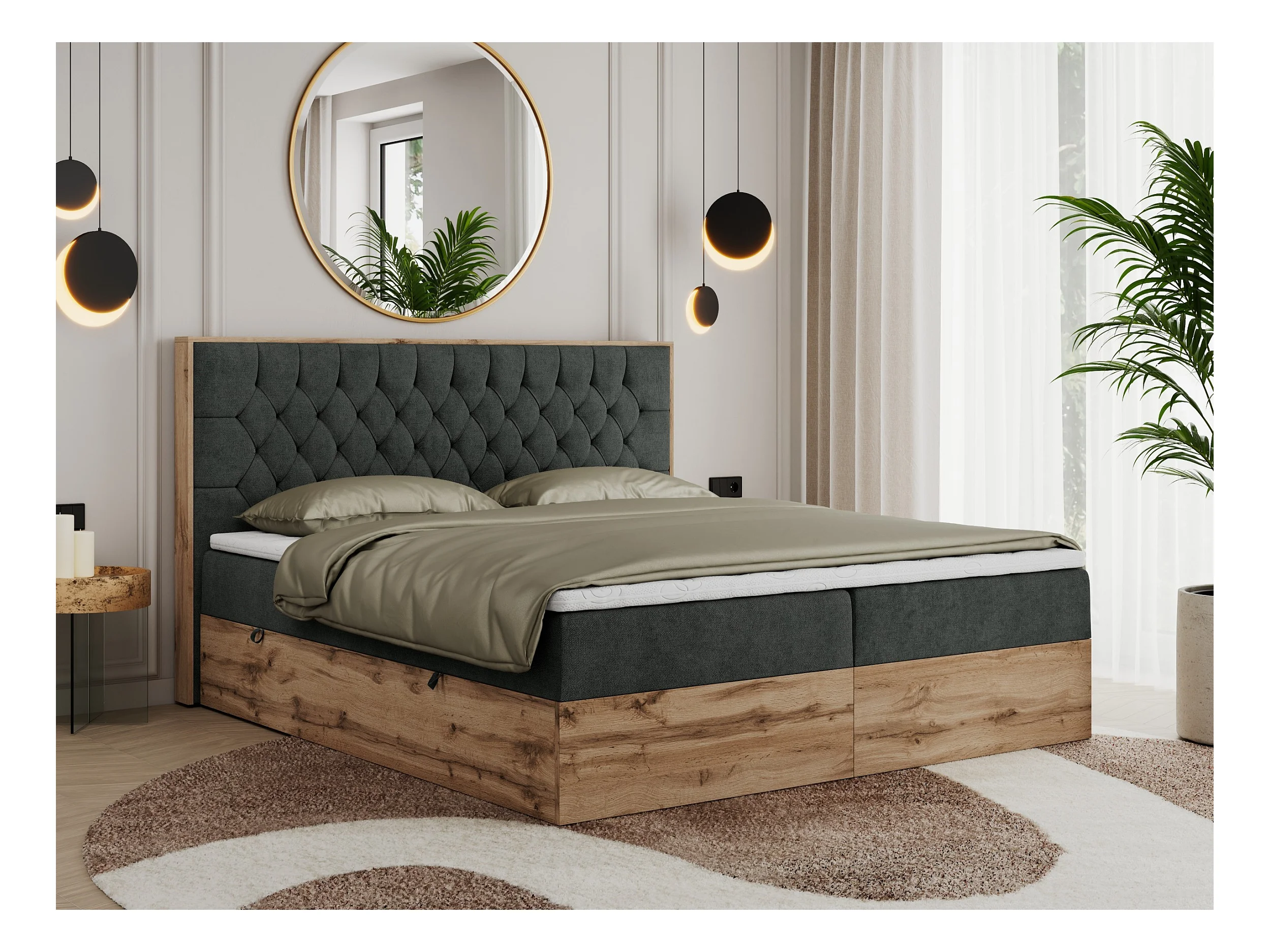 Boxspringbett AMORE - Bett mit Multipocket-Matratze, gesteppte Kopfstütze, Doppelbett für Schlafzimmer - 140x200 cm - H4 - Dunkelgrau Strukture