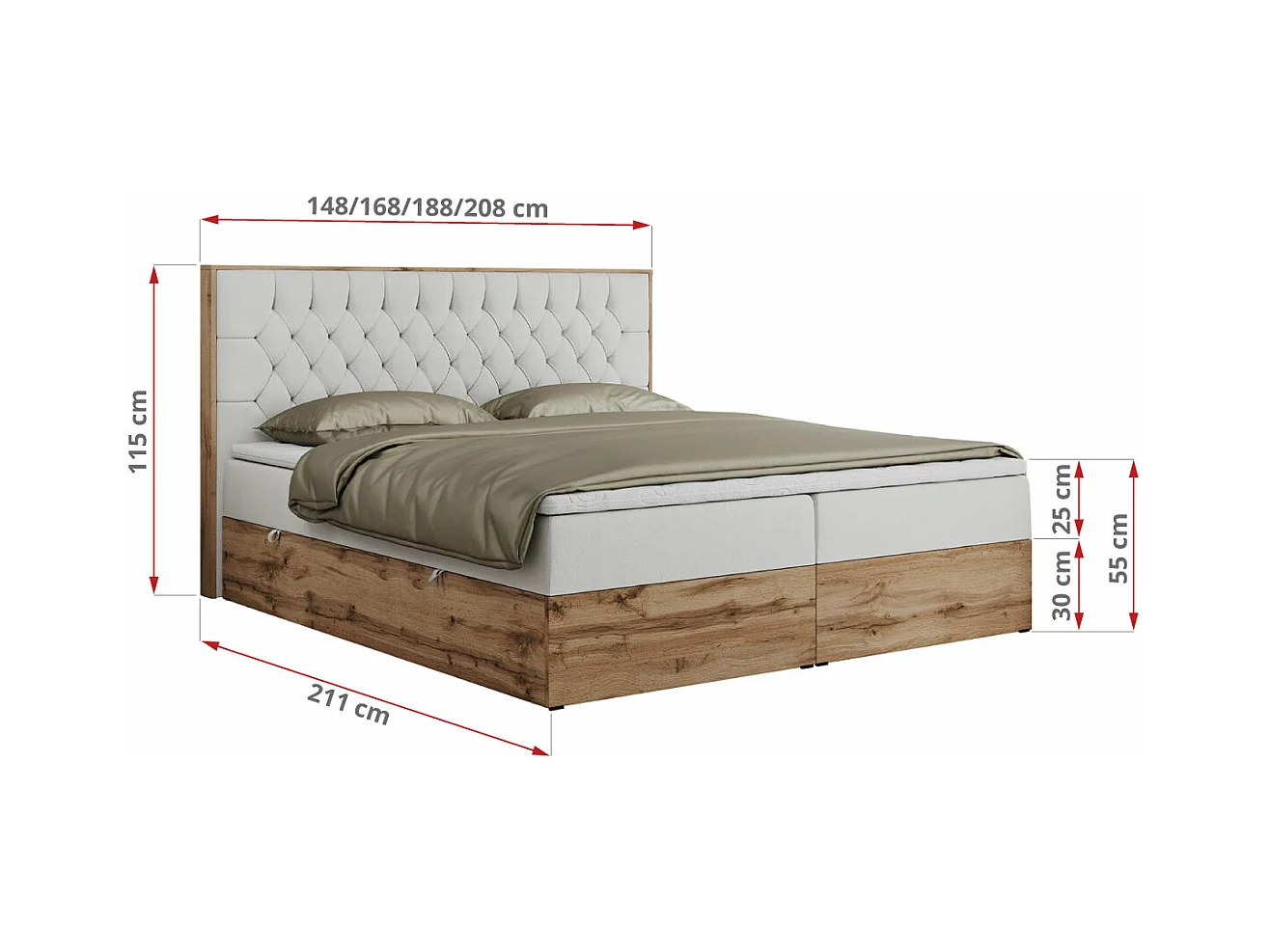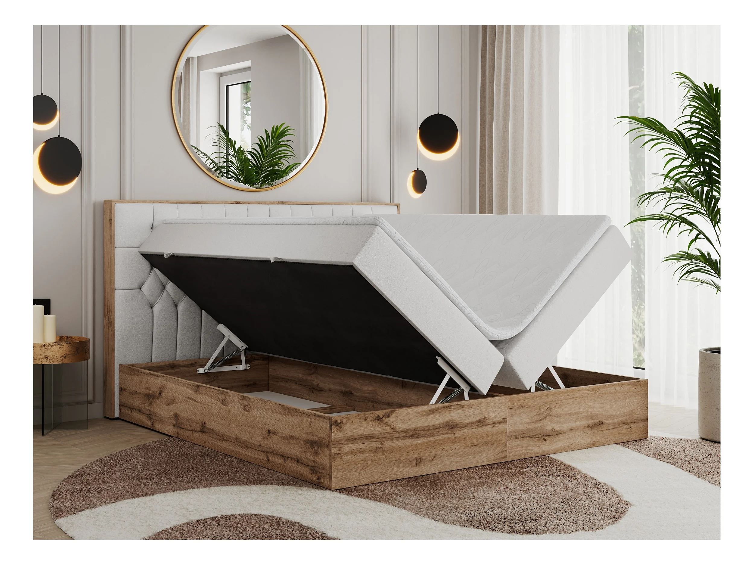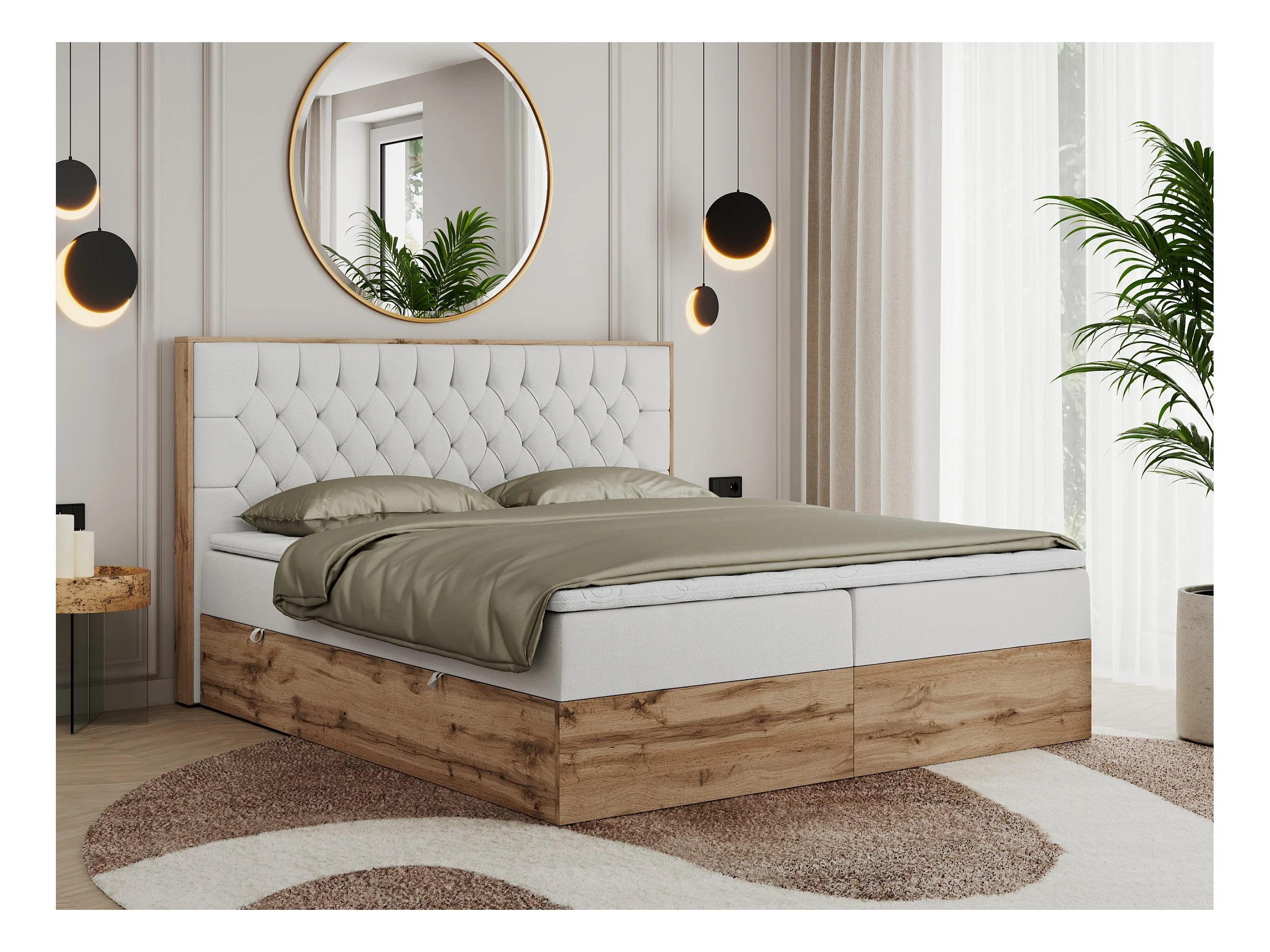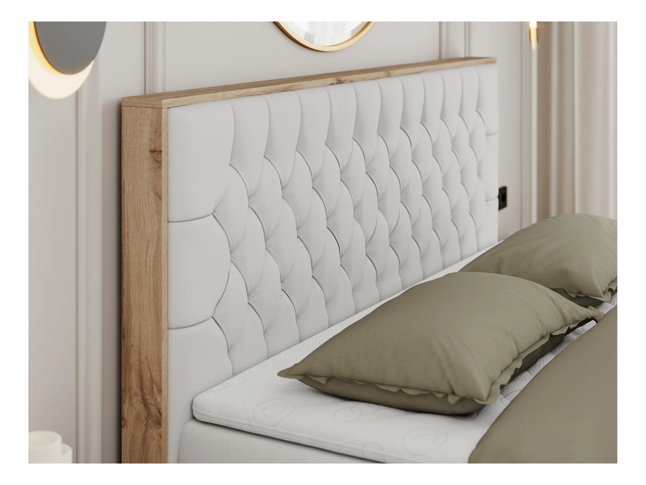 Boxspringbett AMORE - Bett mit Multipocket-Matratze, gesteppte Kopfstütze, Doppelbett für Schlafzimmer - 160x200 cm - H4 - Weiß Kunstleder