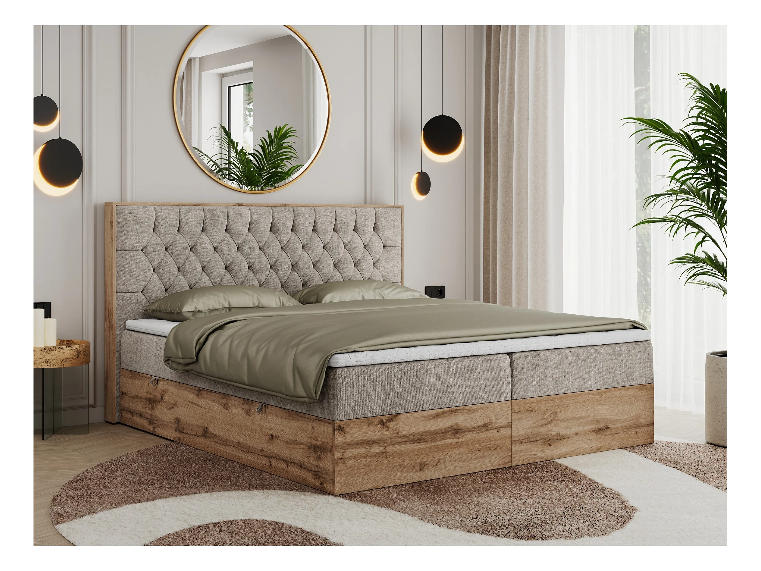 Boxspringbett AMORE - Bett mit Multipocket-Matratze, gesteppte Kopfstütze, Doppelbett für Schlafzimmer - 180x200 cm - H3 - Beige Strukture