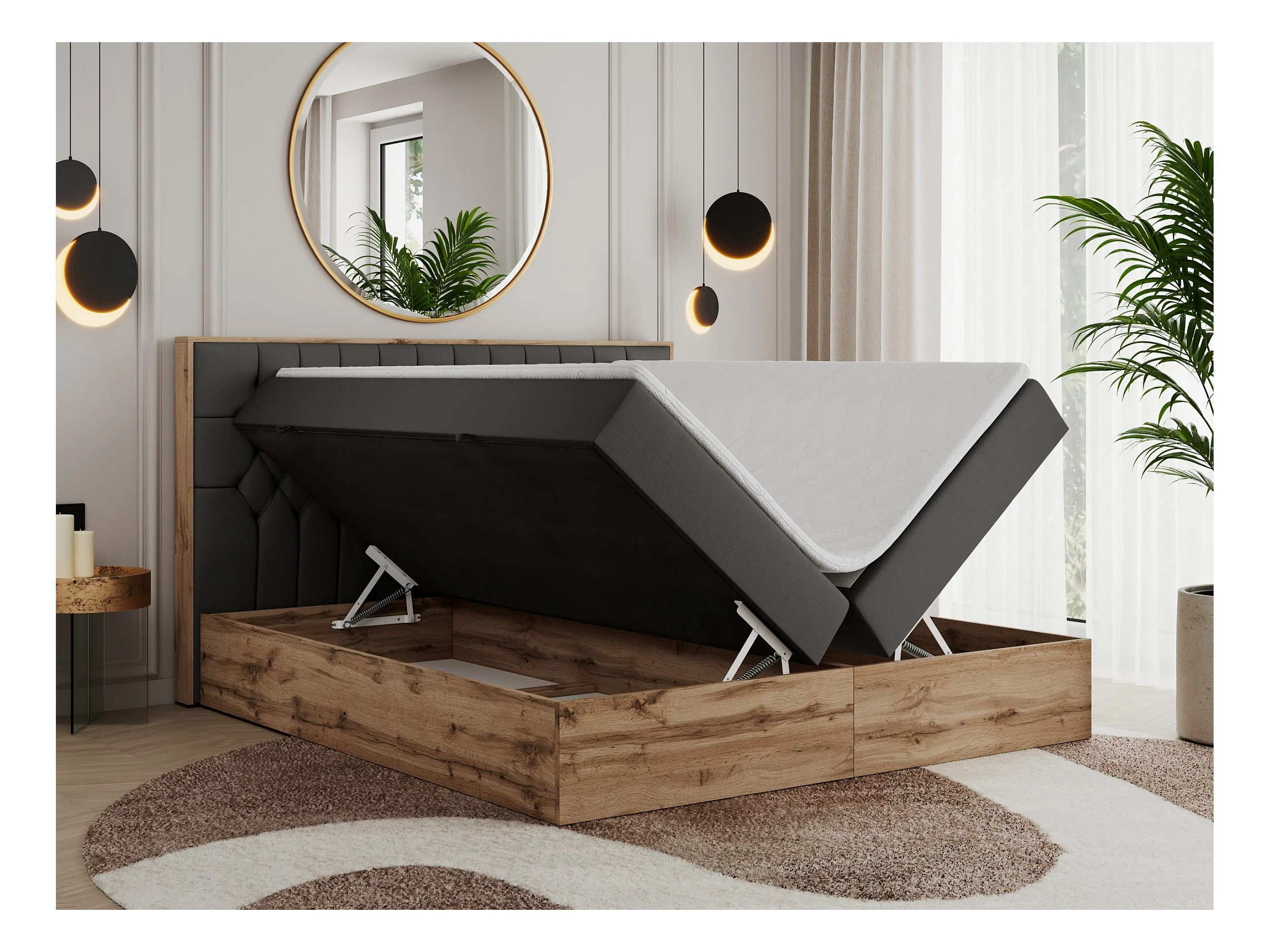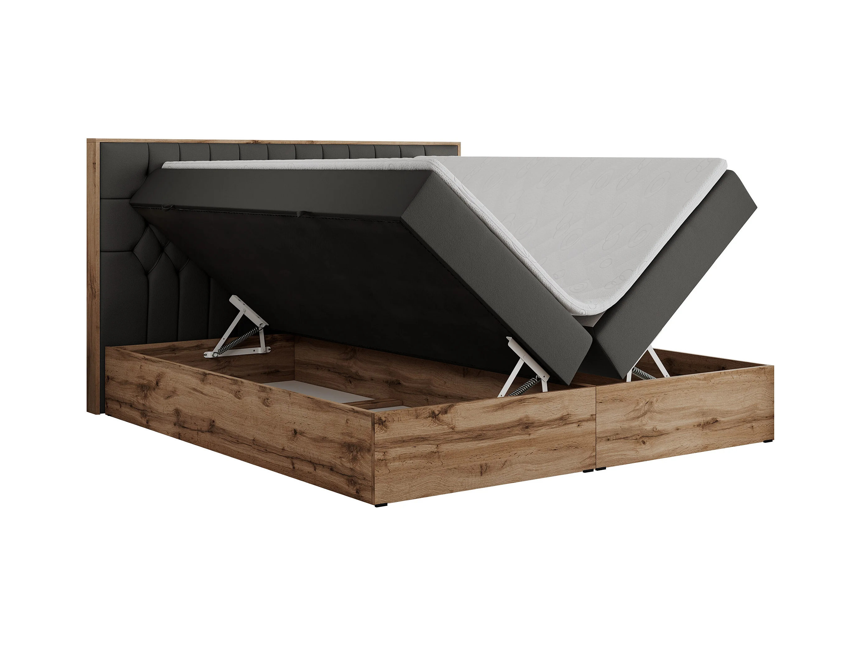 Boxspringbett AMORE - Bett mit Multipocket-Matratze, gesteppte Kopfstütze, Doppelbett für Schlafzimmer - 180x200 cm - H3 - Dunkelgrau Kunstleder