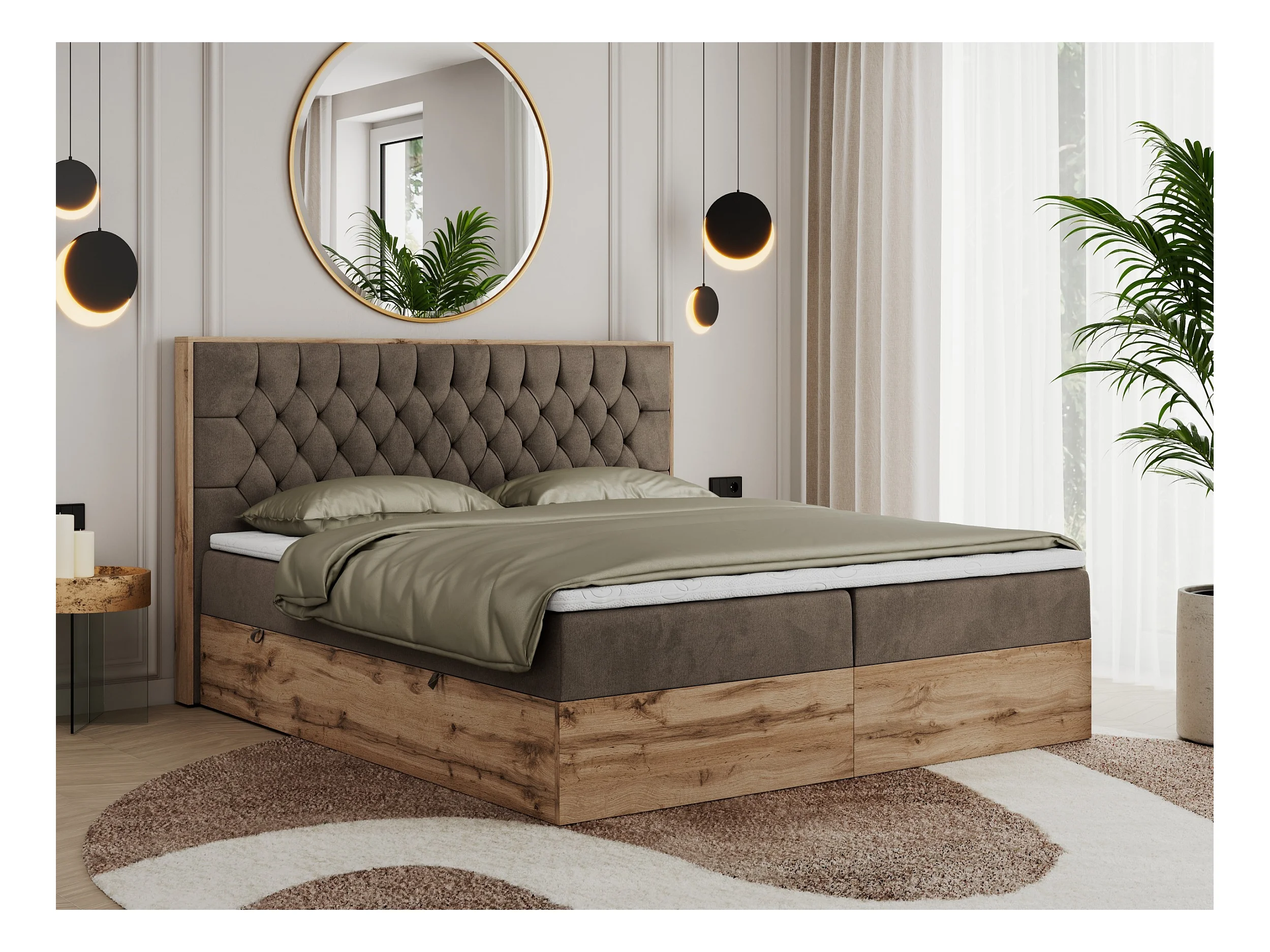Boxspringbett AMORE - Bett mit Multipocket-Matratze, gesteppte Kopfstütze, Doppelbett für Schlafzimmer - 180x200 cm - H4 - Braun Velvet