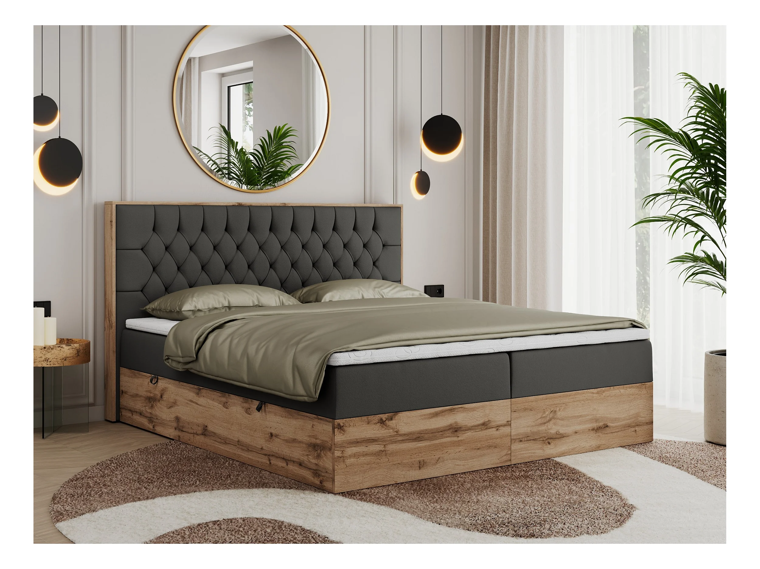 Boxspringbett AMORE - Bett mit Multipocket-Matratze, gesteppte Kopfstütze, Doppelbett für Schlafzimmer - 180x200 cm - H4 - Dunkelgrau Kunstleder