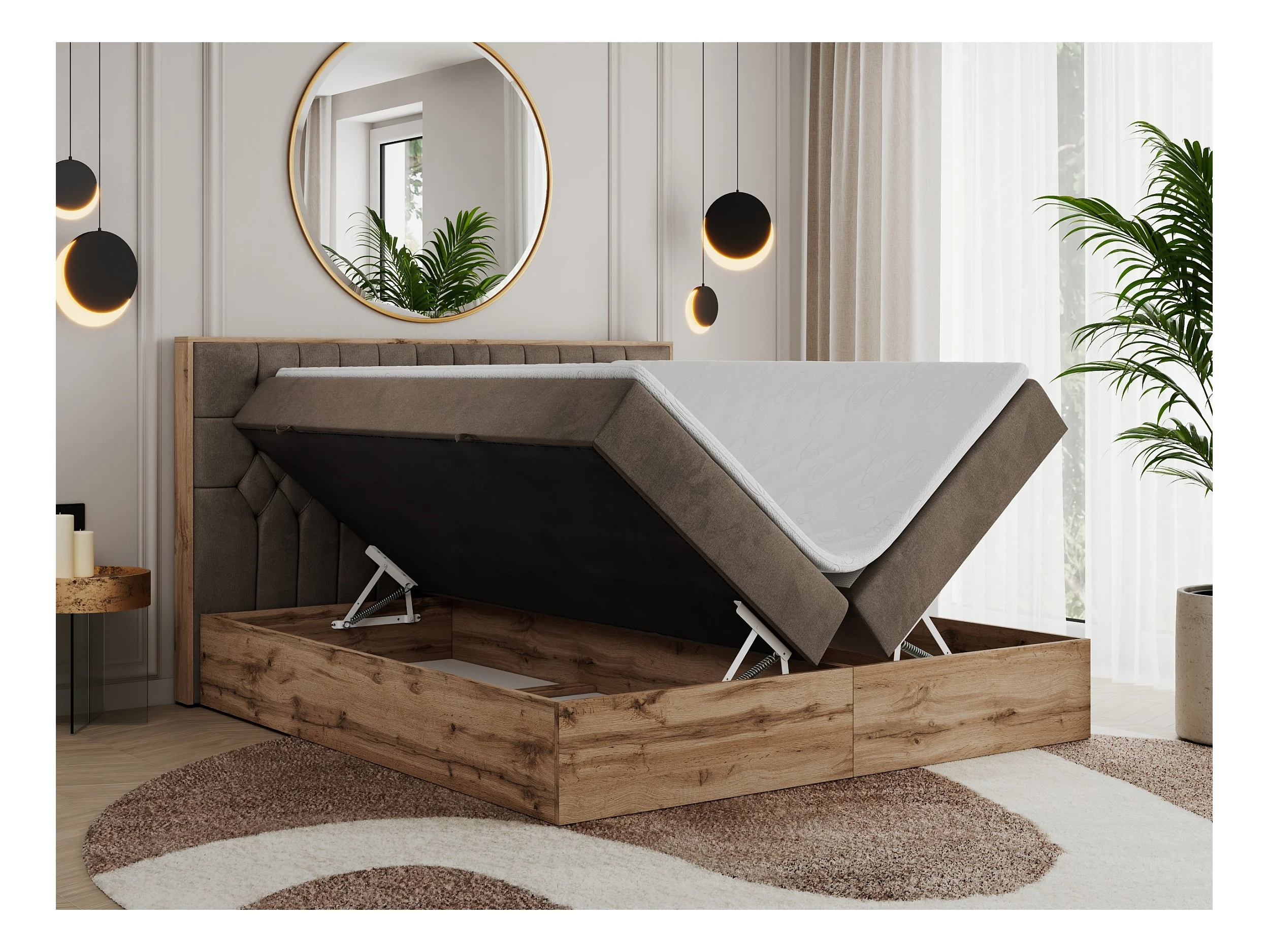 Boxspringbett AMORE - Bett mit Multipocket-Matratze, gesteppte Kopfstütze, Doppelbett für Schlafzimmer - 200x200 cm - H3 - Braun Velvet