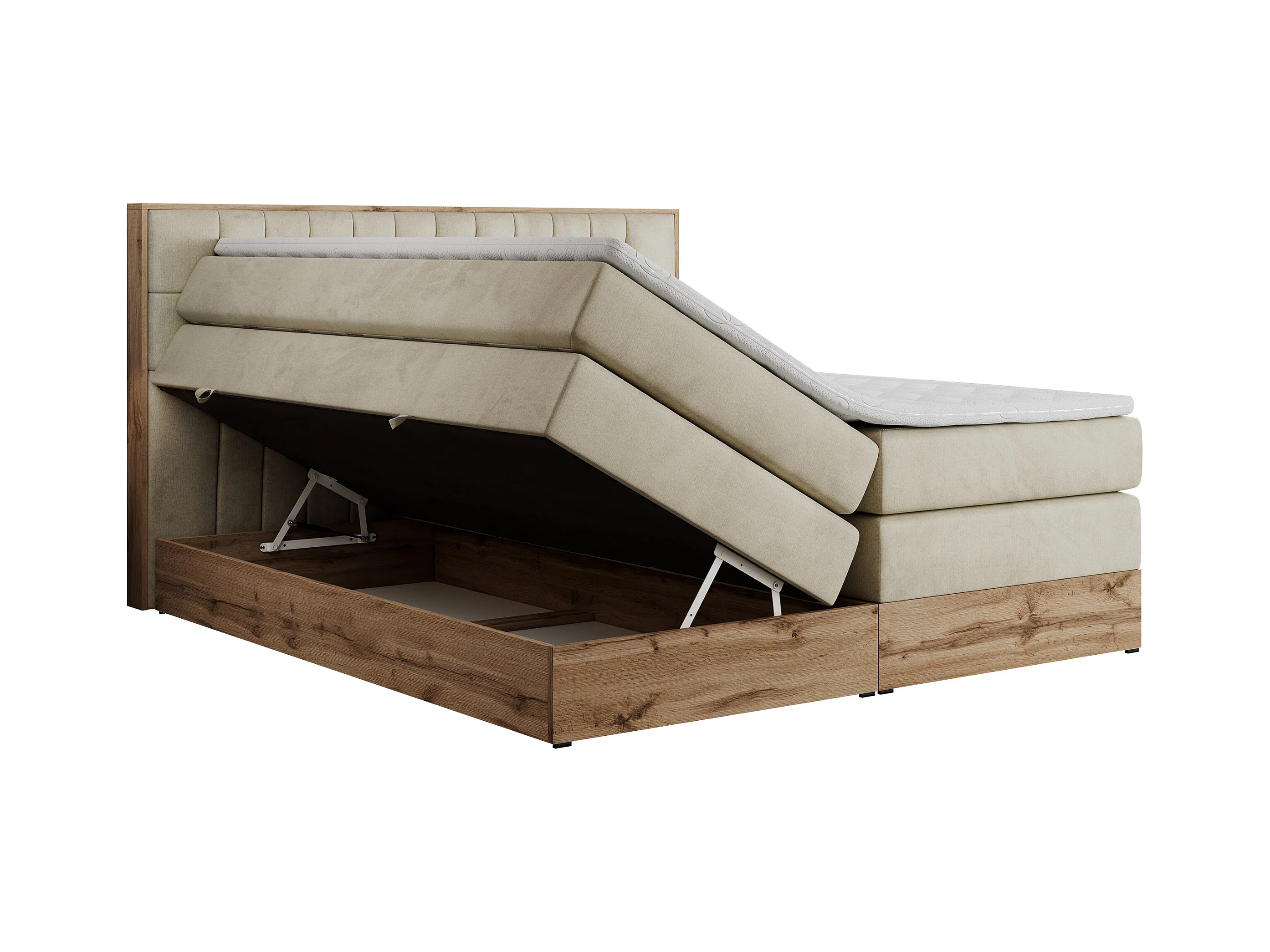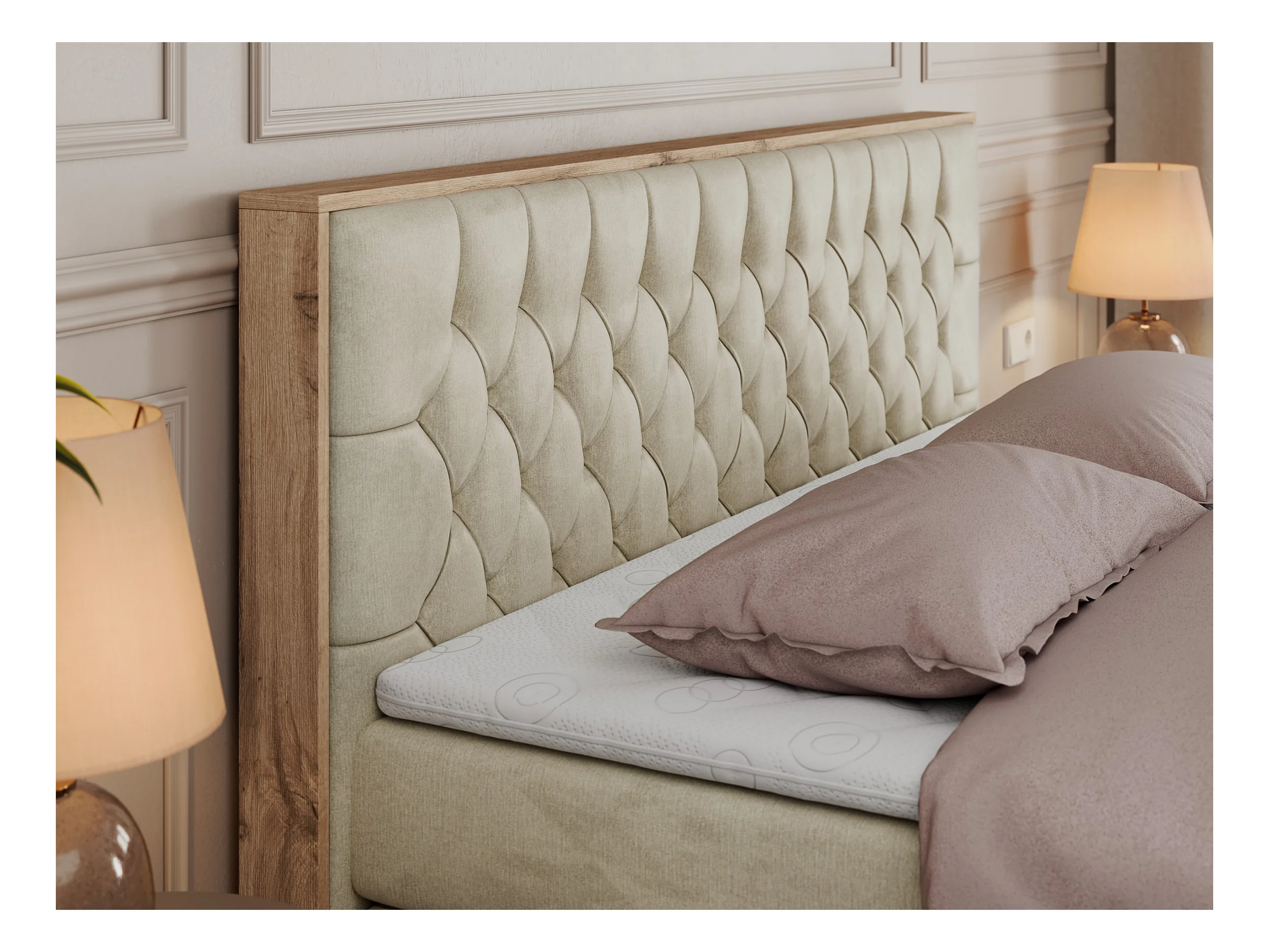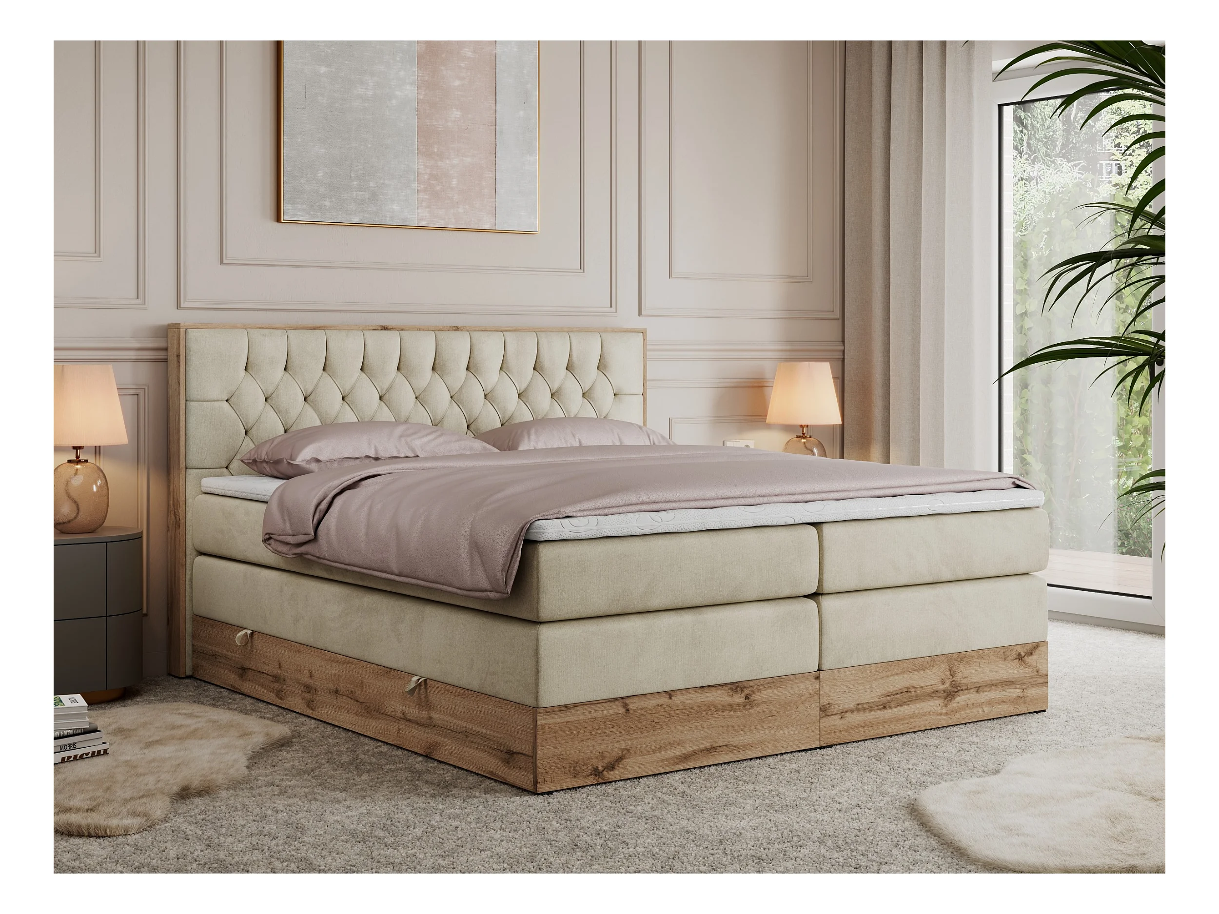 Boxspringbett AMORE KING - gesteppte Kopfstütze, Polsterbett mit zwei Multipocket-Matratzen, Holzrahmen - 140x200 cm - H4 - Beige Velvet
