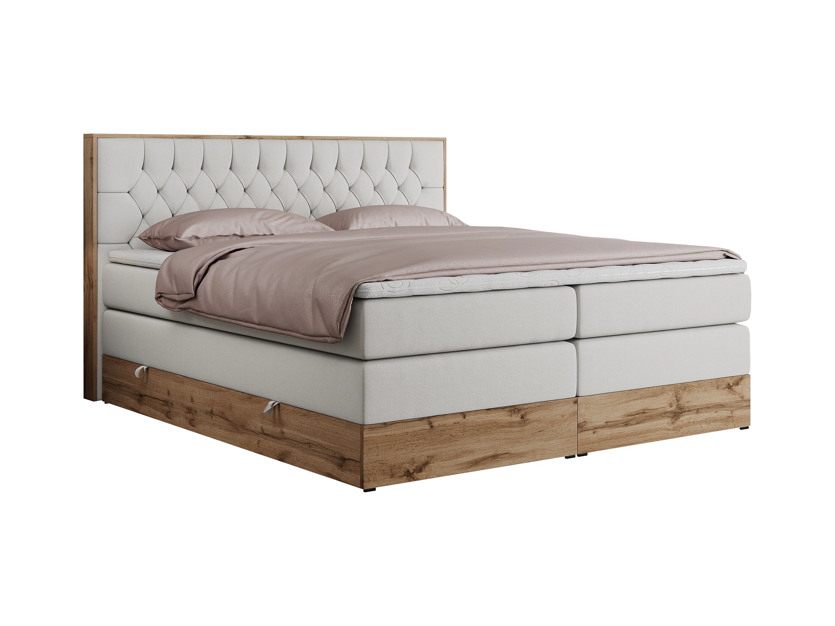 Boxspringbett AMORE KING - gesteppte Kopfstütze, Polsterbett mit zwei Multipocket-Matratzen, Holzrahmen - 160x200 cm - H3 - Weiß Kunstleder