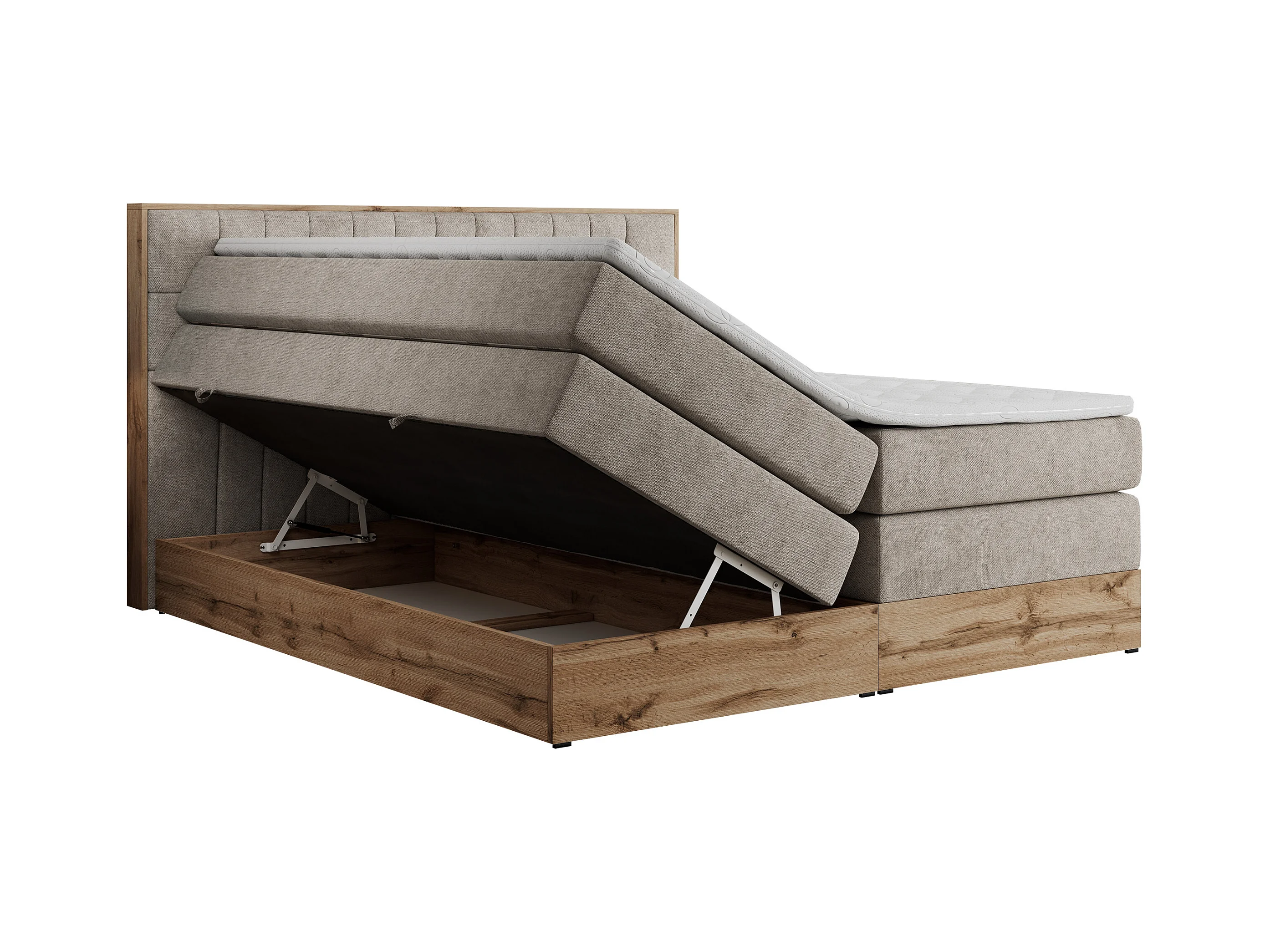 Boxspringbett AMORE KING - gesteppte Kopfstütze, Polsterbett mit zwei Multipocket-Matratzen, Holzrahmen - 180x200 cm - H4 - Beige Strukture