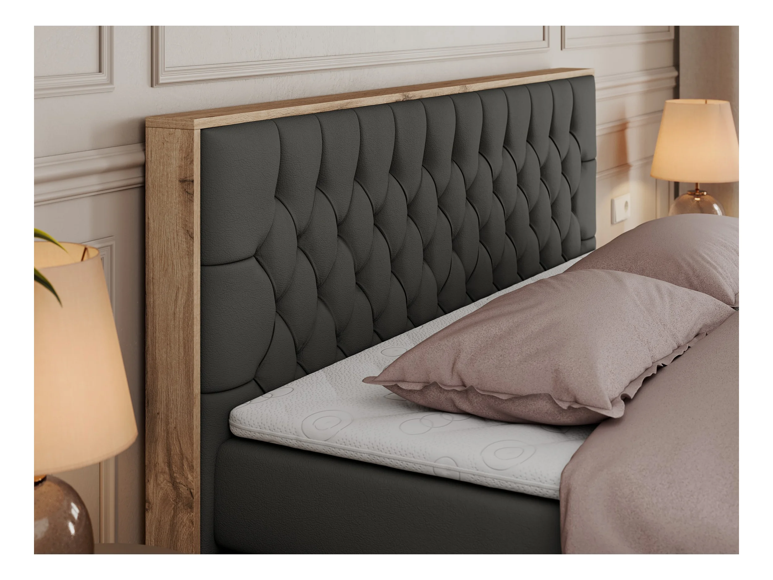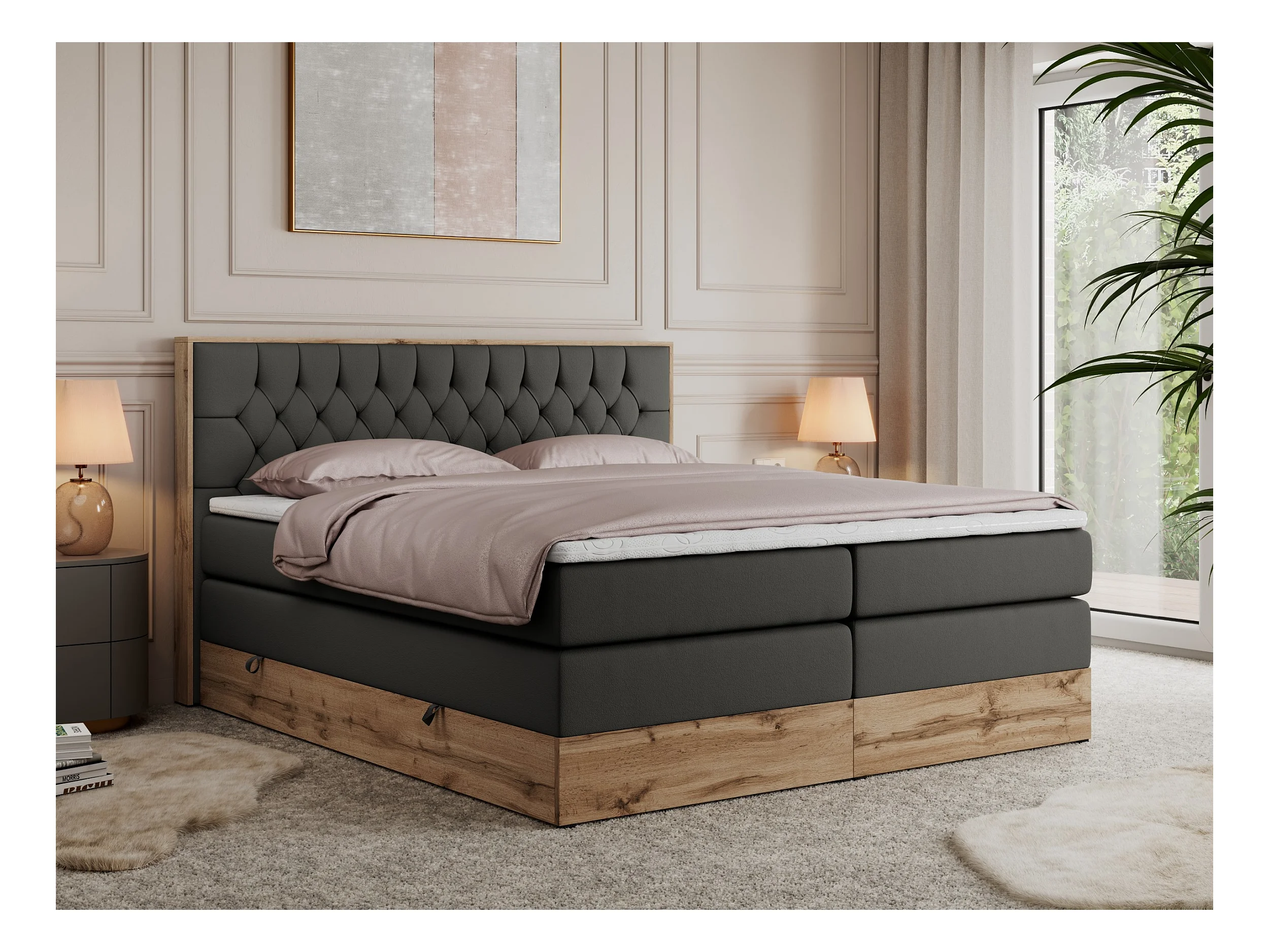 Boxspringbett AMORE KING - gesteppte Kopfstütze, Polsterbett mit zwei Multipocket-Matratzen, Holzrahmen - 180x200 cm - H4 - Dunkelgrau Kunstleder