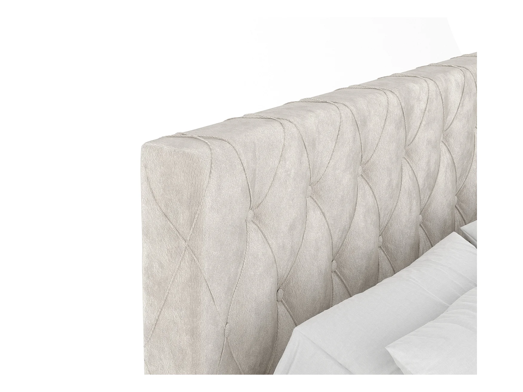 Boxspringbett aus Samtstoff Otus - Matratze - Toppermatratze - 140x200 cm - hellbeige