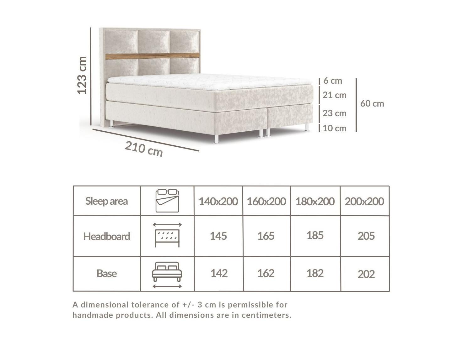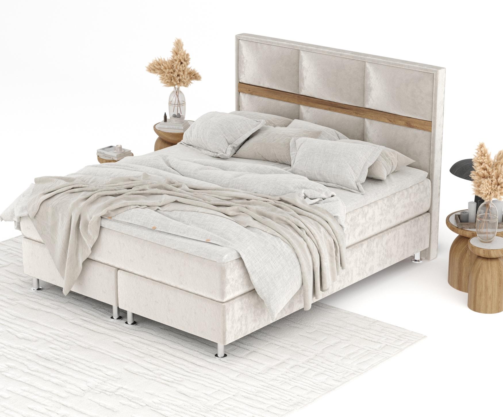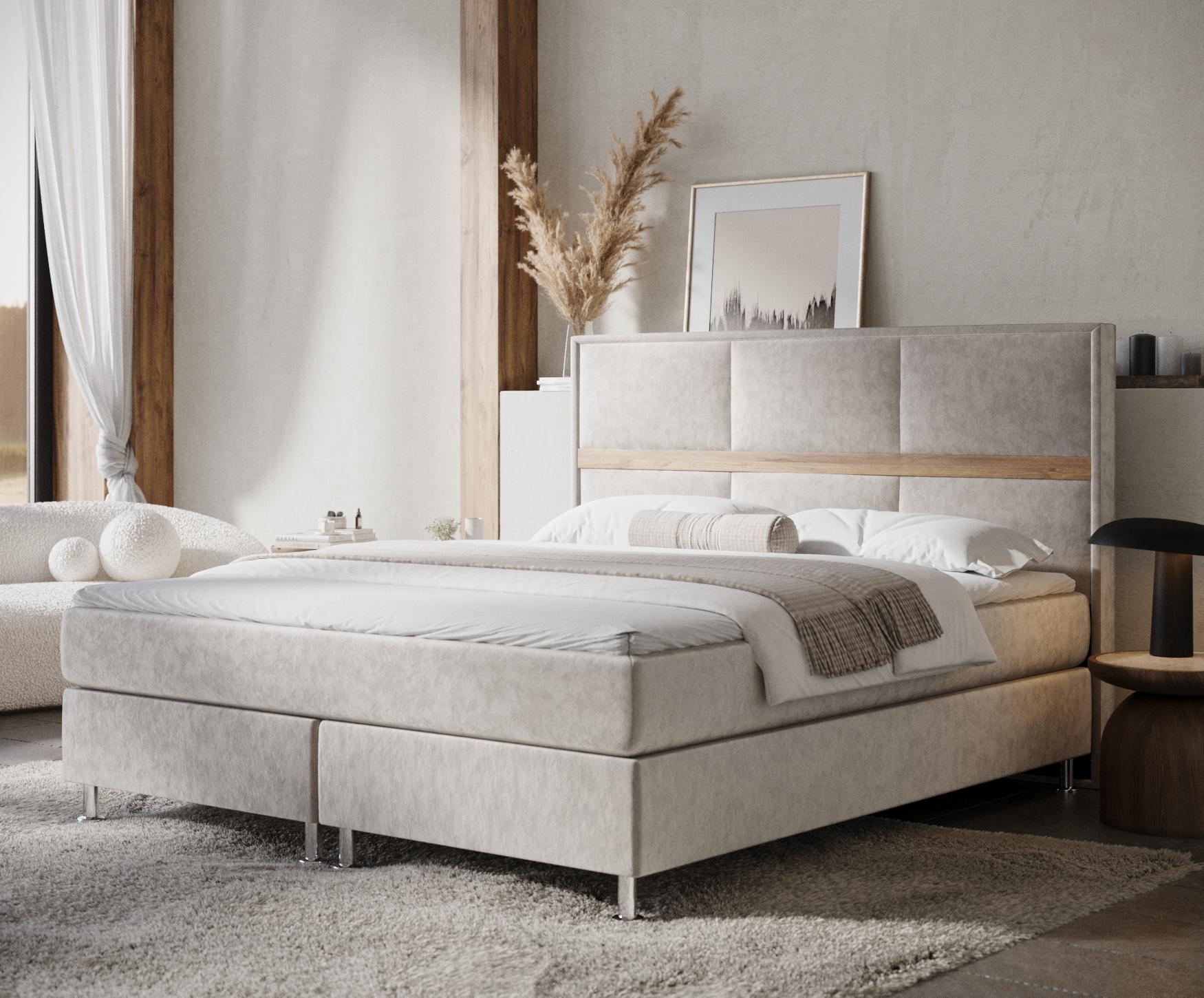 Boxspringbett aus Samtstoff Soto - Matratze - Toppermatratze - 140x200 cm - hellbeige