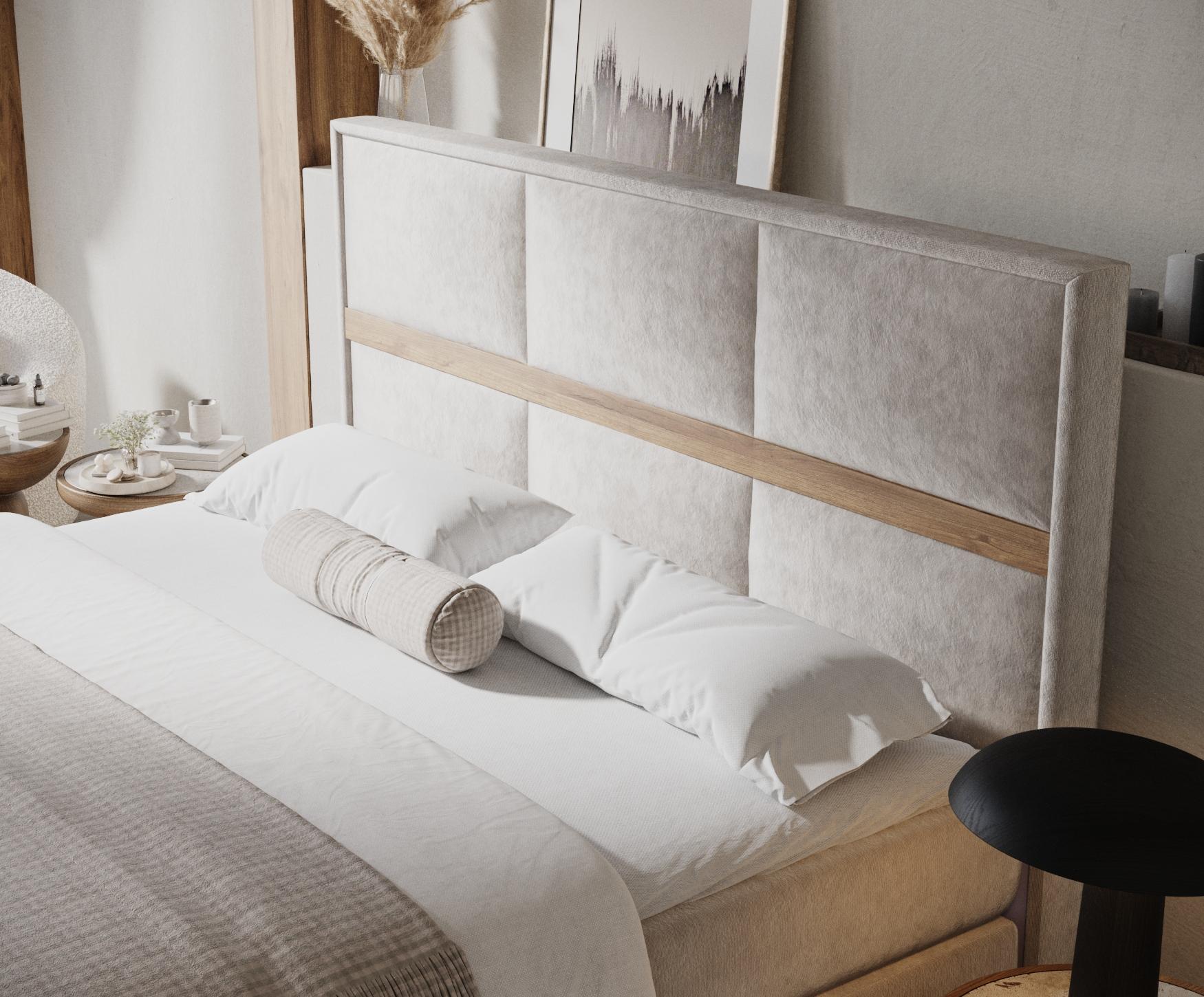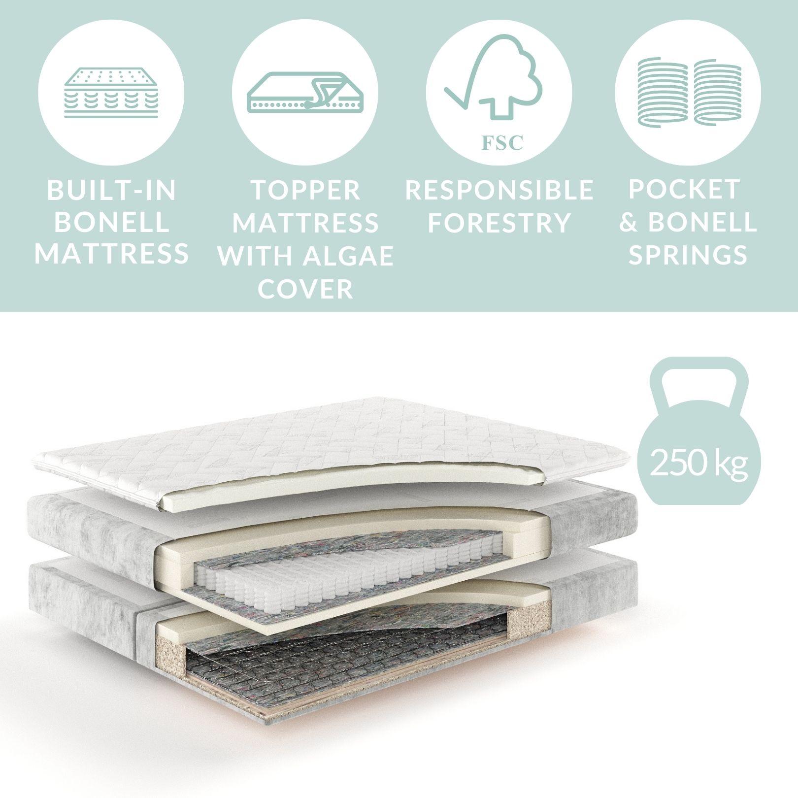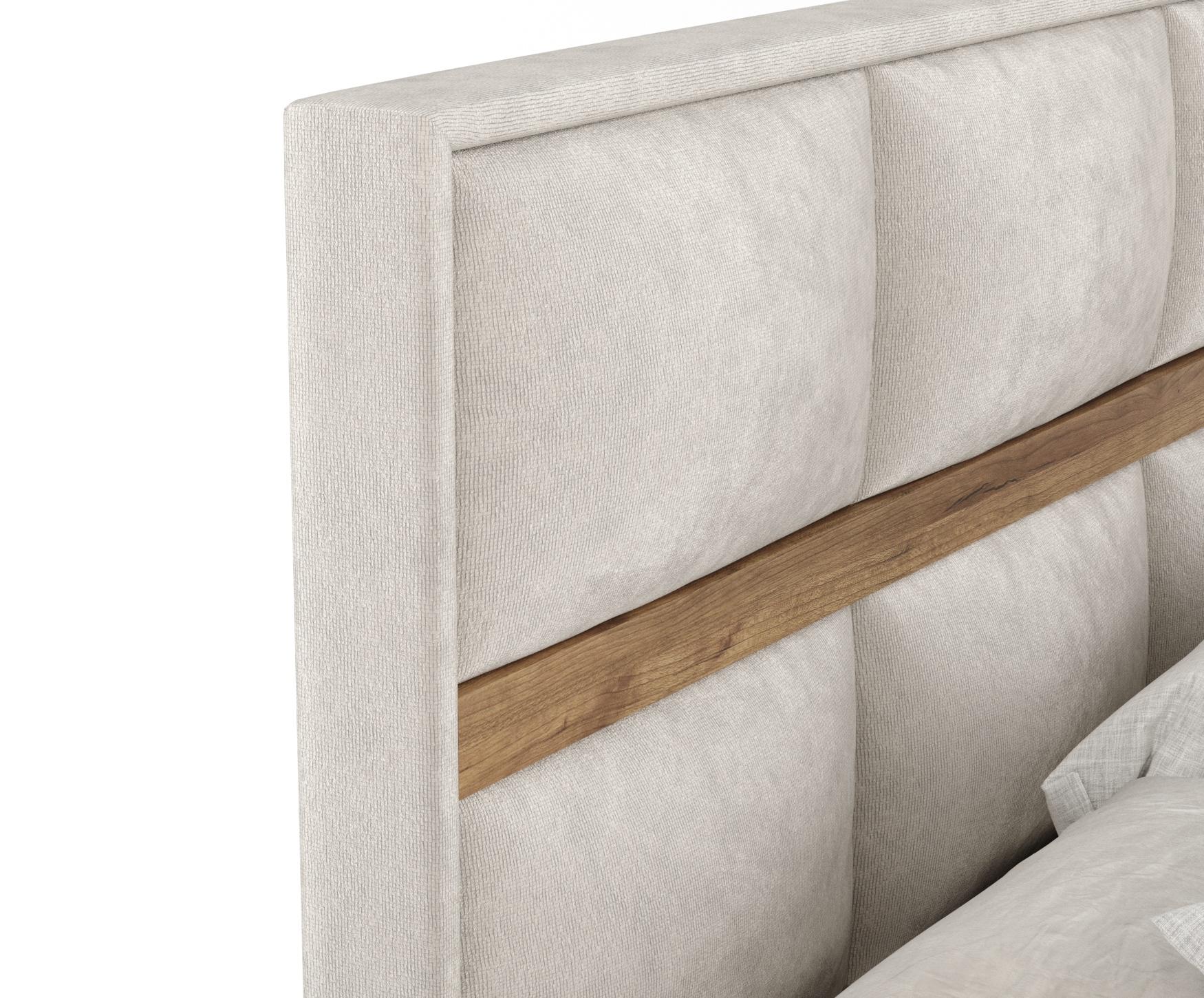 Boxspringbett aus Samtstoff Soto - Matratze - Toppermatratze - 140x200 cm - hellbeige