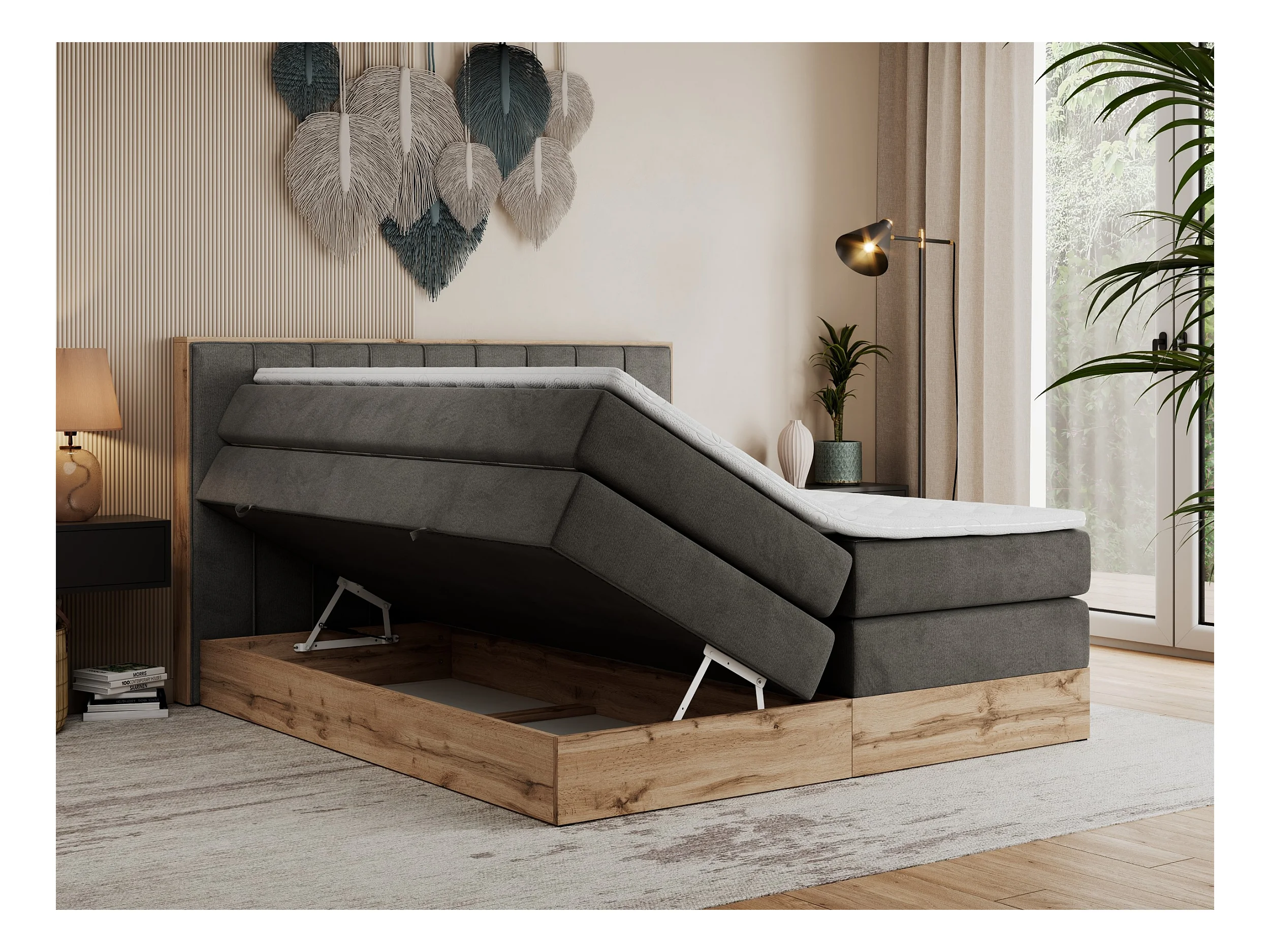 Boxspringbett BELLISSIMO KING - für Schlafzimmer, zwei Multipocket-Matratzen, Set mit Kopfteil und Topper, Holzrahmen - 140x200 cm - H3 - Dunkelgrau Velvet