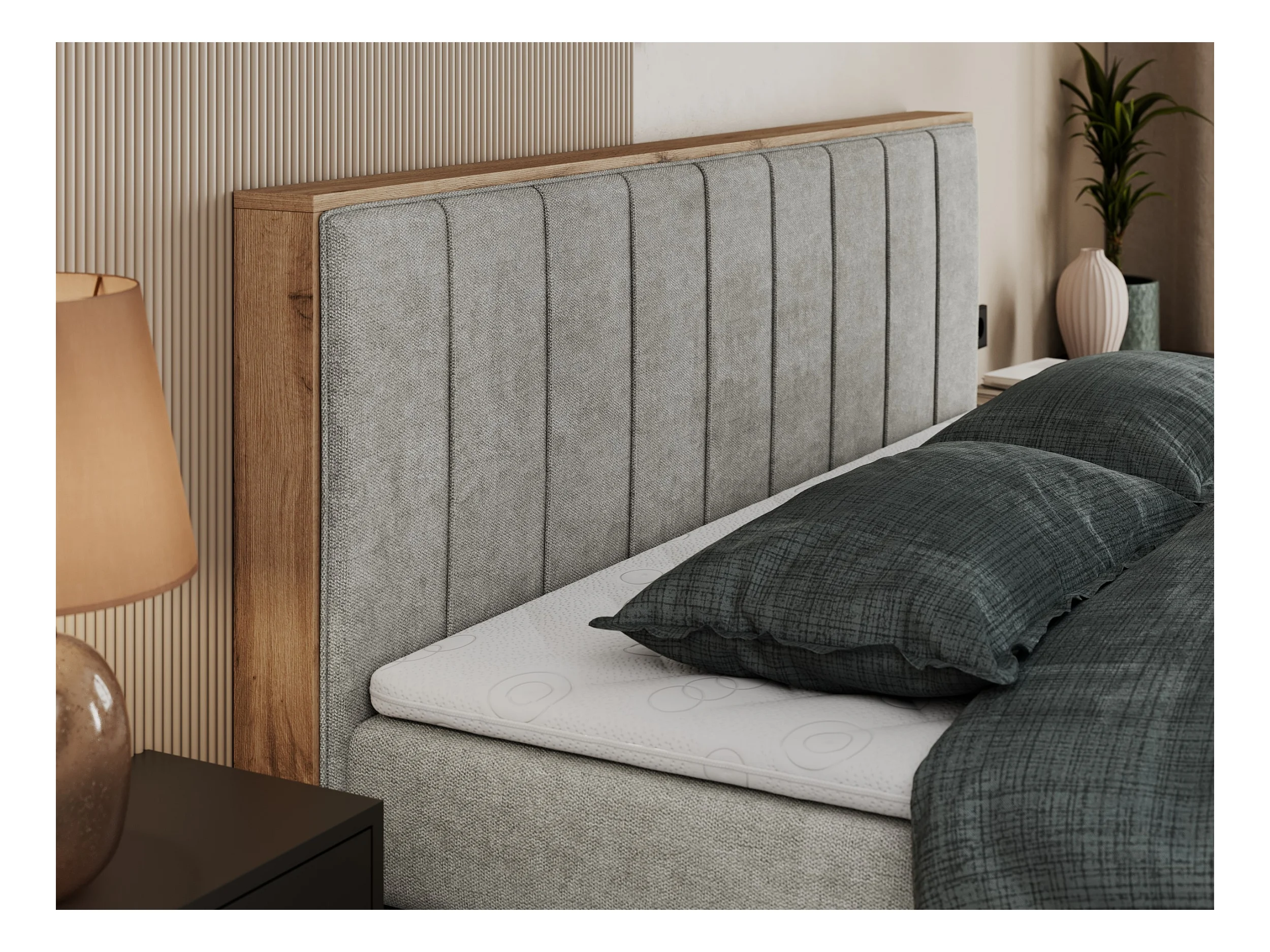 Boxspringbett BELLISSIMO KING - für Schlafzimmer, zwei Multipocket-Matratzen, Set mit Kopfteil und Topper, Holzrahmen - 140x200 cm - H3 - Hellgrau Strukture