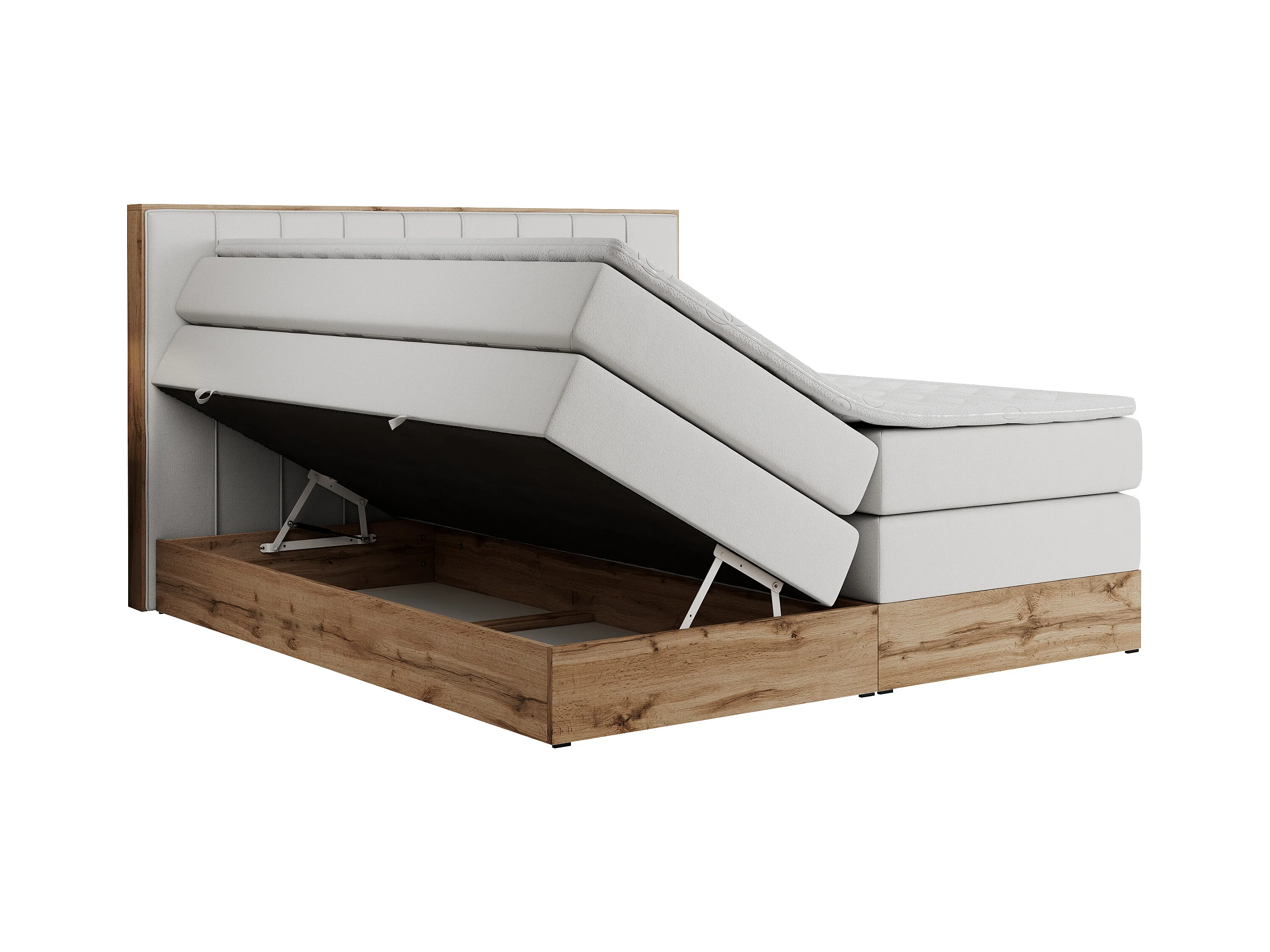 Boxspringbett BELLISSIMO KING - für Schlafzimmer, zwei Multipocket-Matratzen, Set mit Kopfteil und Topper, Holzrahmen - 140x200 cm - H3 - Weiß Kunstleder