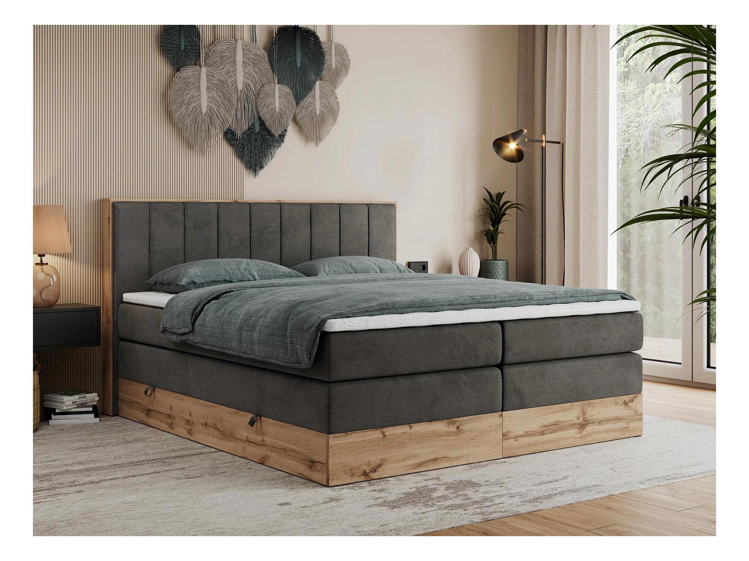 Boxspringbett BELLISSIMO KING - für Schlafzimmer, zwei Multipocket-Matratzen, Set mit Kopfteil und Topper, Holzrahmen - 140x200 cm - H4 - Dunkelgrau Velvet