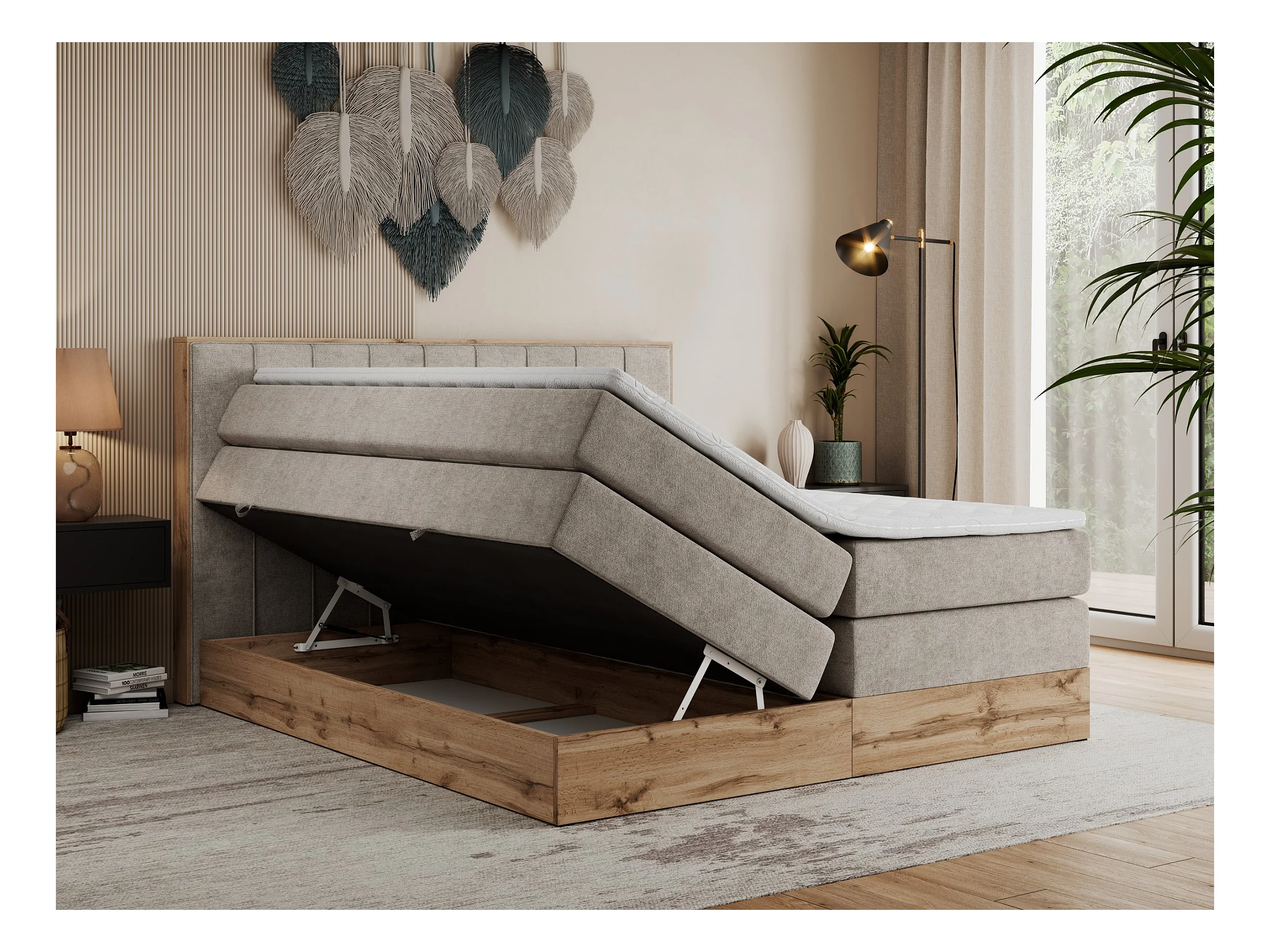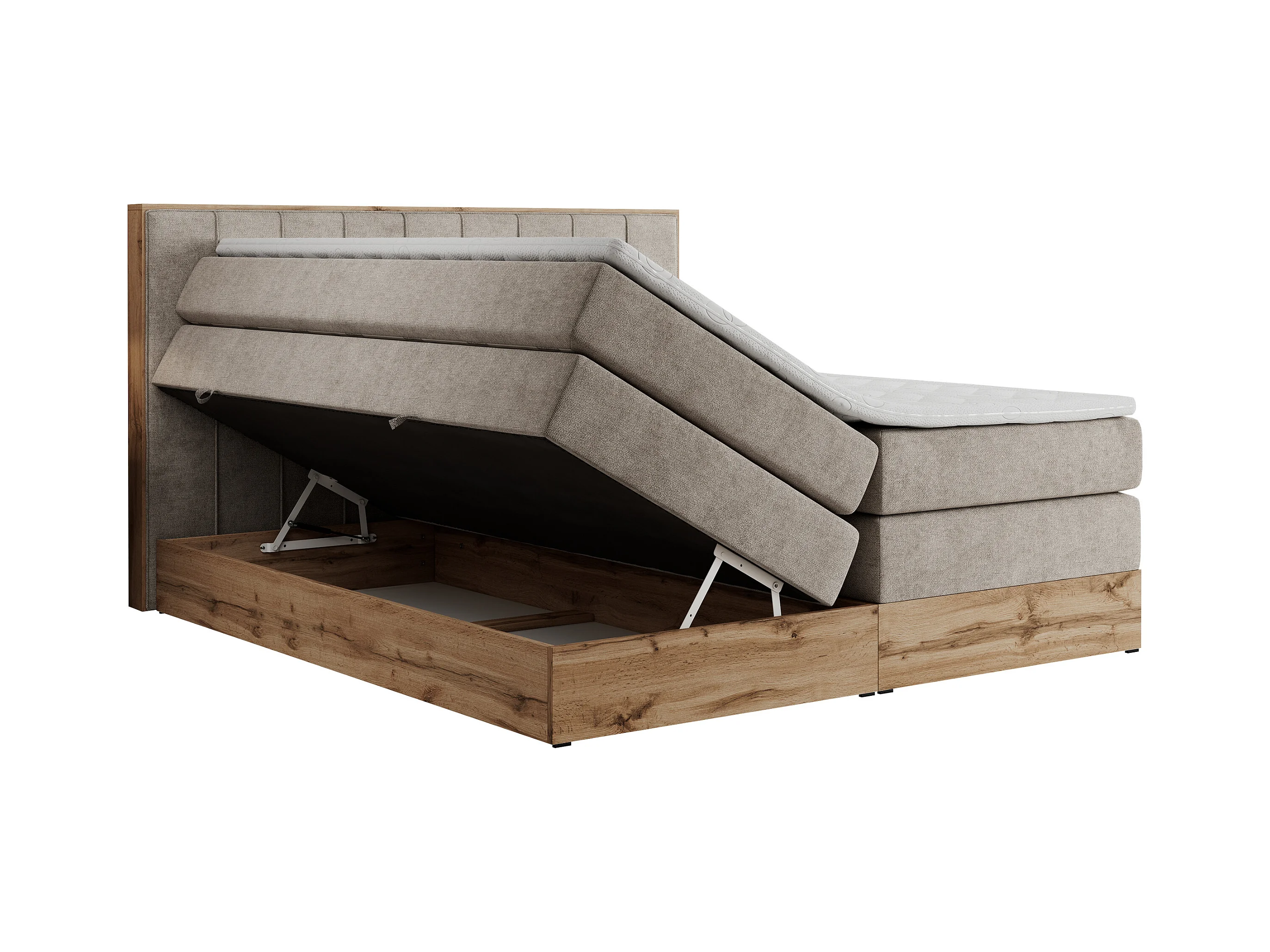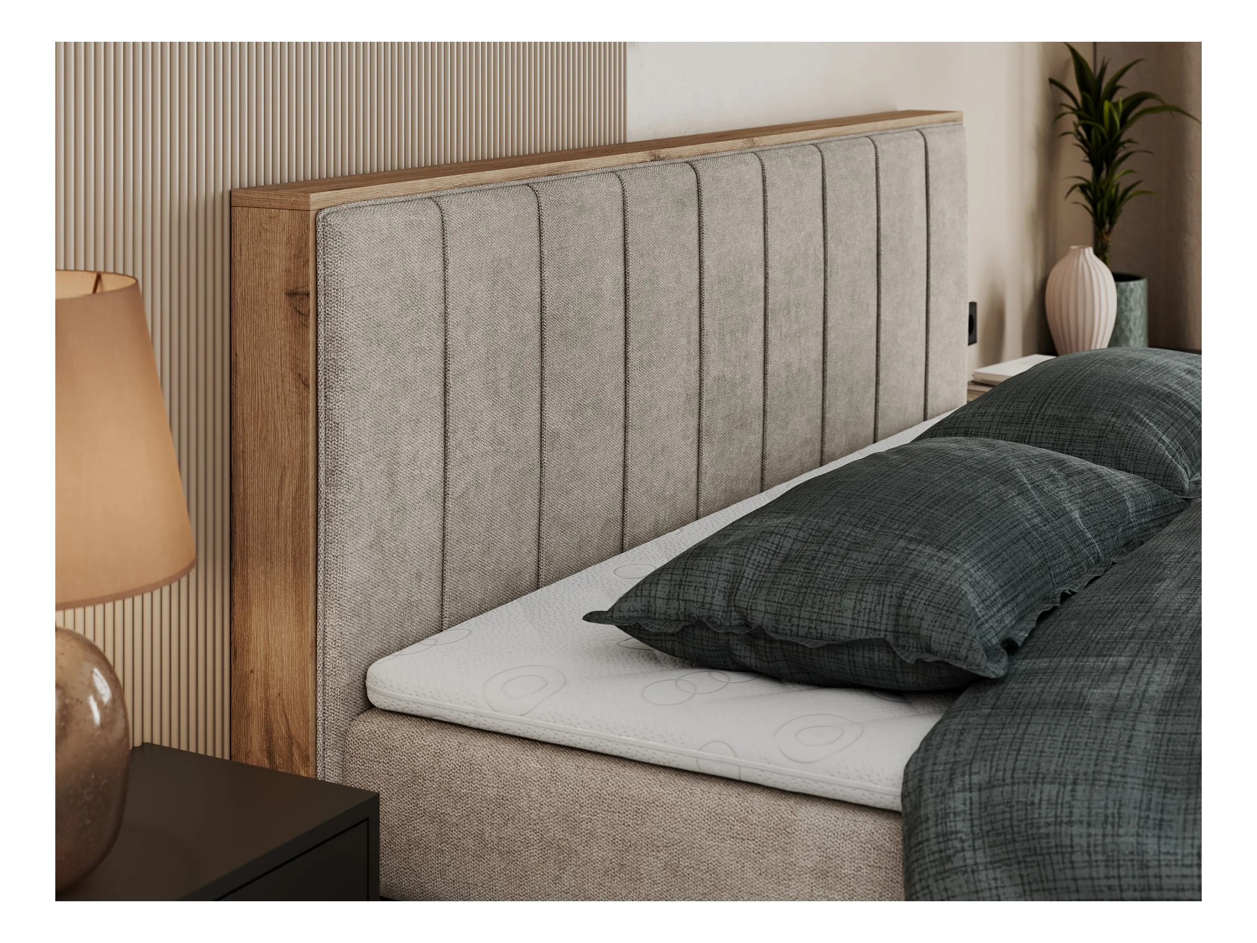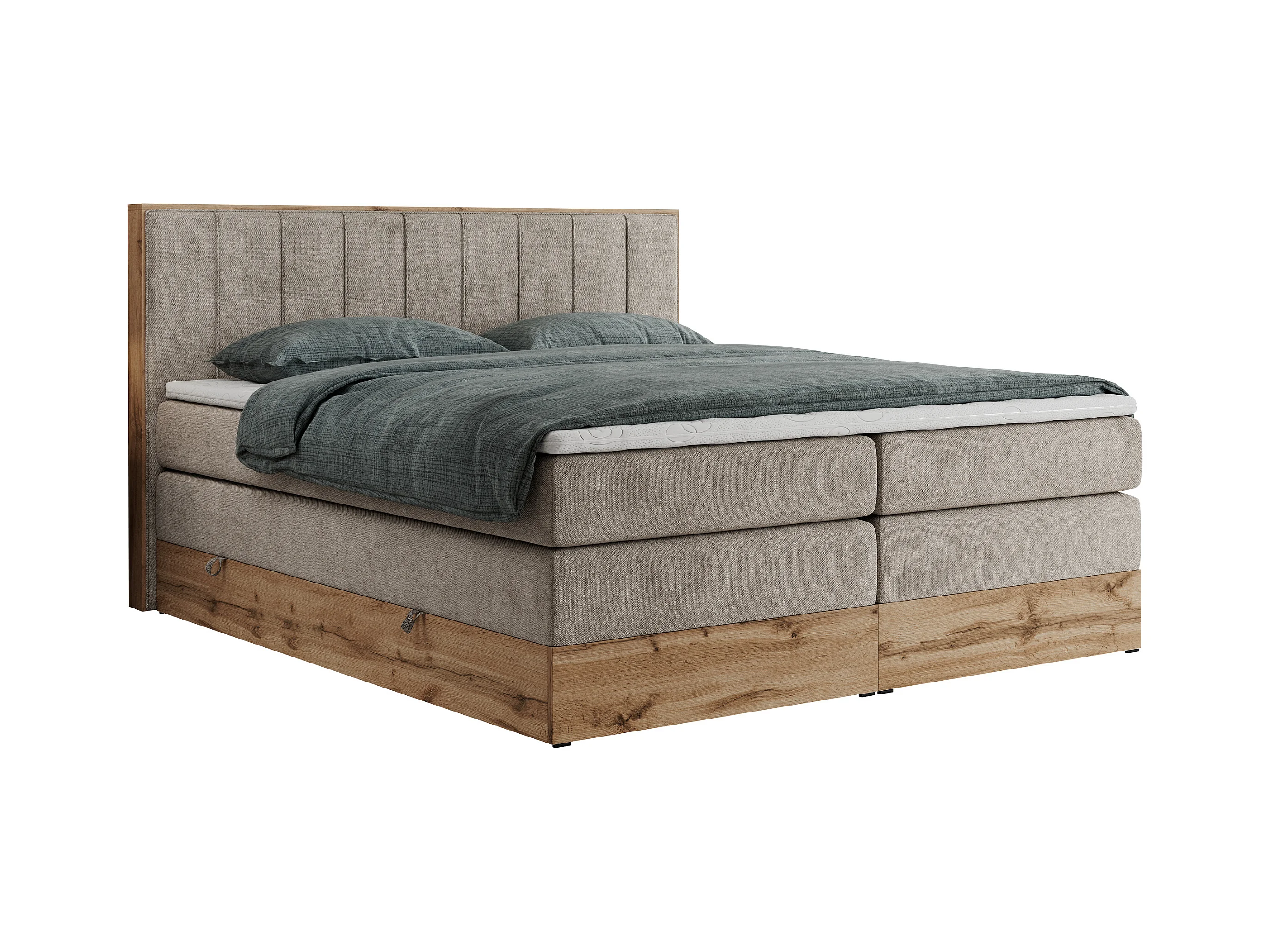 Boxspringbett BELLISSIMO KING - für Schlafzimmer, zwei Multipocket-Matratzen, Set mit Kopfteil und Topper, Holzrahmen - 160x200 cm - H3 - Beige Strukture