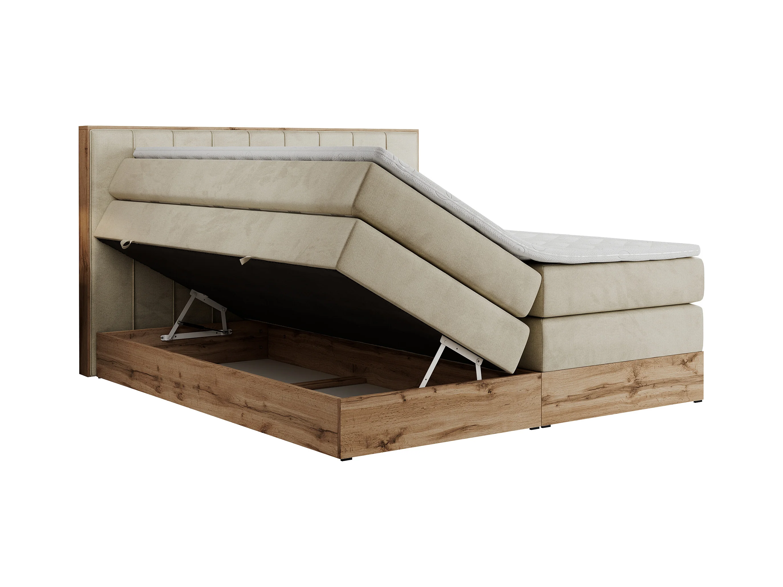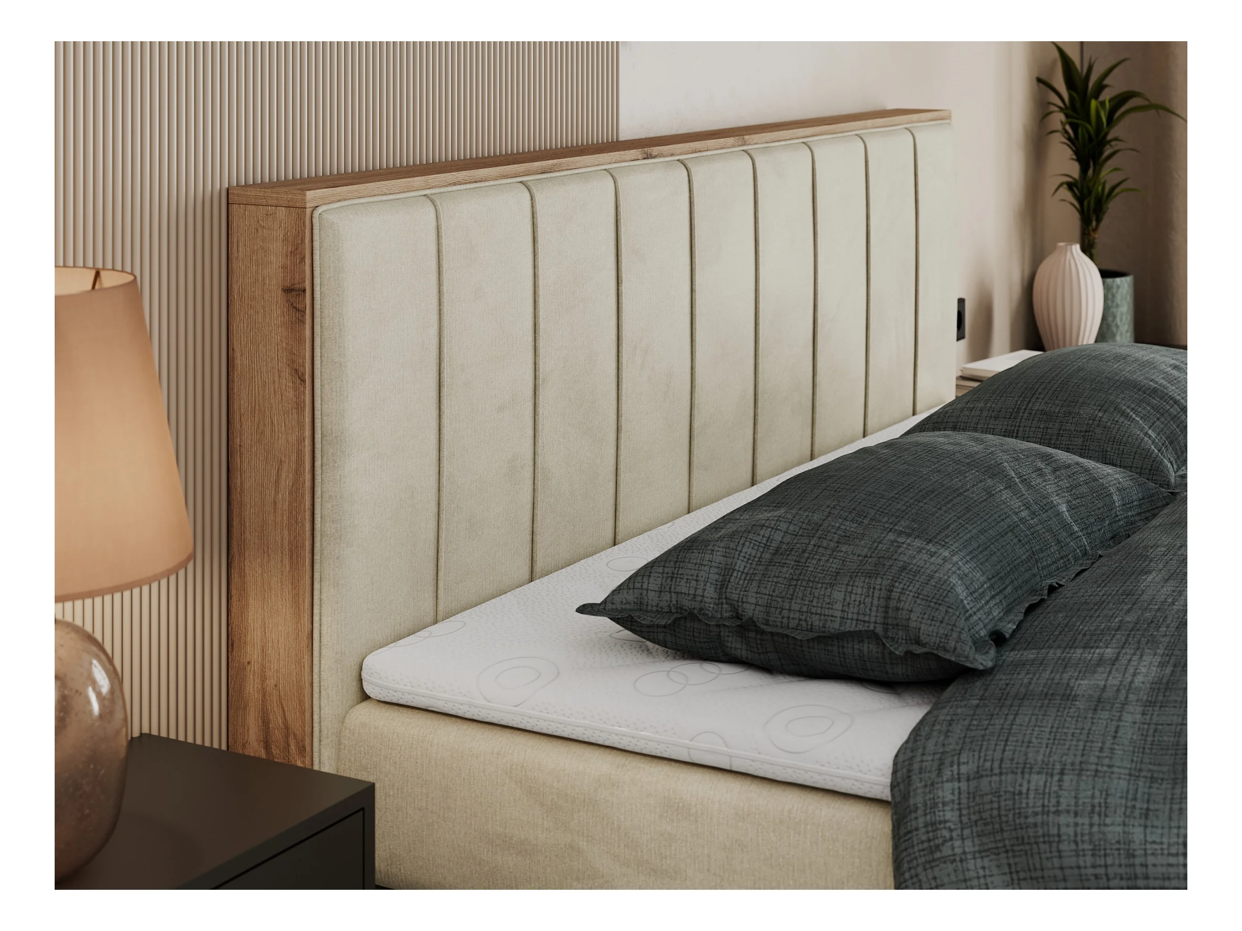 Boxspringbett BELLISSIMO KING - für Schlafzimmer, zwei Multipocket-Matratzen, Set mit Kopfteil und Topper, Holzrahmen - 160x200 cm - H3 - Beige Velvet