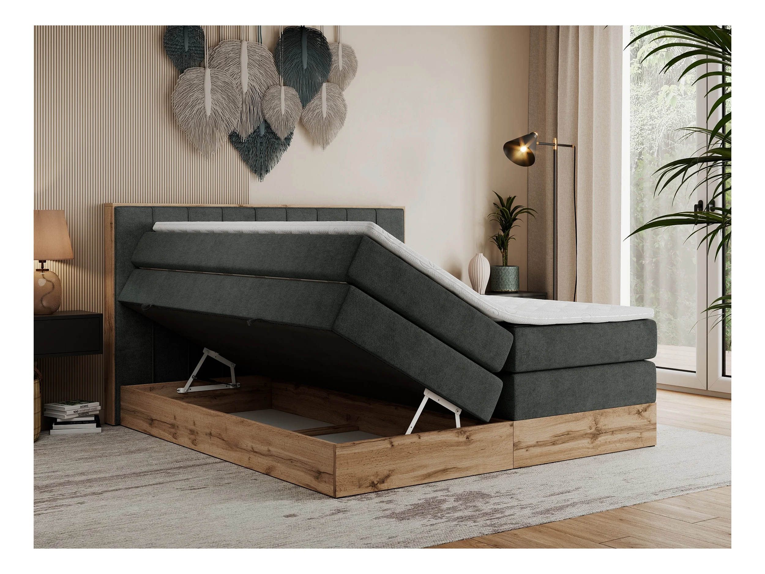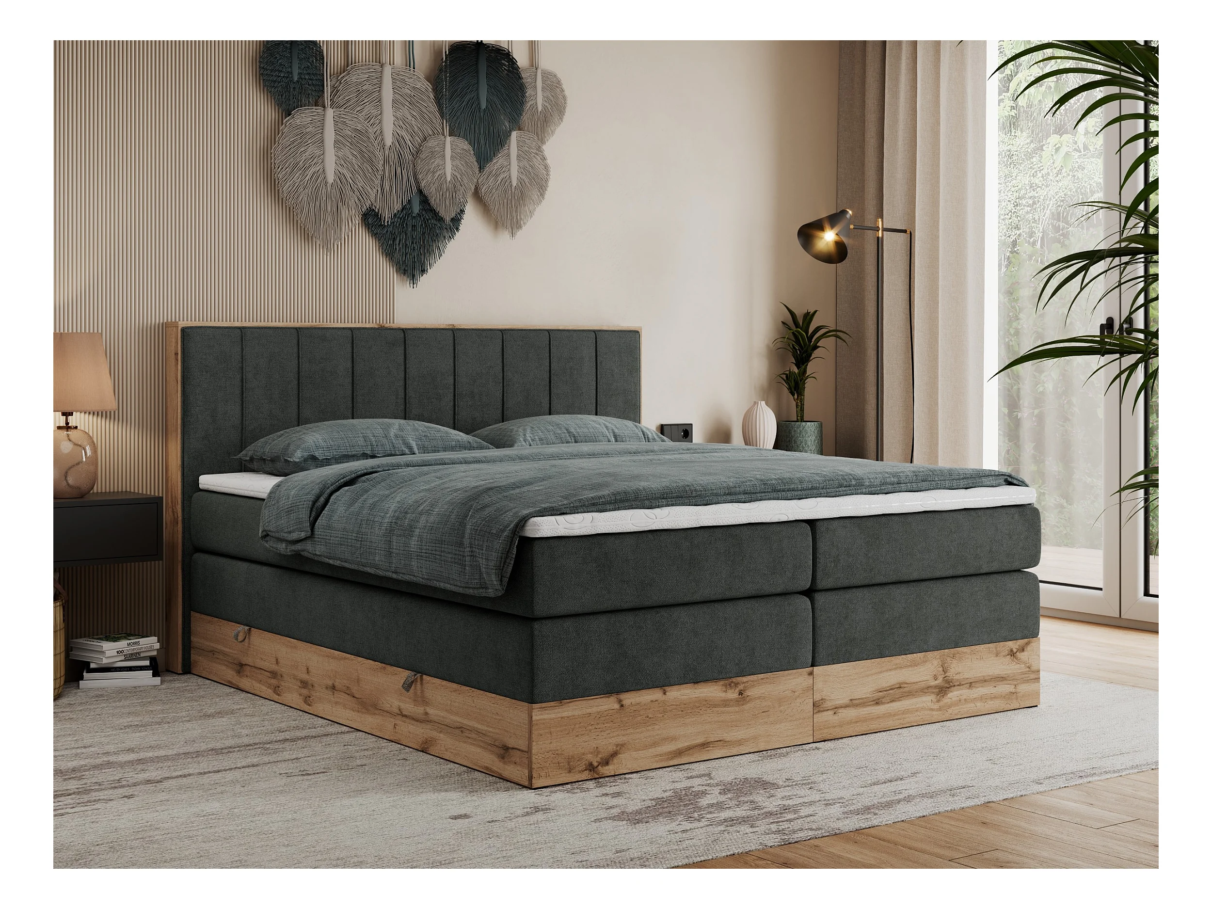 Boxspringbett BELLISSIMO KING - für Schlafzimmer, zwei Multipocket-Matratzen, Set mit Kopfteil und Topper, Holzrahmen - 160x200 cm - H4 - Dunkelgrau Strukture