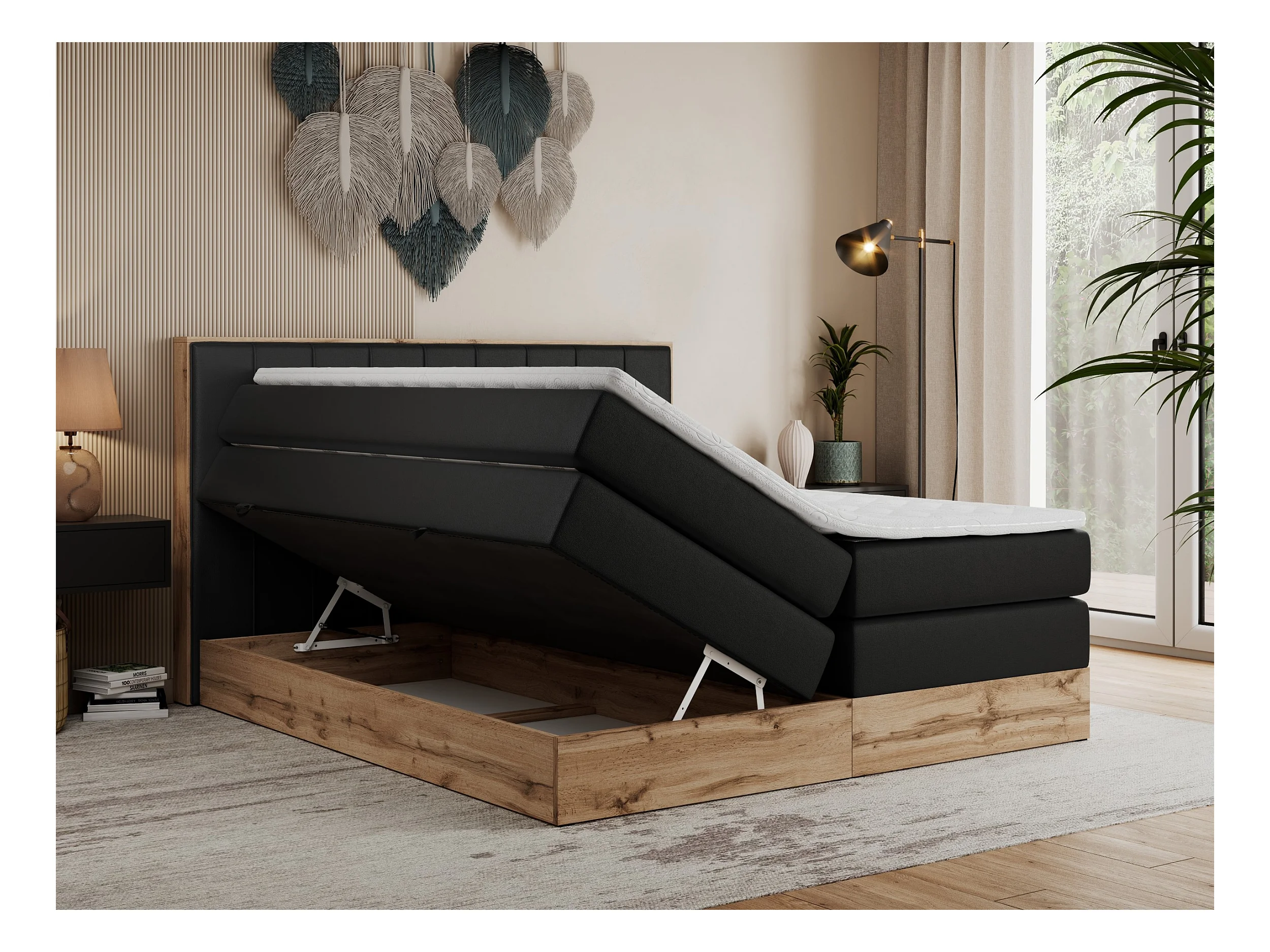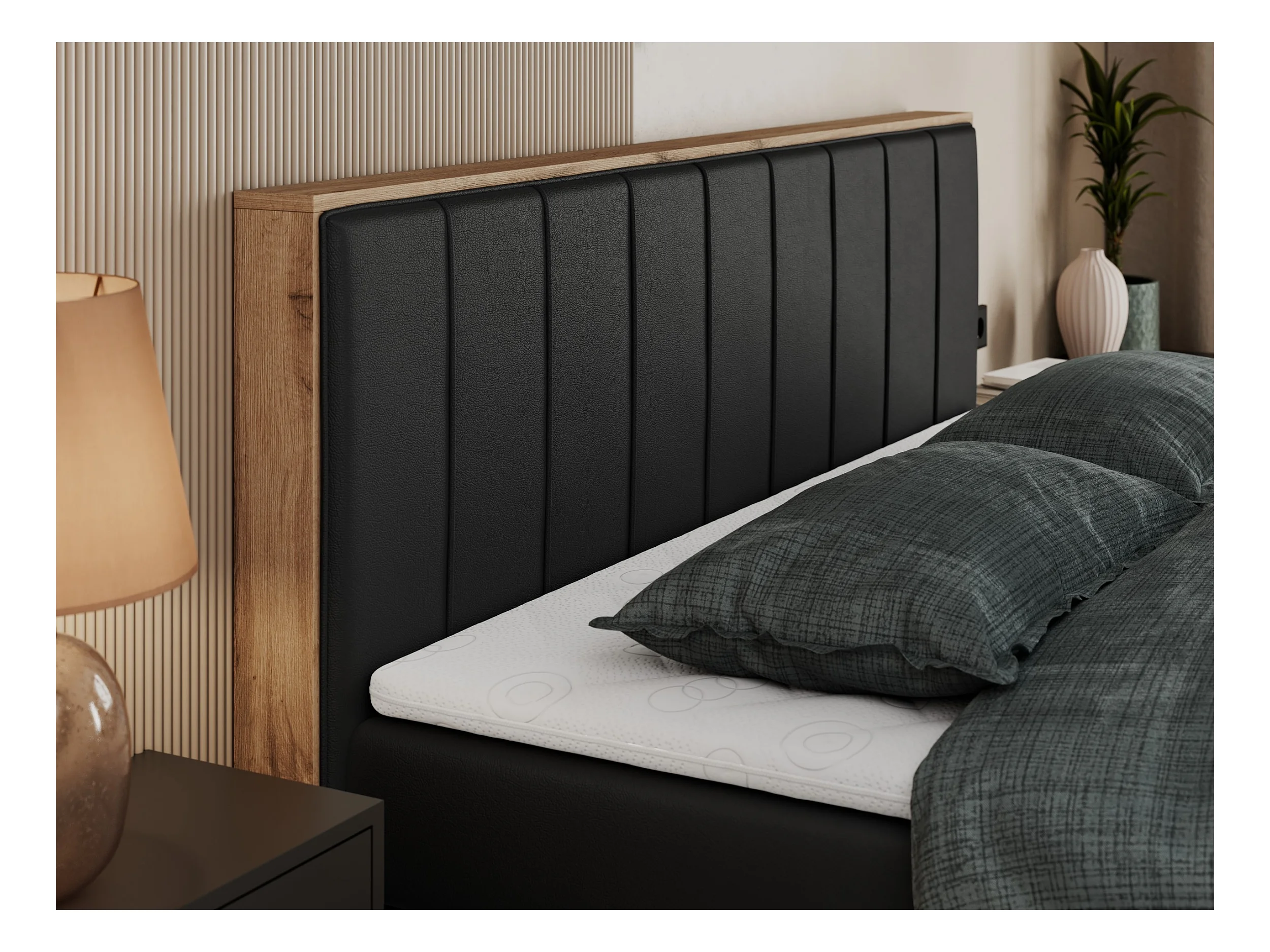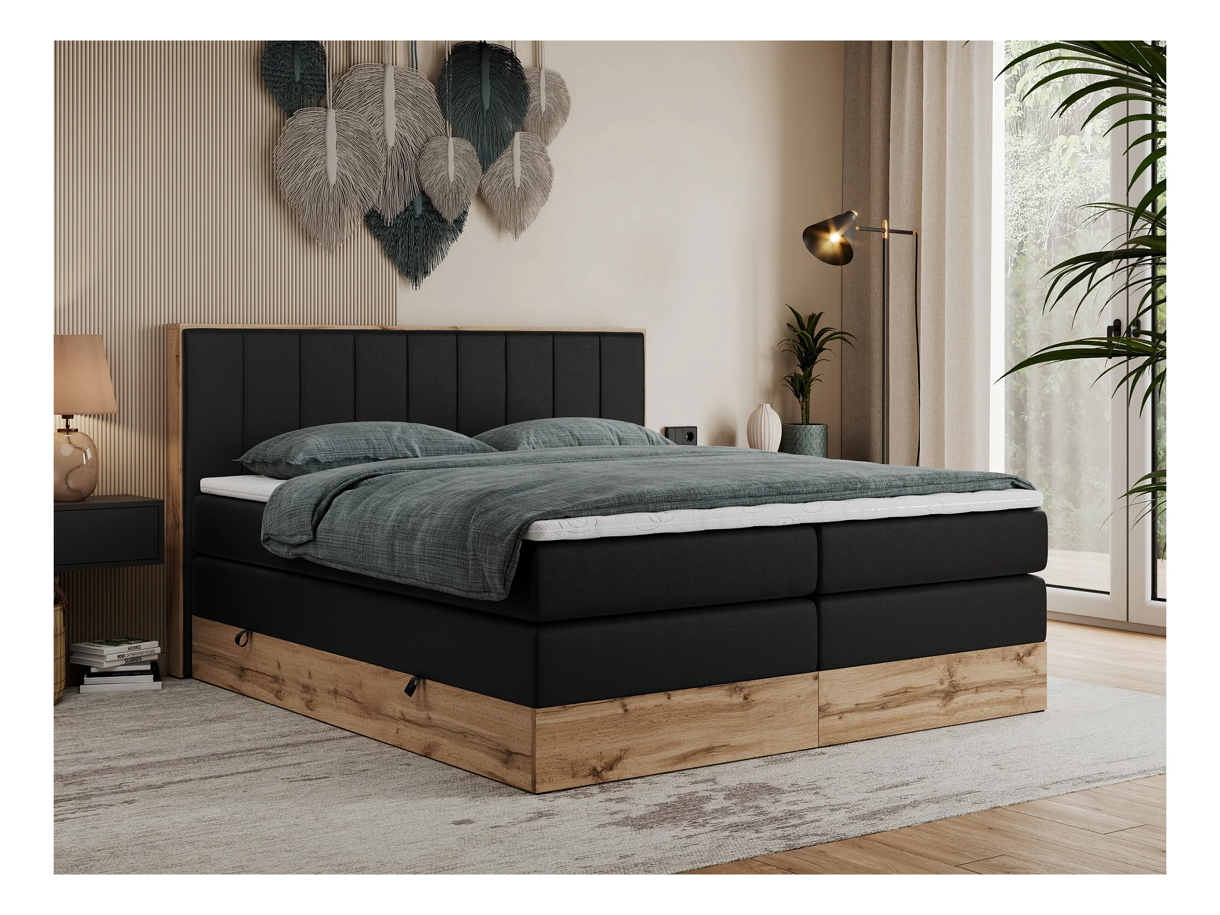 Boxspringbett BELLISSIMO KING - für Schlafzimmer, zwei Multipocket-Matratzen, Set mit Kopfteil und Topper, Holzrahmen - 180x200 cm - H4 - Schwarz Kunstleder