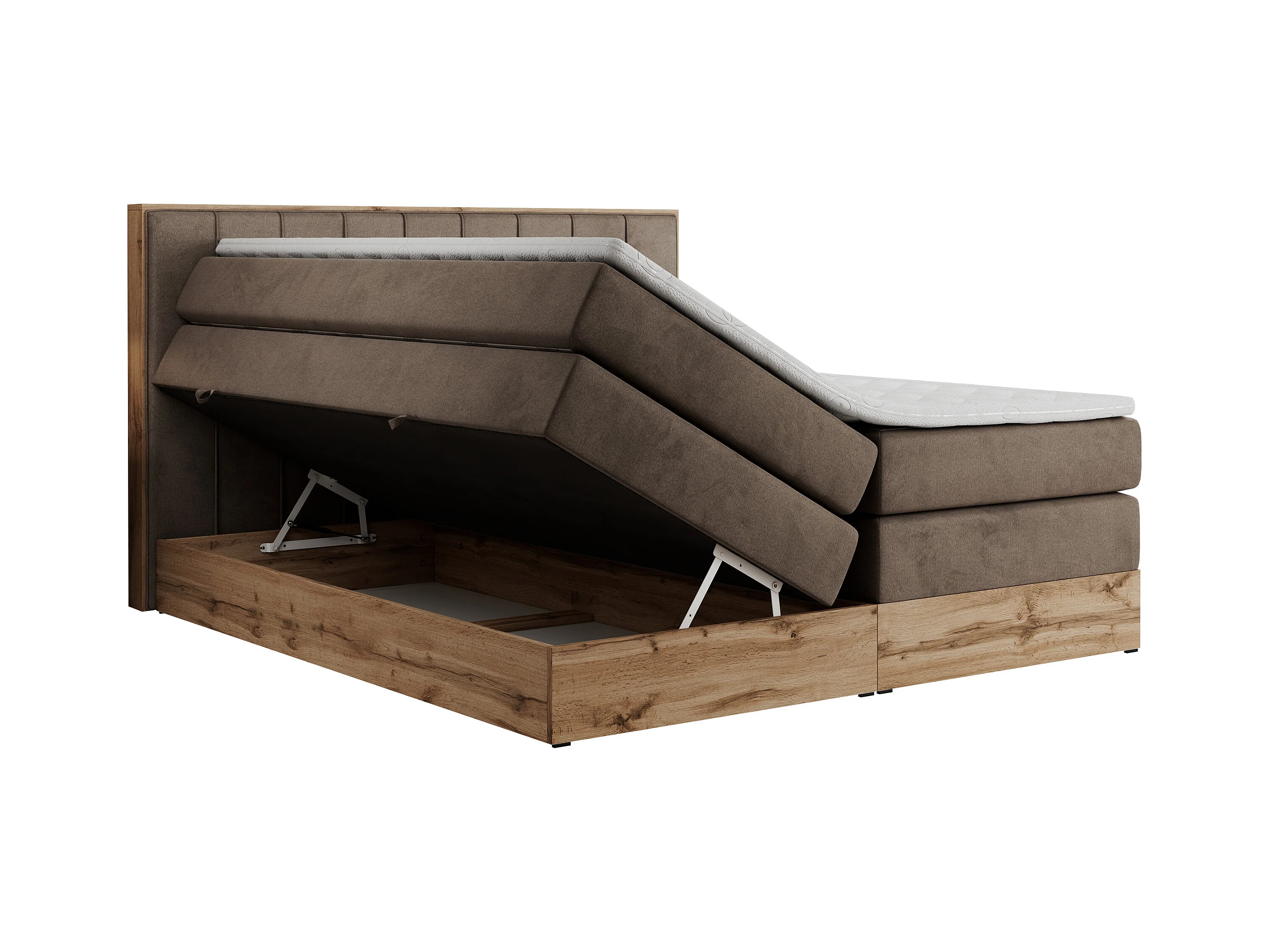 Boxspringbett BELLISSIMO KING - für Schlafzimmer, zwei Multipocket-Matratzen, Set mit Kopfteil und Topper, Holzrahmen - 200x200 cm - H3 - Braun Velvet