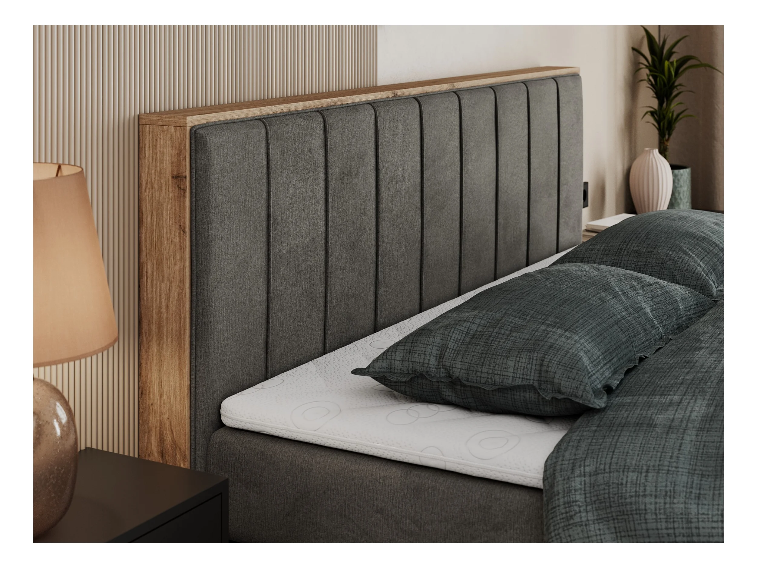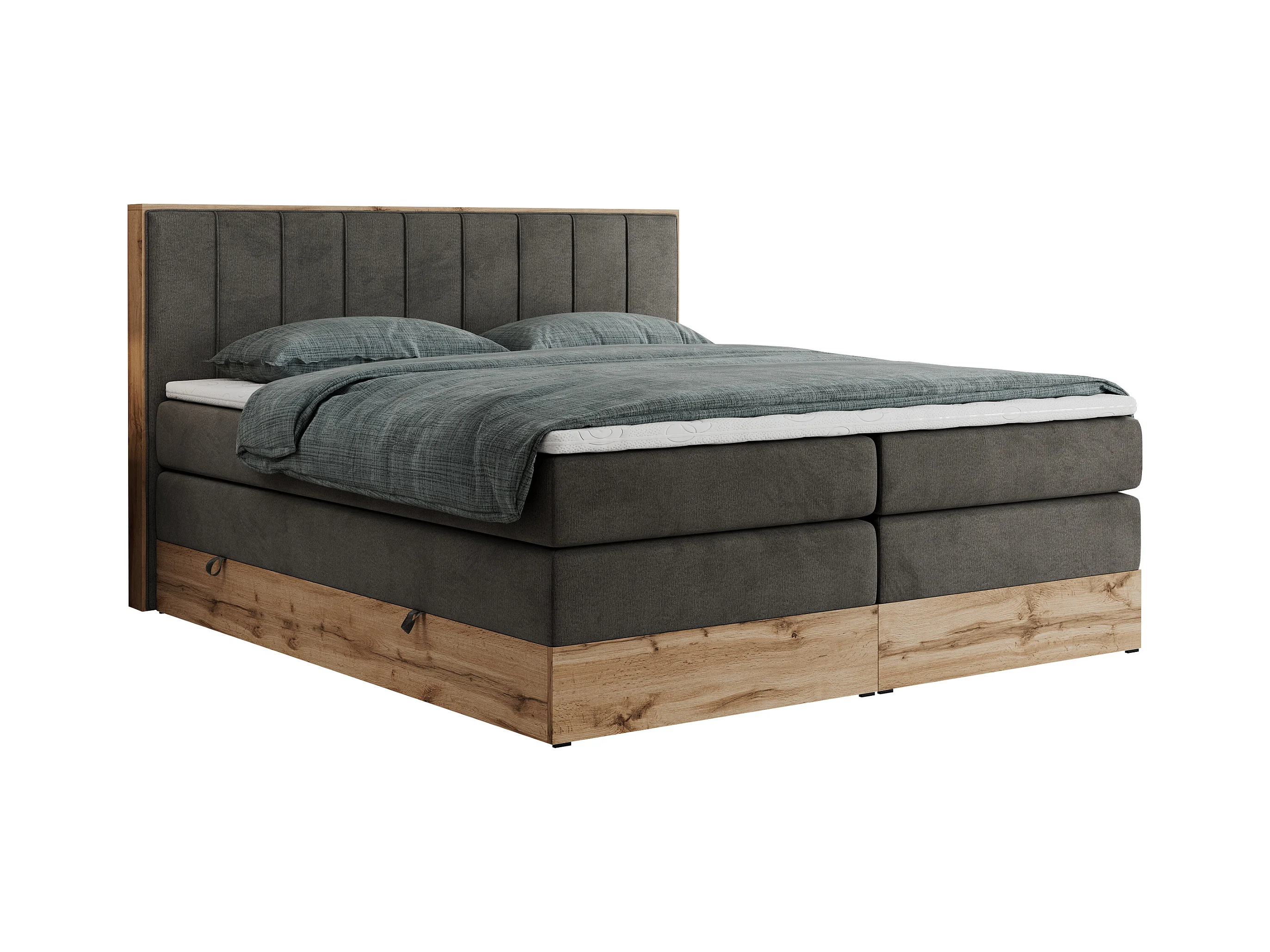 Boxspringbett BELLISSIMO KING - für Schlafzimmer, zwei Multipocket-Matratzen, Set mit Kopfteil und Topper, Holzrahmen - 200x200 cm - H3 - Dunkelgrau Velvet