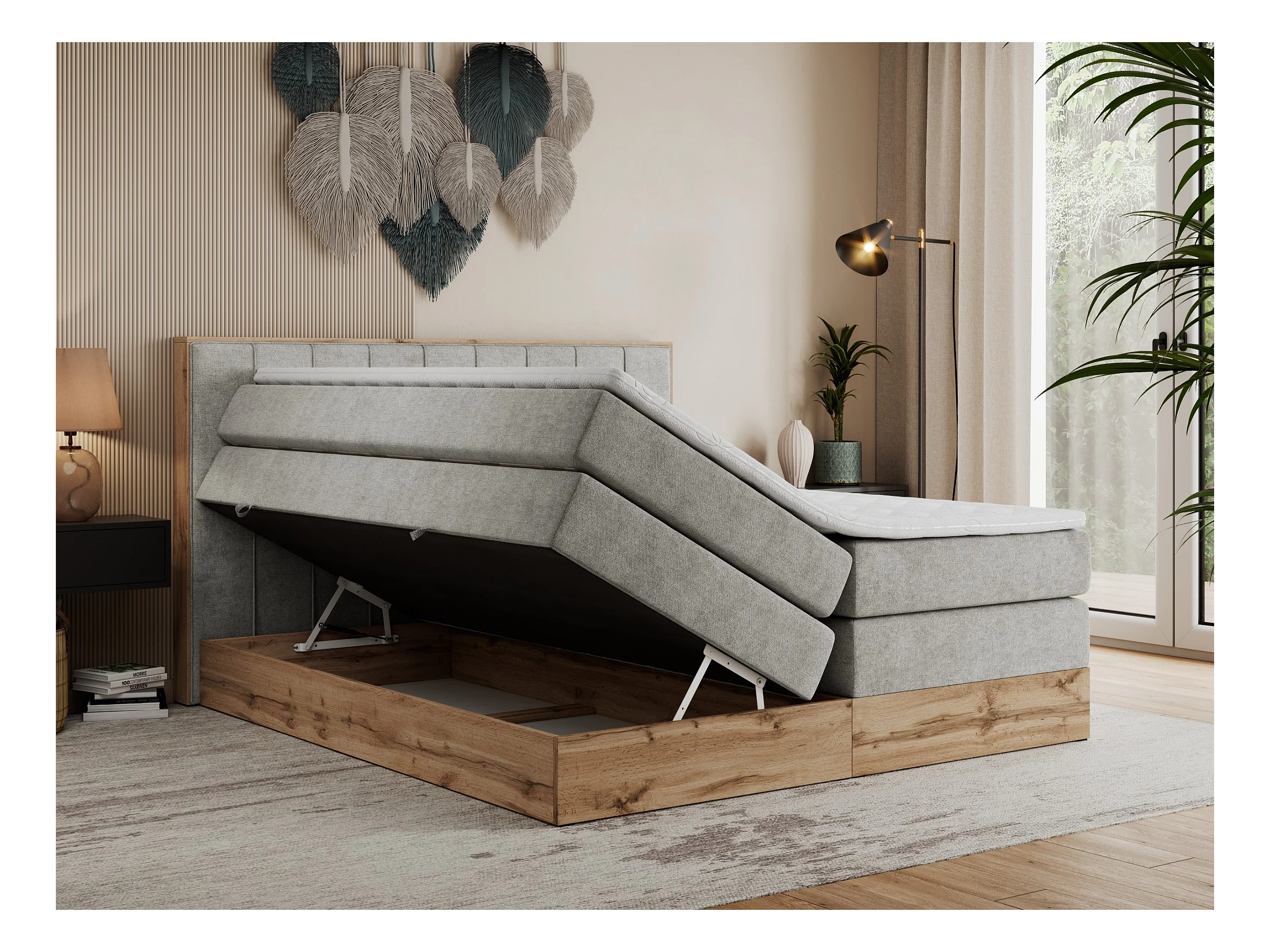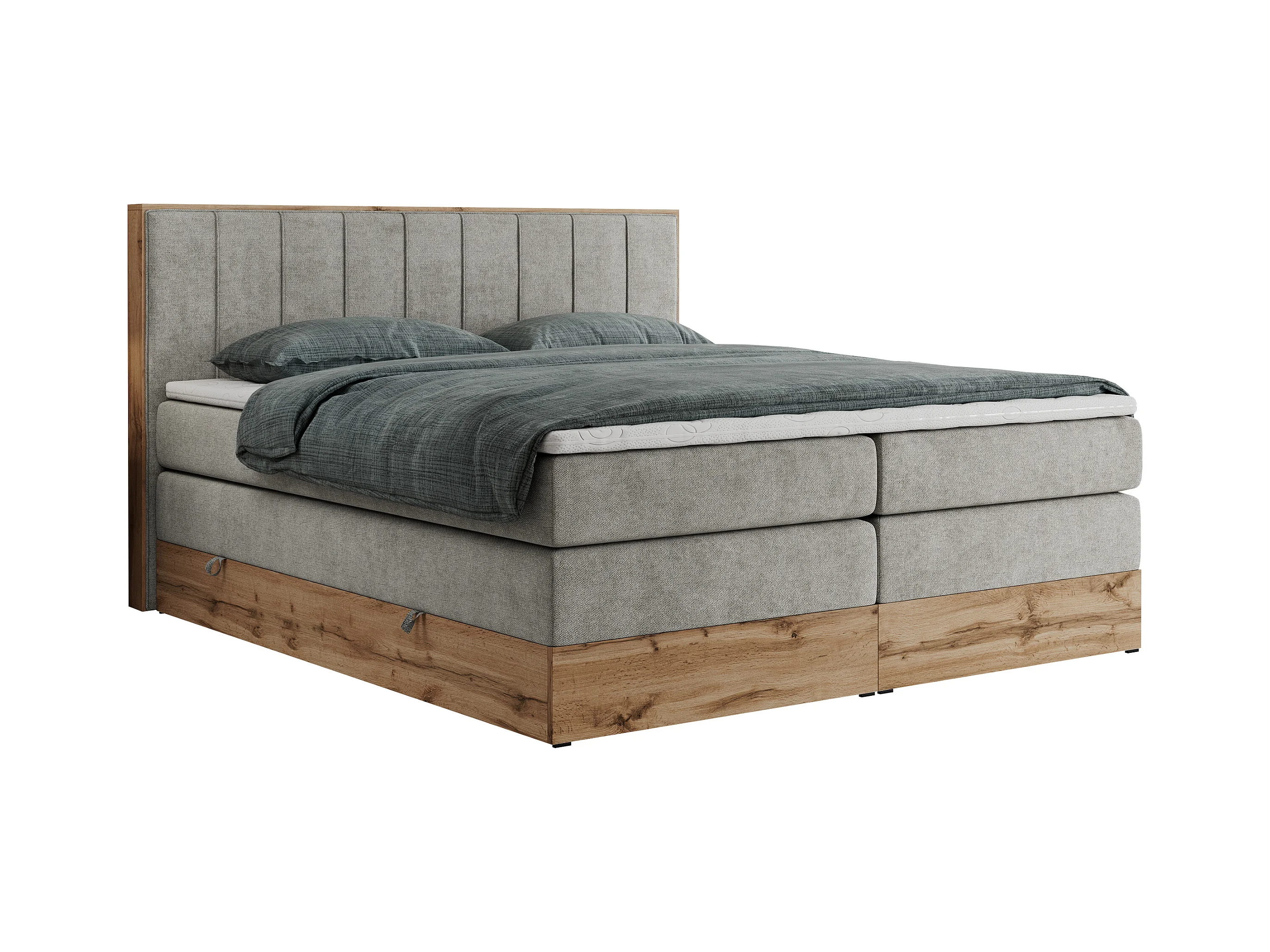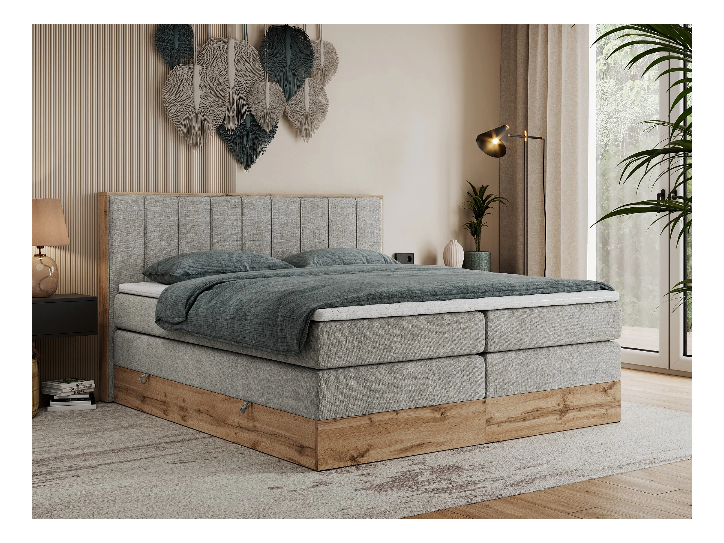 Boxspringbett BELLISSIMO KING - für Schlafzimmer, zwei Multipocket-Matratzen, Set mit Kopfteil und Topper, Holzrahmen - 200x200 cm - H3 - Hellgrau Strukture