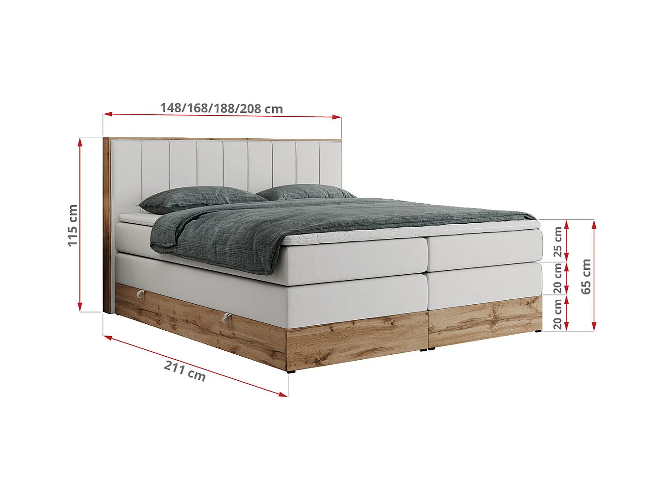 Boxspringbett BELLISSIMO KING - für Schlafzimmer, zwei Multipocket-Matratzen, Set mit Kopfteil und Topper, Holzrahmen - 200x200 cm - H3 - Weiß Kunstleder