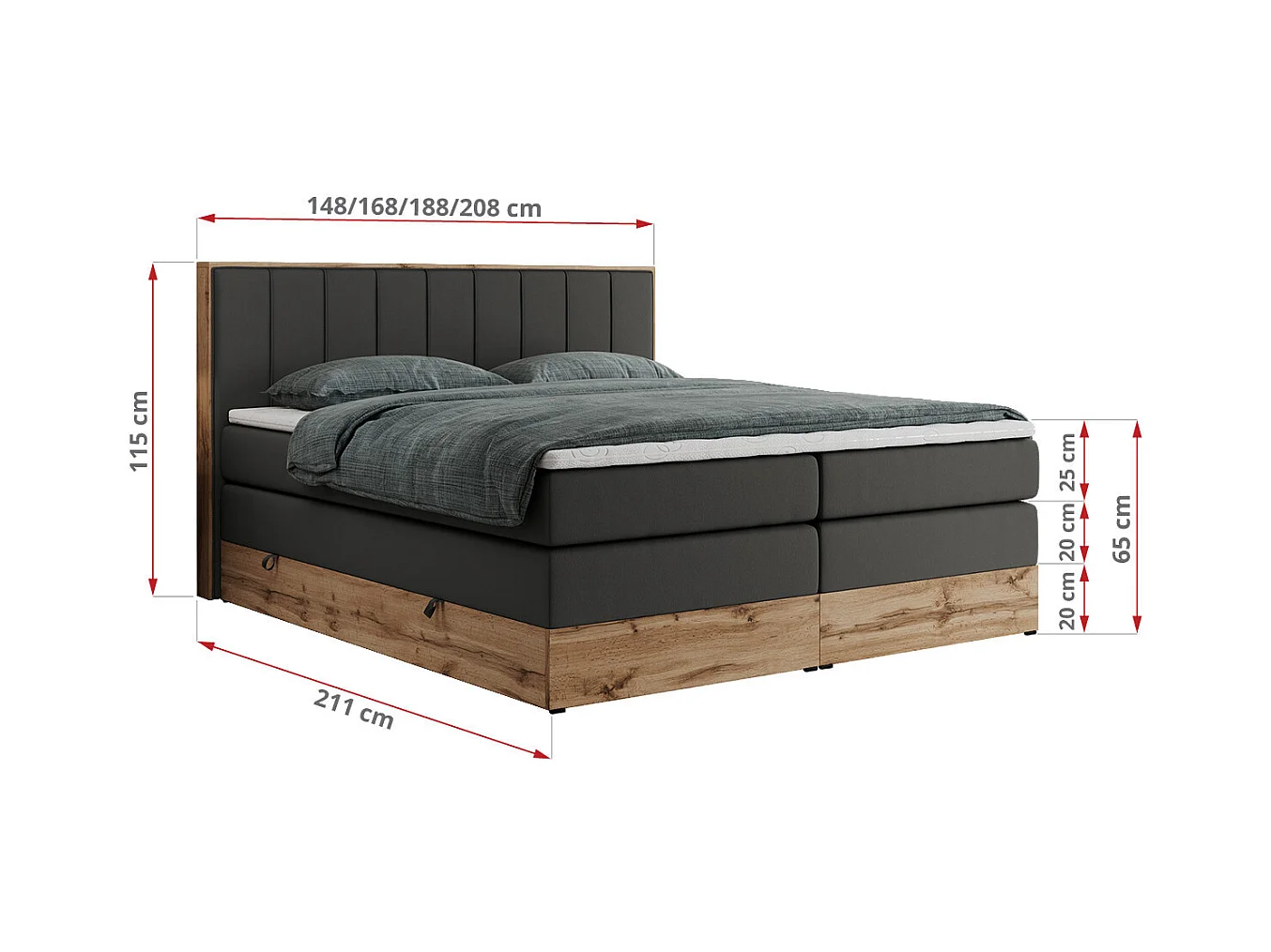 Boxspringbett BELLISSIMO KING - für Schlafzimmer, zwei Multipocket-Matratzen, Set mit Kopfteil und Topper, Holzrahmen - 200x200 cm - H4 - Dunkelgrau Kunstleder