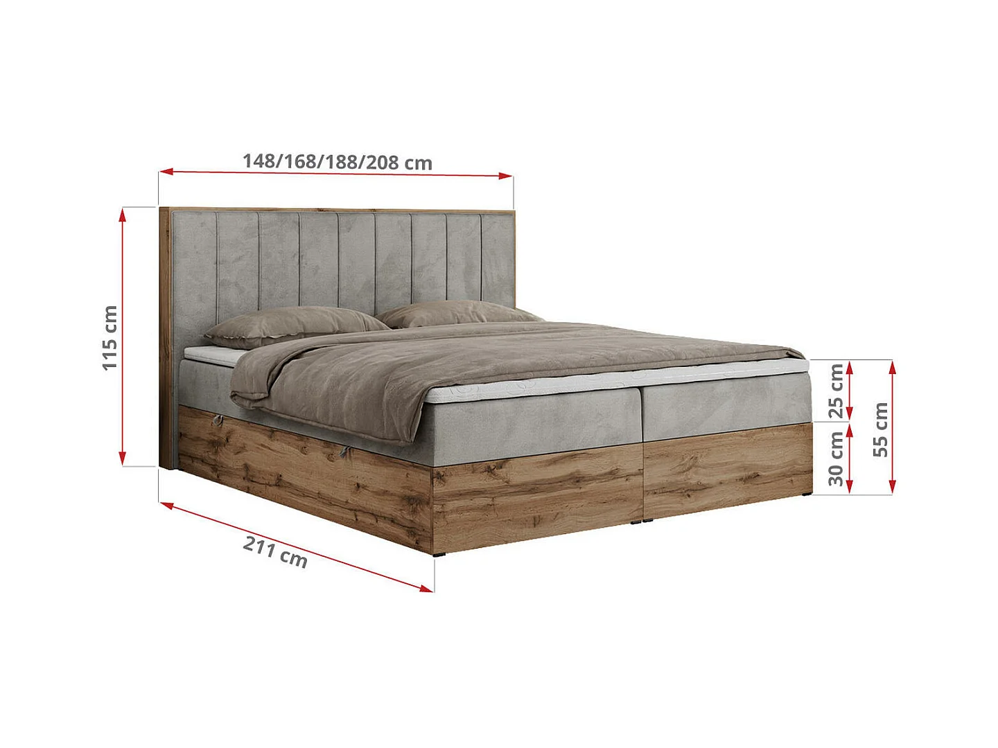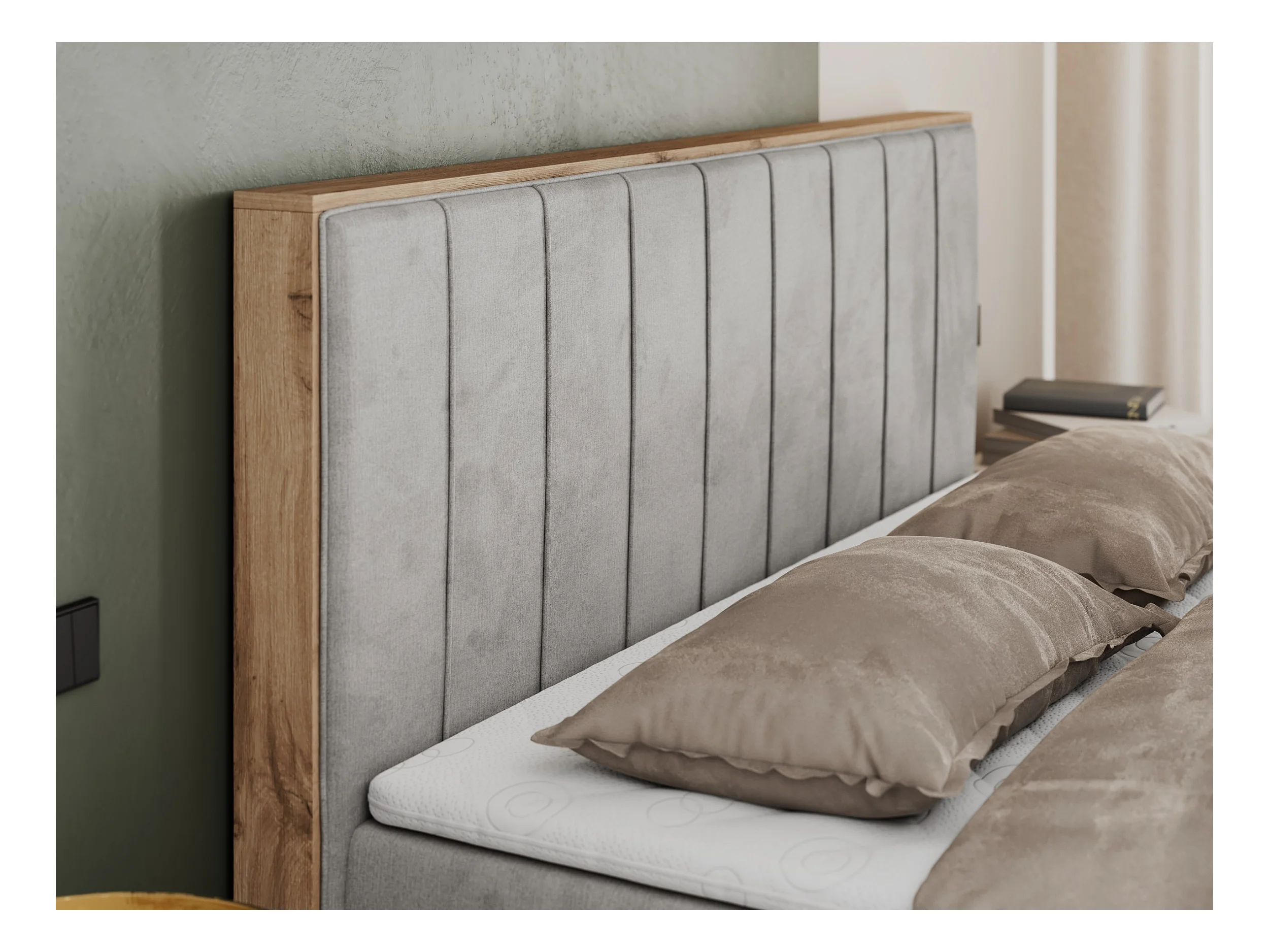 Boxspringbett BELLISSIMO - mit gestepptem Kopfteil, Polsterbett mit zwei Bettkästen, Multipocket-Matratze - 140x200 cm - H3 - Hellgrau Velvet