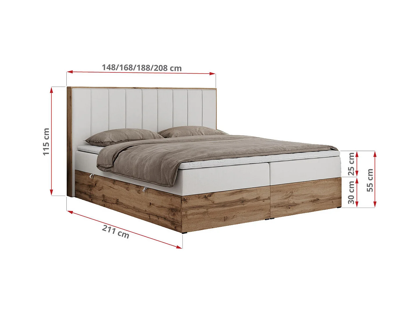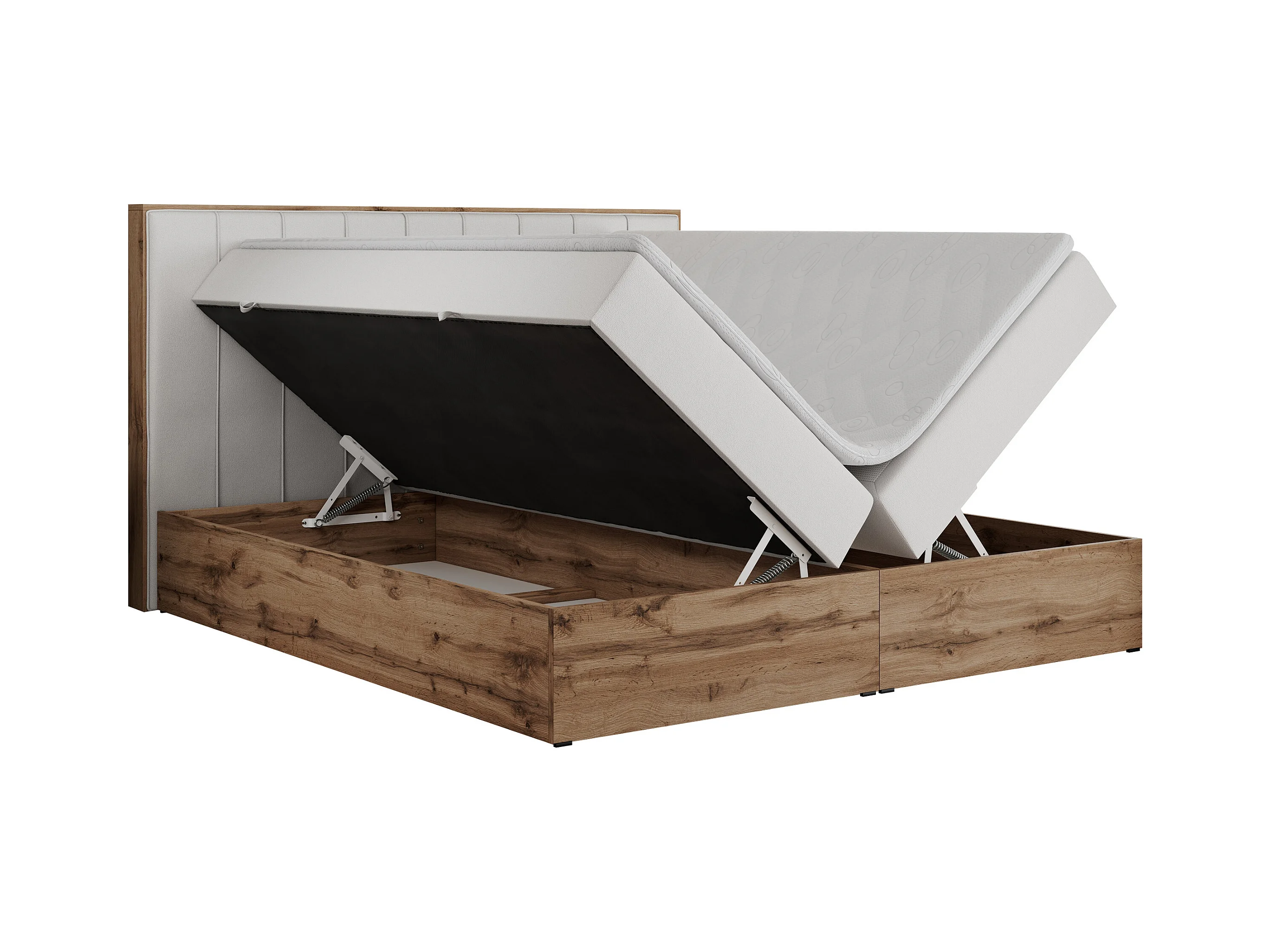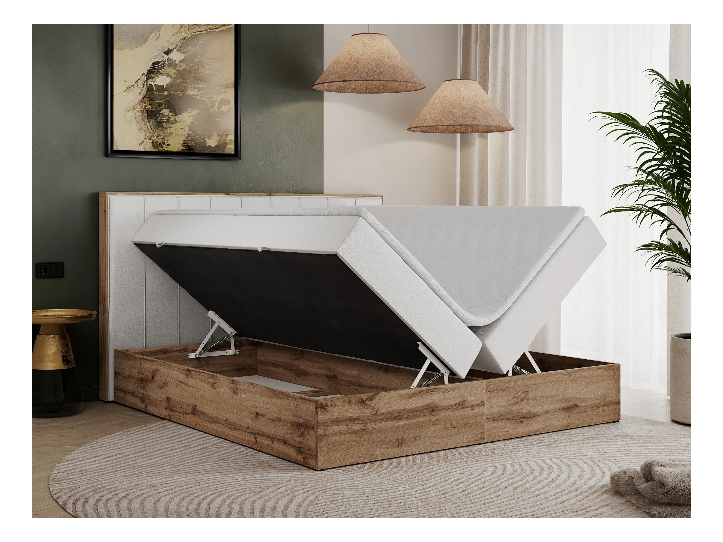 Boxspringbett BELLISSIMO - mit gestepptem Kopfteil, Polsterbett mit zwei Bettkästen, Multipocket-Matratze - 140x200 cm - H3 - Weiß Kunstleder
