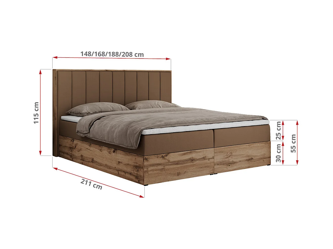 Boxspringbett BELLISSIMO - mit gestepptem Kopfteil, Polsterbett mit zwei Bettkästen, Multipocket-Matratze - 160x200 cm - H4 - Braun Kunstleder