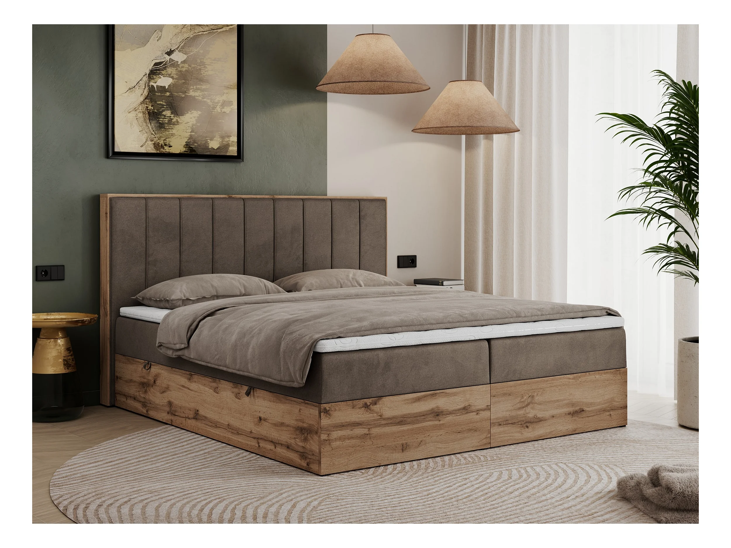 Boxspringbett BELLISSIMO - mit gestepptem Kopfteil, Polsterbett mit zwei Bettkästen, Multipocket-Matratze - 160x200 cm - H4 - Braun Velvet