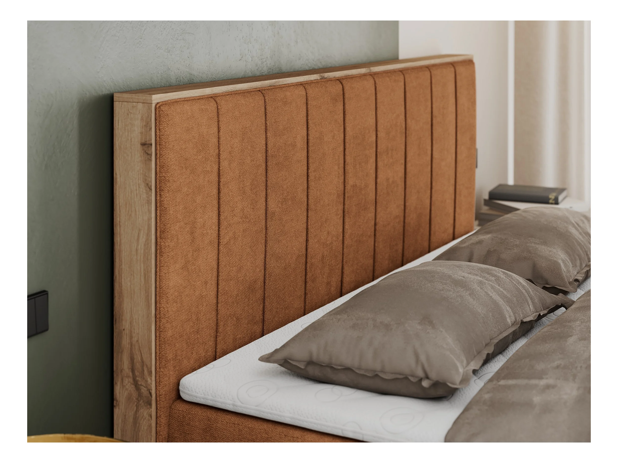 Boxspringbett BELLISSIMO - mit gestepptem Kopfteil, Polsterbett mit zwei Bettkästen, Multipocket-Matratze - 160x200 cm - H4 - Orange Strukture